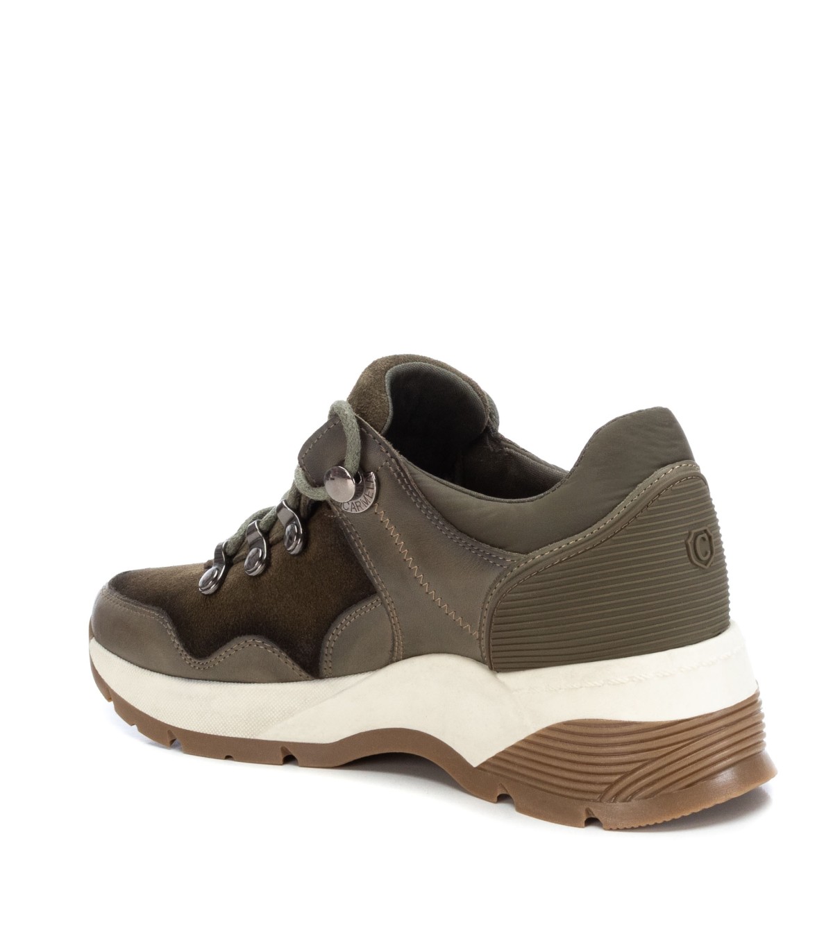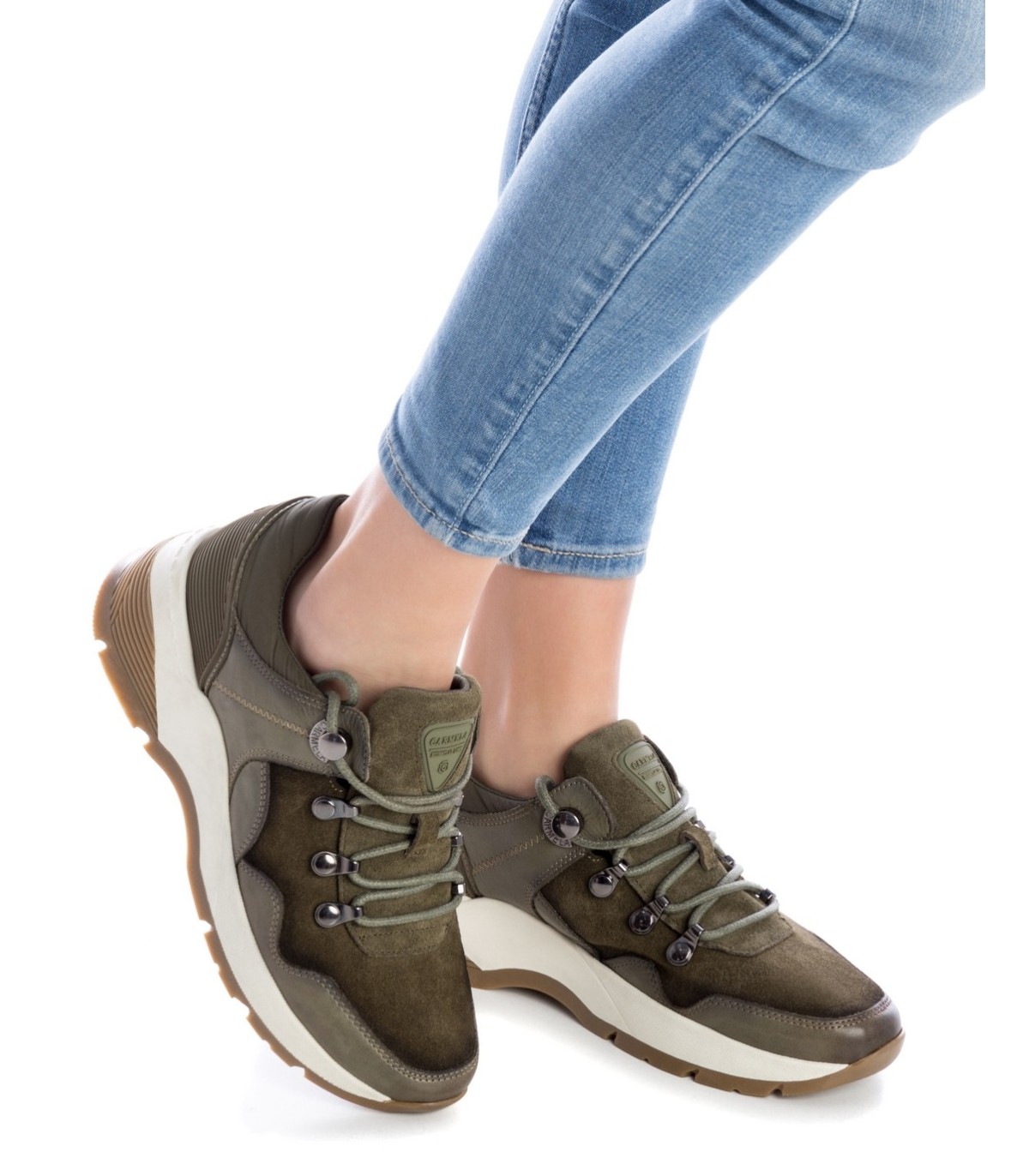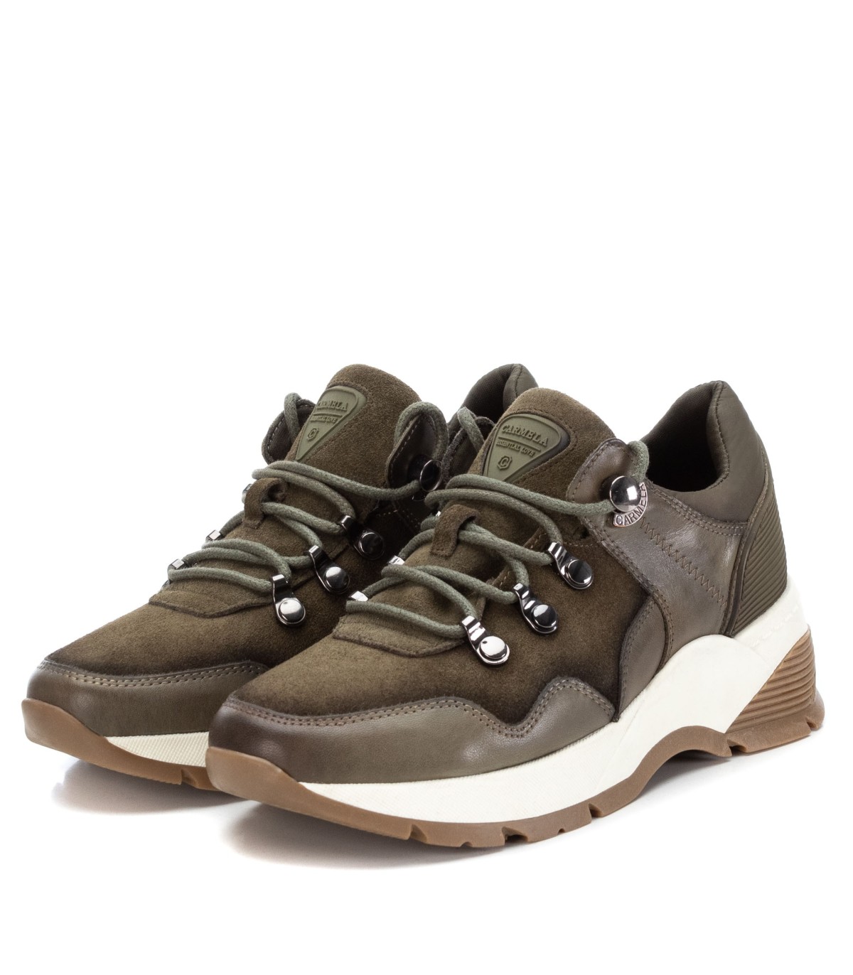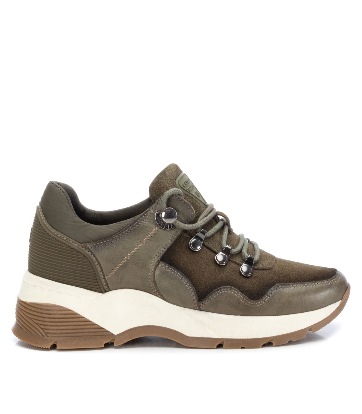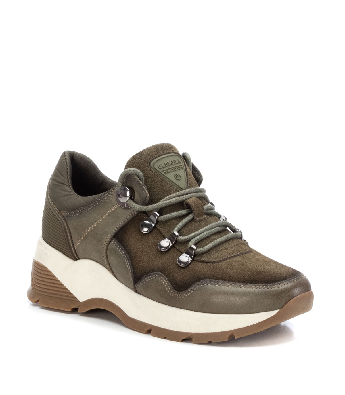 Zapatilla de mujer, de la marca Carmela. Fabricada en piel de calidad combinada con nylon y goma. Una fusión de materiales para ofrecer lo mejor esta temporada. Cordones regulables. Una zapatilla perfecta para largos paseos o para completar tus looks más atrevidos con su gruesa suela de 5 cm con goma antideslizante.
