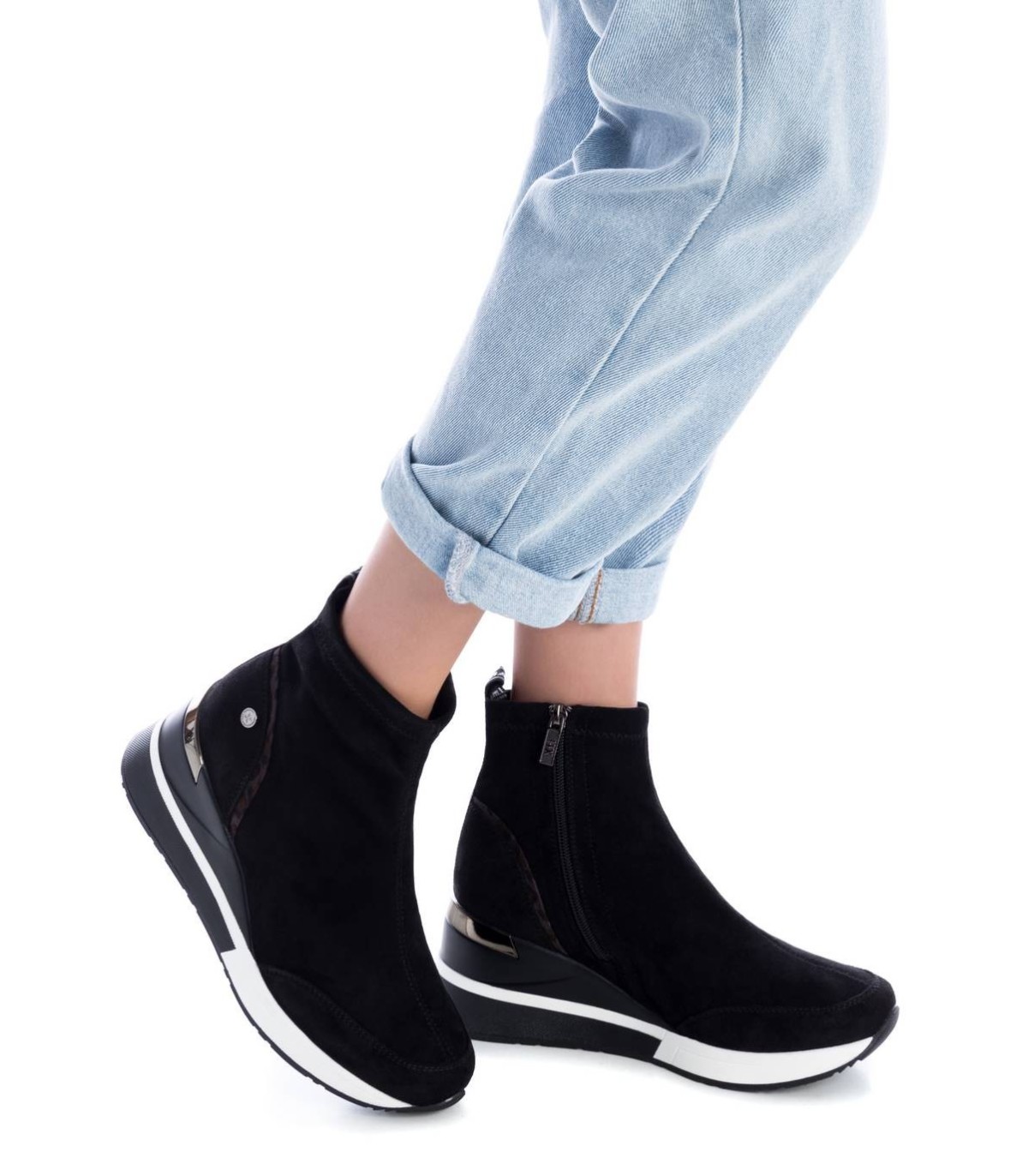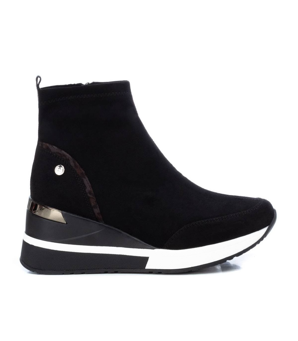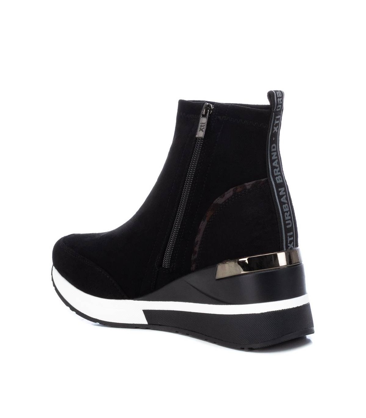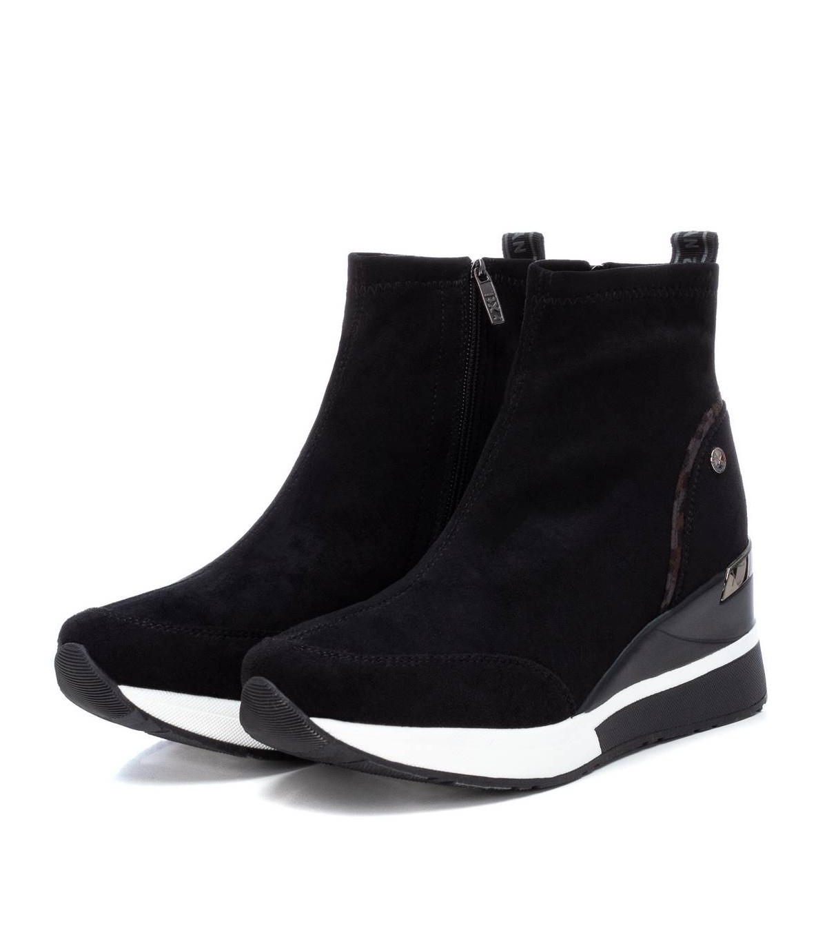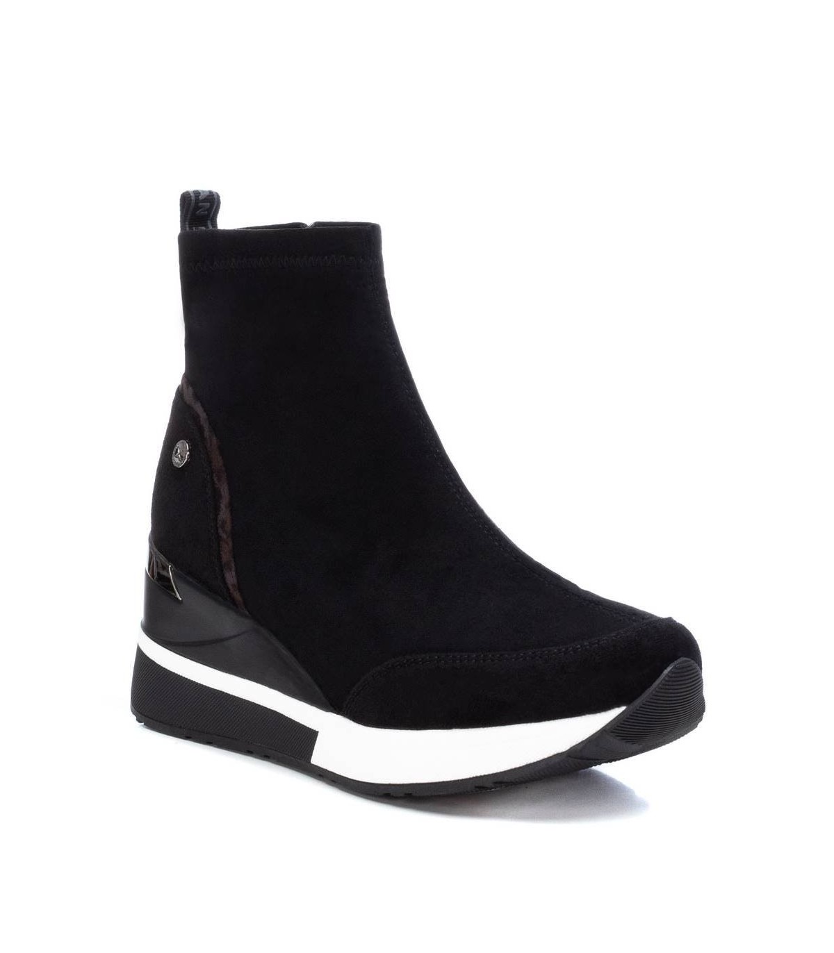 Zapatilla tipo botín de la marca Xti. Fabricada en suave antelina para adaptarse a la perfección al pie. Cremallera lateral para facilitar la puesta. Cómoda cuña de 7cm de altura con suela de goma antideslizante. Este modelo ha obtenido el certificado vegano por la organización mundial PETA (Organización de los derechos de los animales).