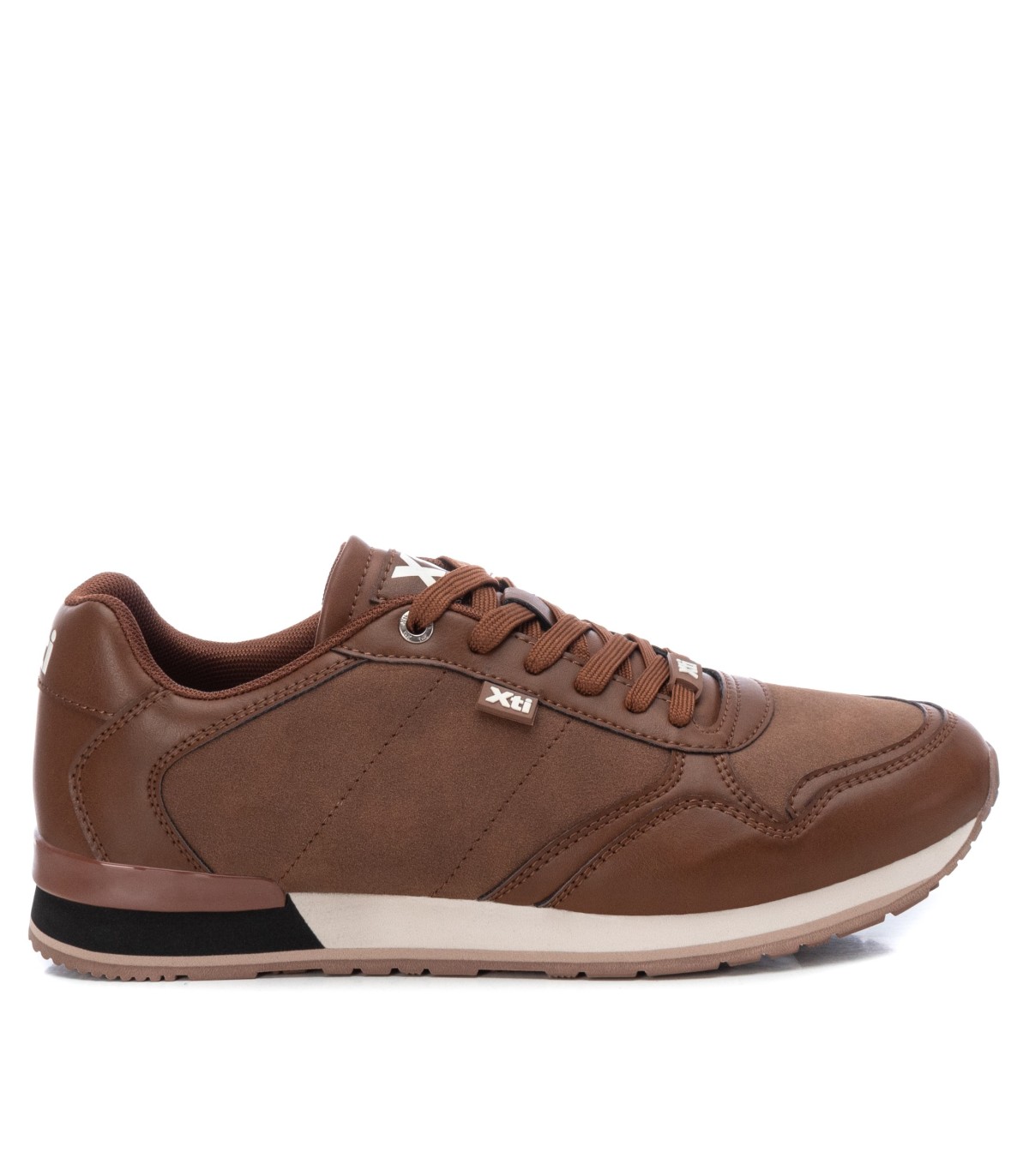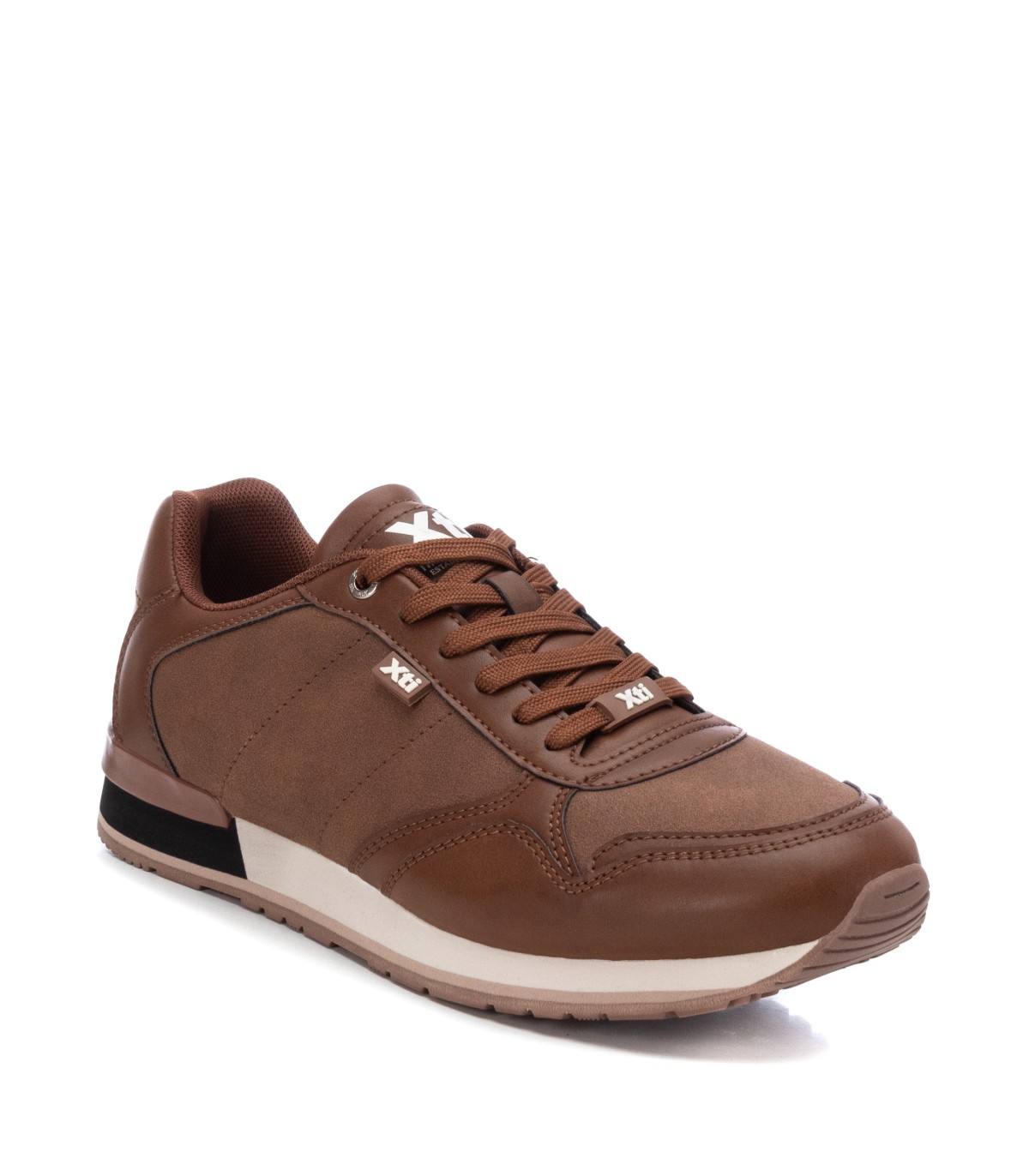 Zapatilla de hombre, de la marca Xti. Fabricado en material que imita la piel. Cordones ajustables. Cómoda suela bicolor de goma antideslizante. Un modelo fácil de combinar. Este modelo ha obtenido el certificado vegano por la organización mundial PETA (Organización de los derechos de los animales).