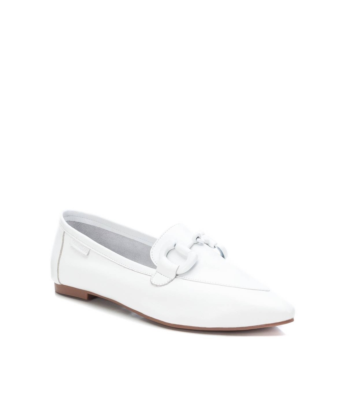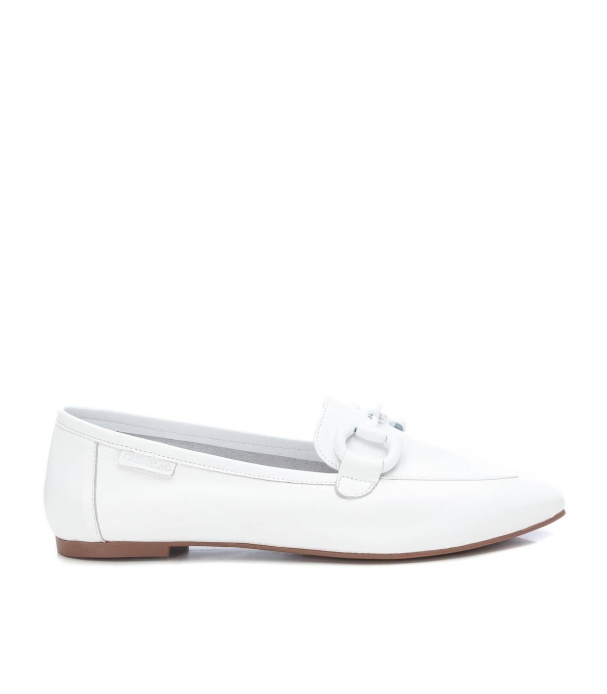Zapato de mujer de la marca Carmela. Fabricado en piel de alta calidad. Detalle metálico al tono del modelo. Suela plana de goma antideslizante.