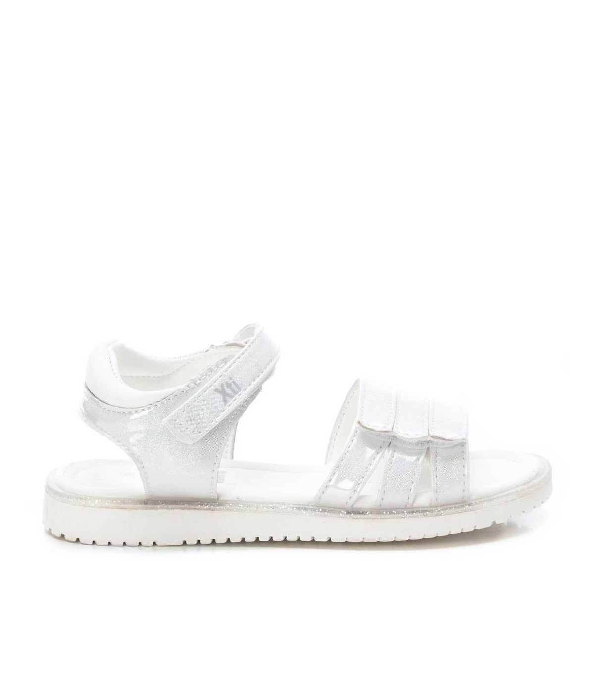 Sandalia de niña, de la marca Xti Kids. Fabricada en material que imita la piel con acabado charol. Cierre mediante tira adherente. Una sandalia tipo casual para combinar con los mejores looks de tu pequeña. Con cómoda planta al tono y canalada suela de goma antideslizante. Este modelo ha obtenido el certificado vegano por la organización mundial PETA (Organización de los derechos de los animales).