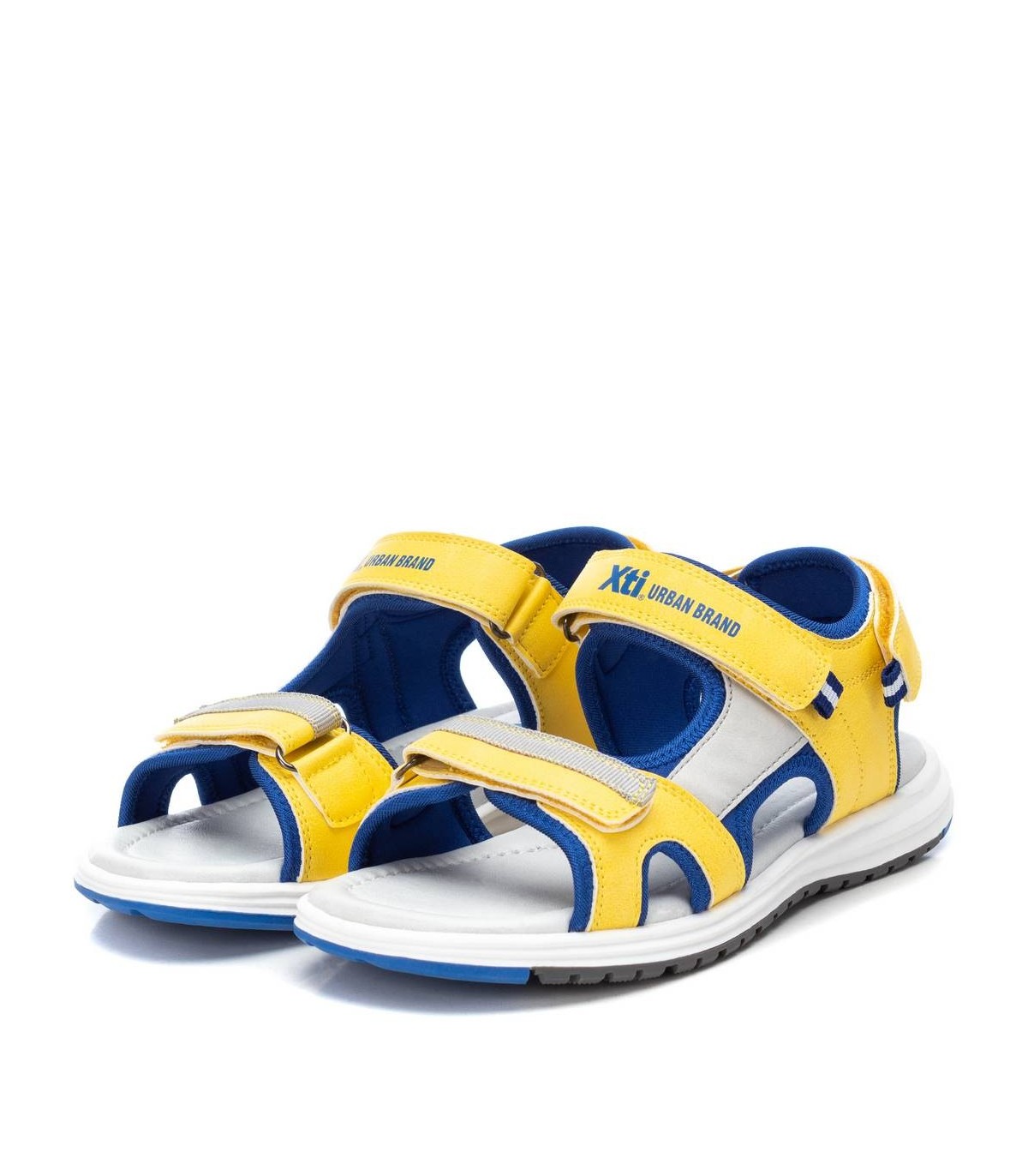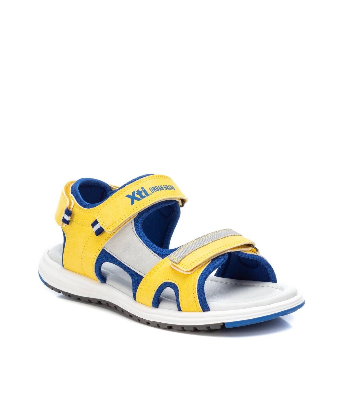 Sandalia de niño, de la marca Xti Kids. Fabricada en material que imita la piel con forro en textil para mayor comodidad. Cierre mediante tiras adherentes. Cómoda planta con suela de goma dentada antideslizante para acompañar a los peques en todas las aventuras de esta temporada. Este modelo ha obtenido el certificado vegano por la organización mundial PETA (Organización de los derechos de los animales).