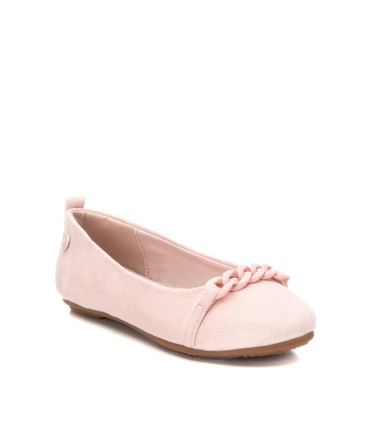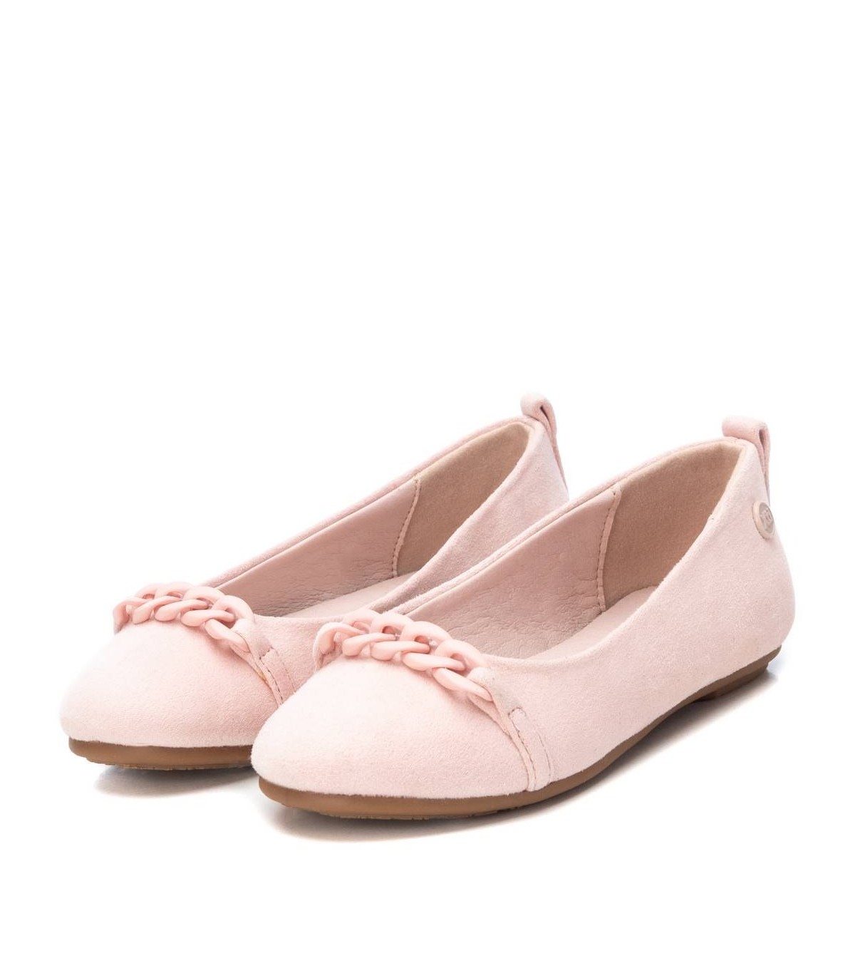 Bailarina de niña, de la marca Xti Kids. Fabricada en suave antelina. Tirador trasero para facilitar la puesta. Cadena decorativa al tono. Suela de goma antideslizante. Bailarina perfecta para completar los looks más vestir de la temporada. Este modelo ha obtenido el certificado vegano por la organización mundial PETA (Organización de los derechos de los animales).