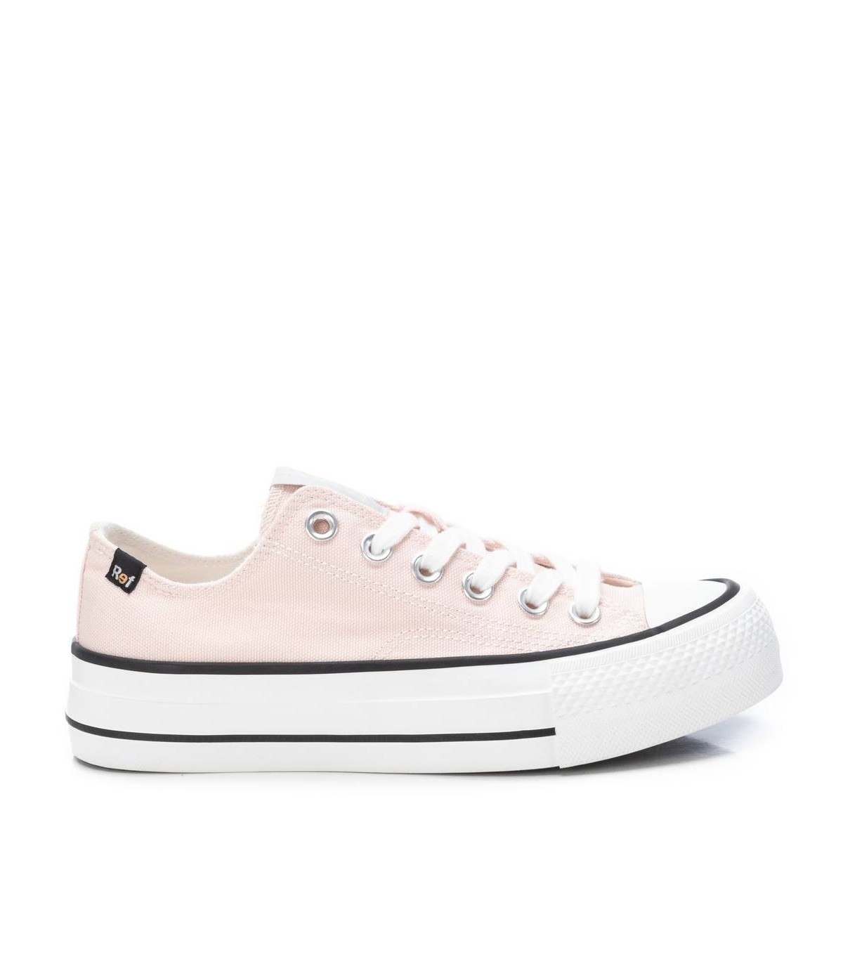 Zapatilla de mujer, de la marca Refresh. Fabricada en lona. Cordones ajustables. Suela de goma antideslizante. Ideales para tus looks de temporada. Este modelo ha obtenido el certificado vegano por la organización mundial PETA (Organización de los derechos de los animales).