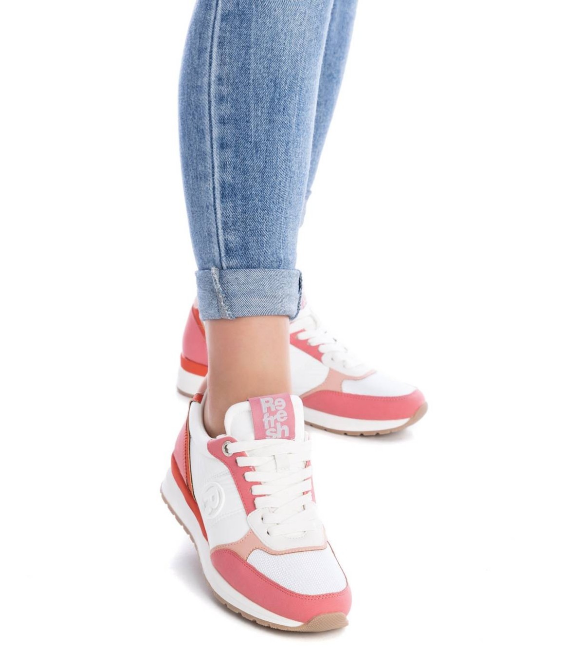 Zapatilla de mujer, de la marca Refresh. Fabricada en material que imita la piel combinado con textil. Cordones ajustables. Suela con goma antideslizante. Esta zapatilla se convertirá en un básico de tu armario. Este modelo ha obtenido el certificado vegano por la organización mundial PETA (Organización de los derechos de los animales).