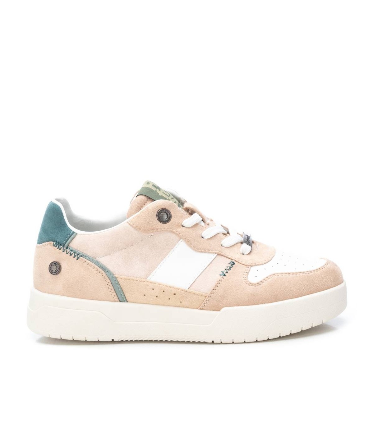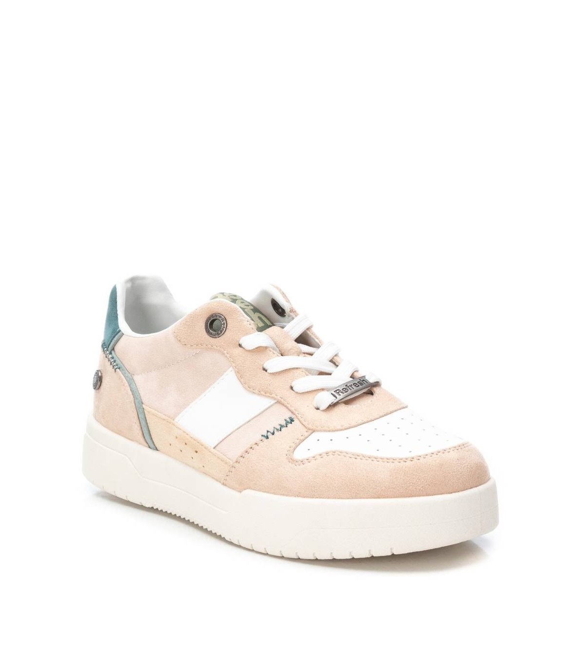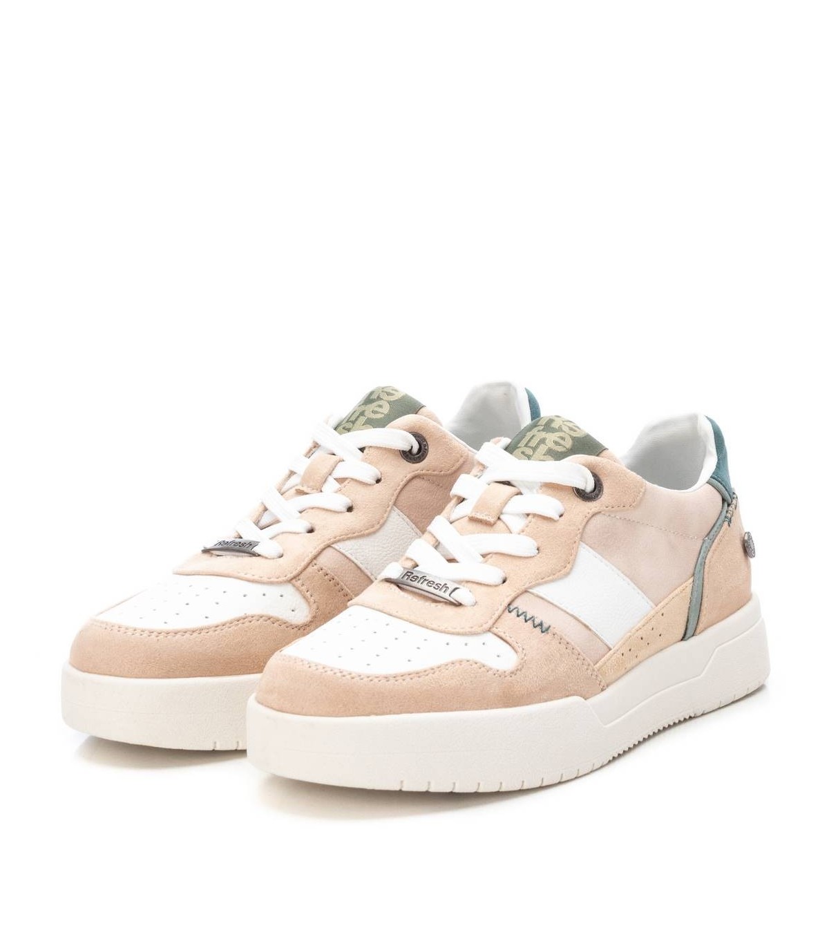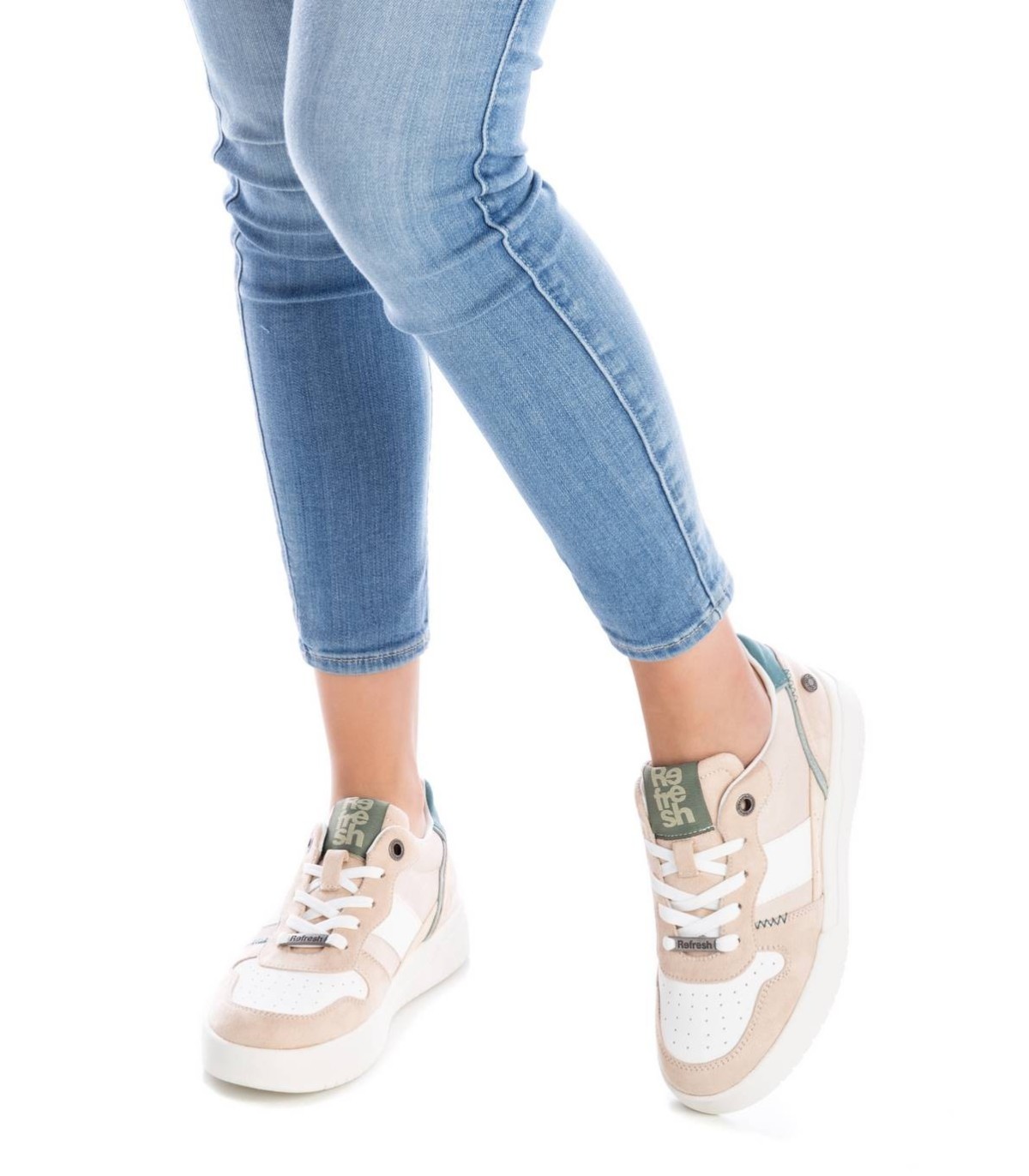 Zapatilla de mujer, de la marca Refresh. Fabricada en material que imita la piel combinado con textil. Cordones ajustables y suela de goma antideslizante. Un modelo con colores ideales para esta temporada. Este modelo ha obtenido el certificado vegano por la organización mundial PETA (Organización de los derechos de los animales).