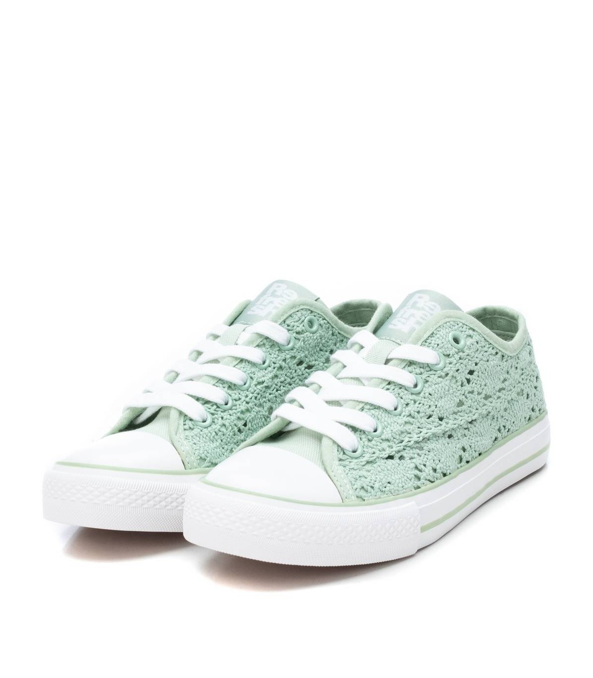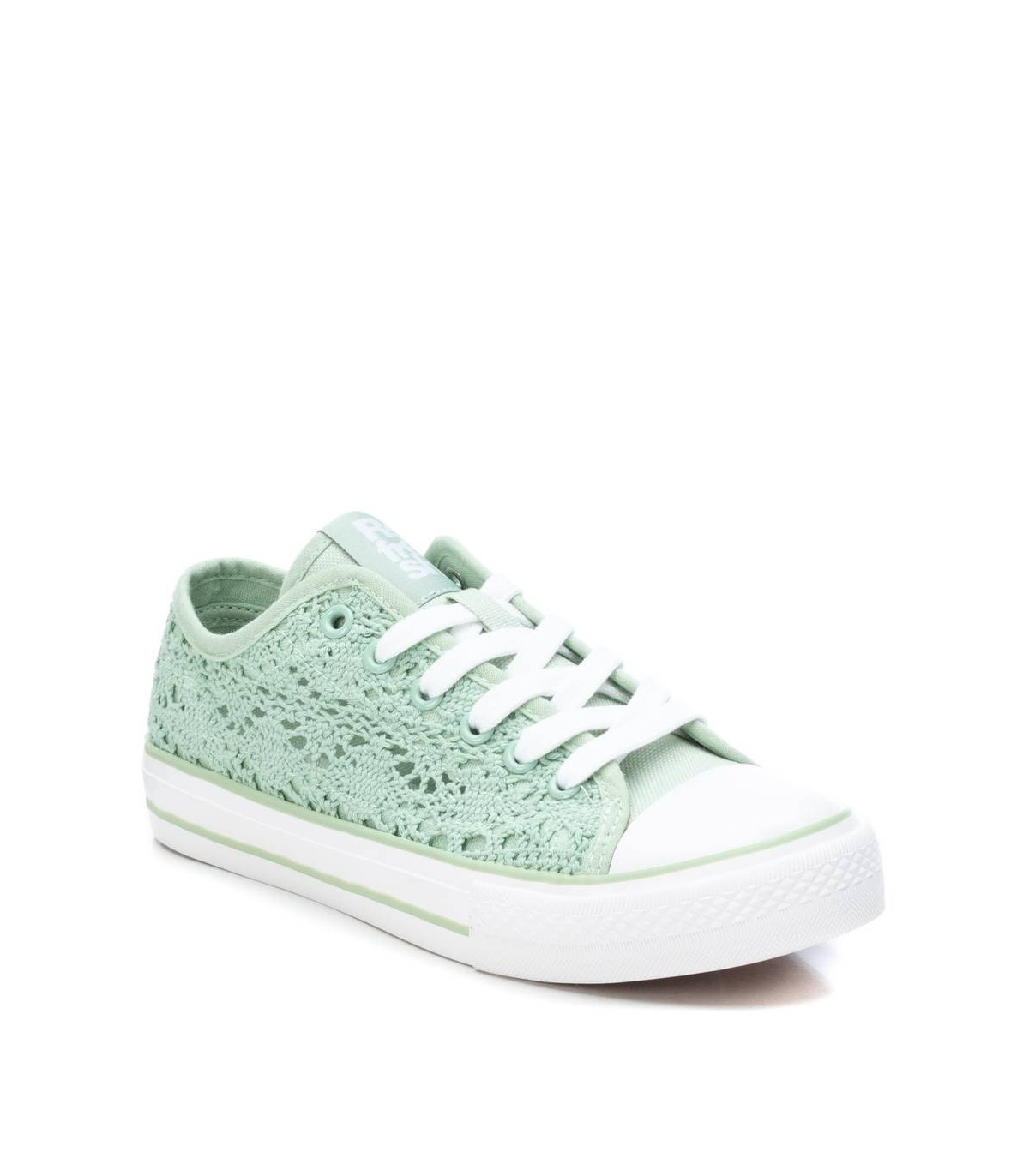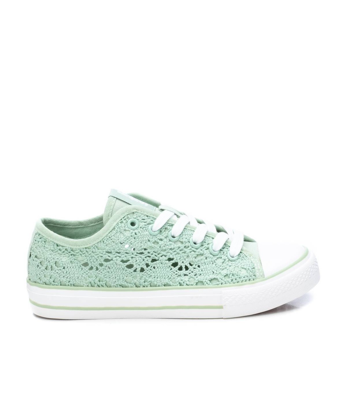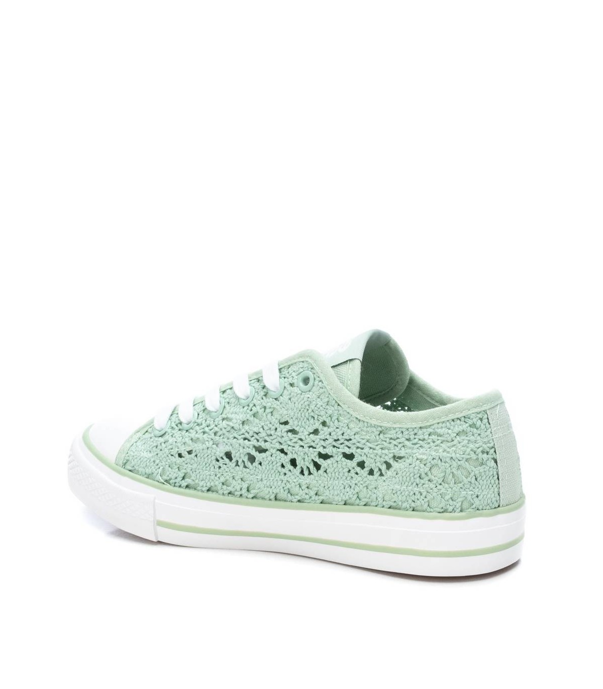 Zapatilla de mujer, de la marca Refresh. Fabricada en material tejido de ganchillo. Cordones ajustables y ojetes al tono. Suela de goma antideslizante con líneas al tono. Un modelo ideal para el verano. Este modelo ha obtenido el certificado vegano por la organización mundial PETA (Organización de los derechos de los animales).