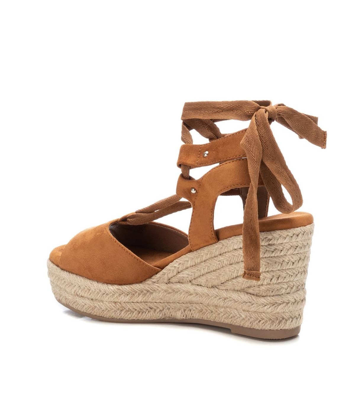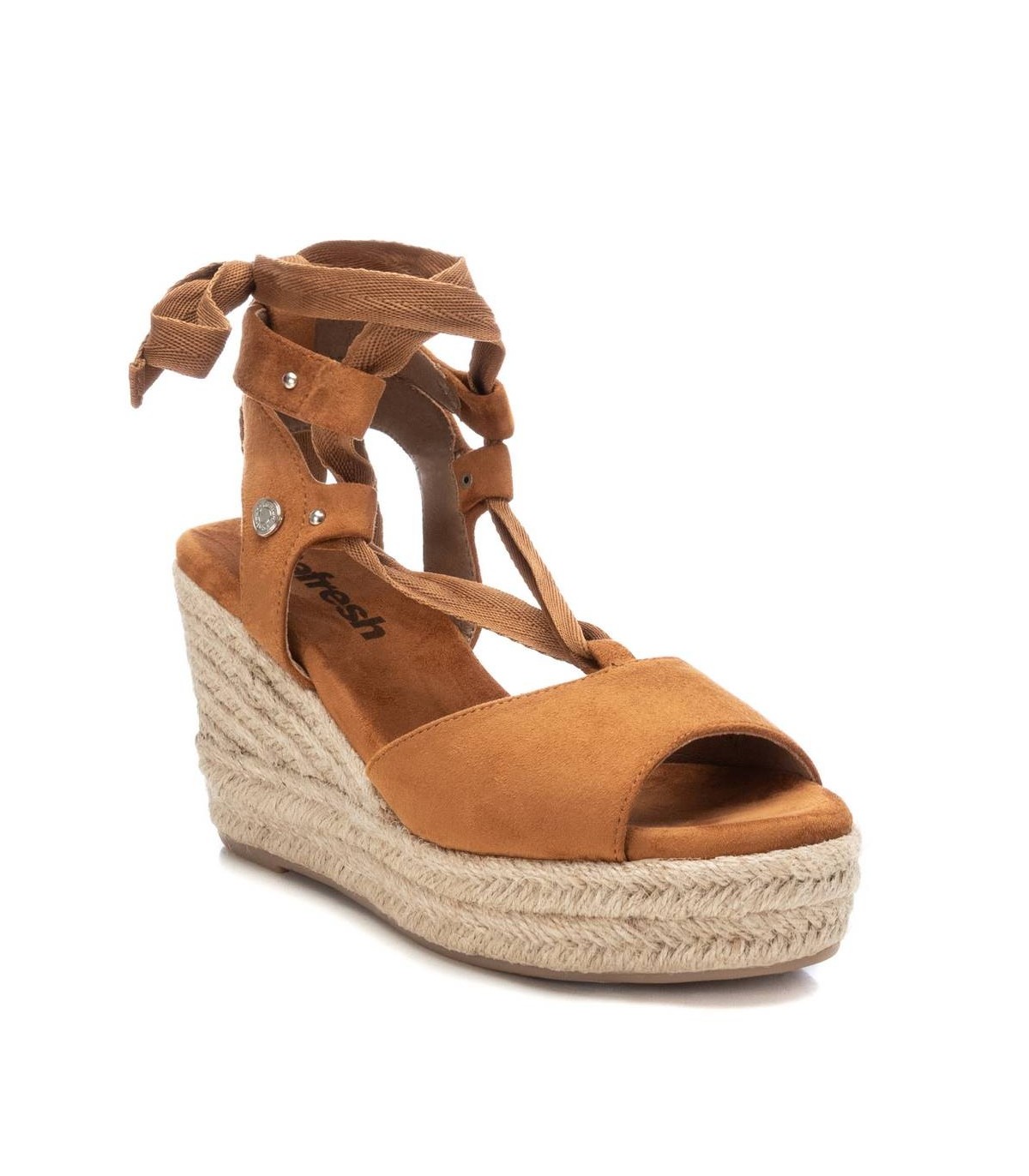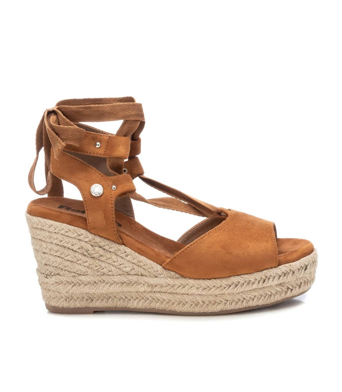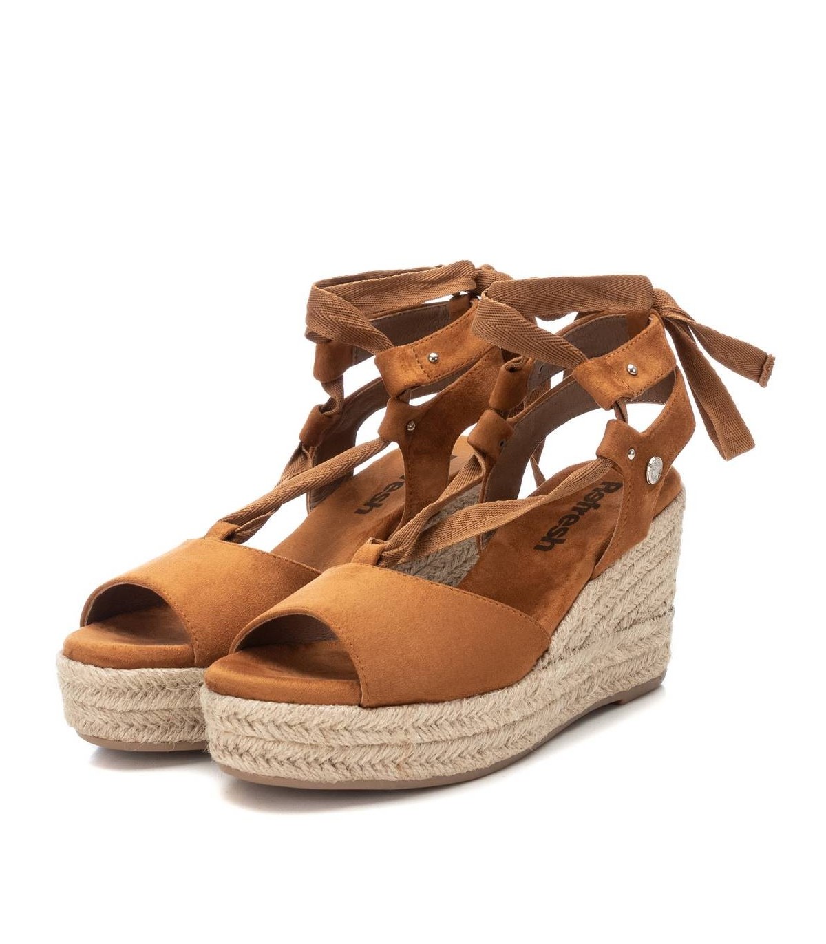 Sandalia de mujer, de la marca Refresh. Fabricada en suave antelina. Diseño de pala con cintas atadas al tobillo. Cuña de 9 cm de yute con plataforma delantera. Suela de goma antideslizante. Un modelo perfecto para combinar con tus mejores looks de esta temporada. Este modelo ha obtenido el certificado vegano por la organización mundial PETA (Organización de los derechos de los animales).