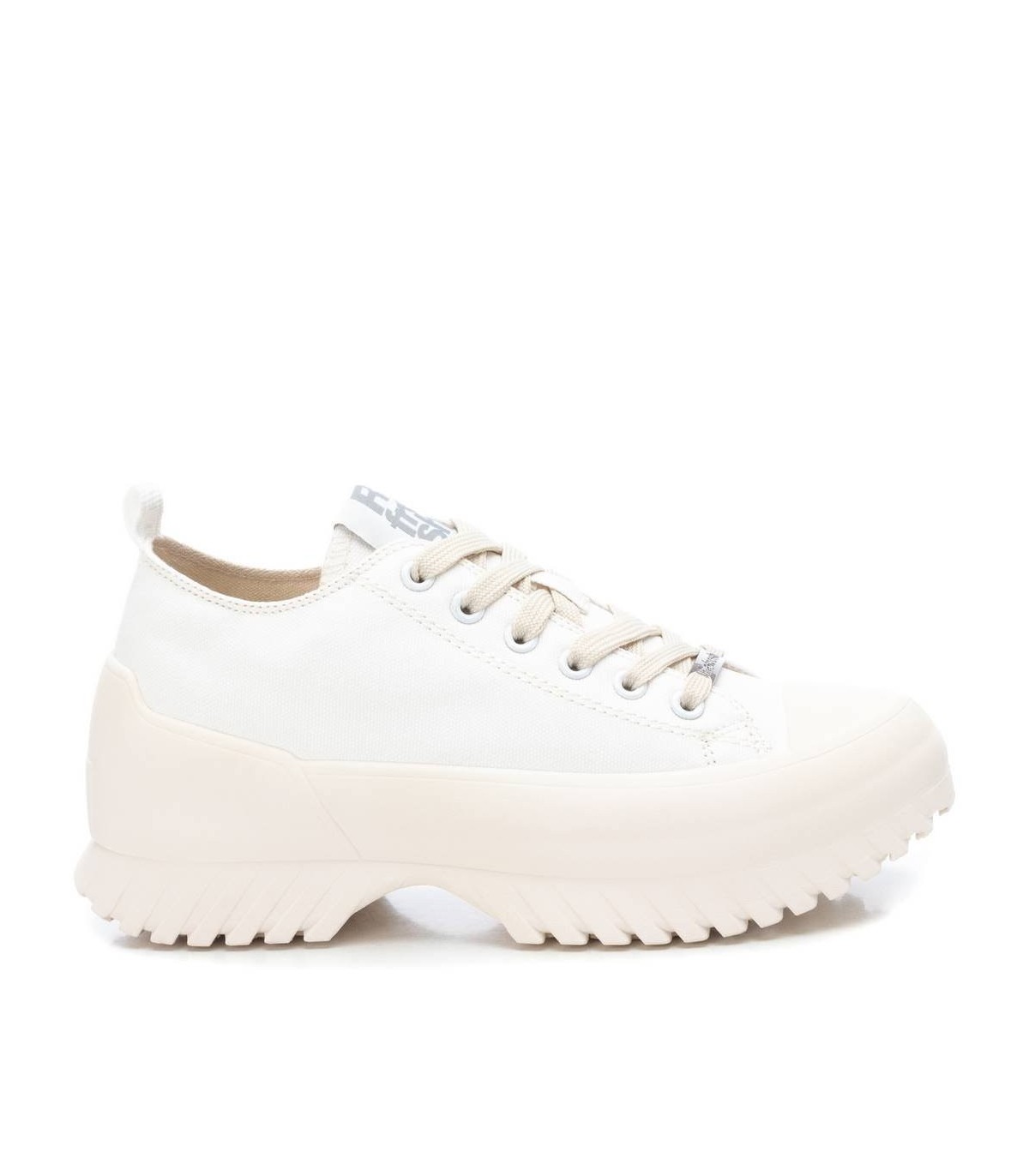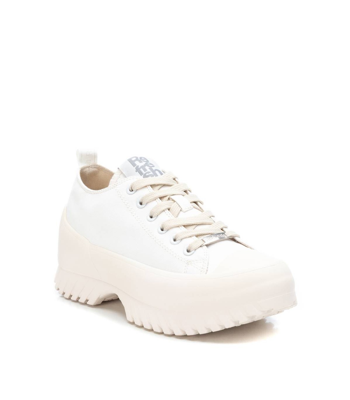 Zapatilla de mujer, de la marca Refresh. Fabricada en lona con cordones ajustables. Tirador trasero para facilitar la puesta. Suela volumen de 4 cm de goma antideslizante. Un modelo en tendencia ideal para la temporada. Este modelo ha obtenido el certificado vegano por la organización mundial PETA (Organización de los derechos de los animales).