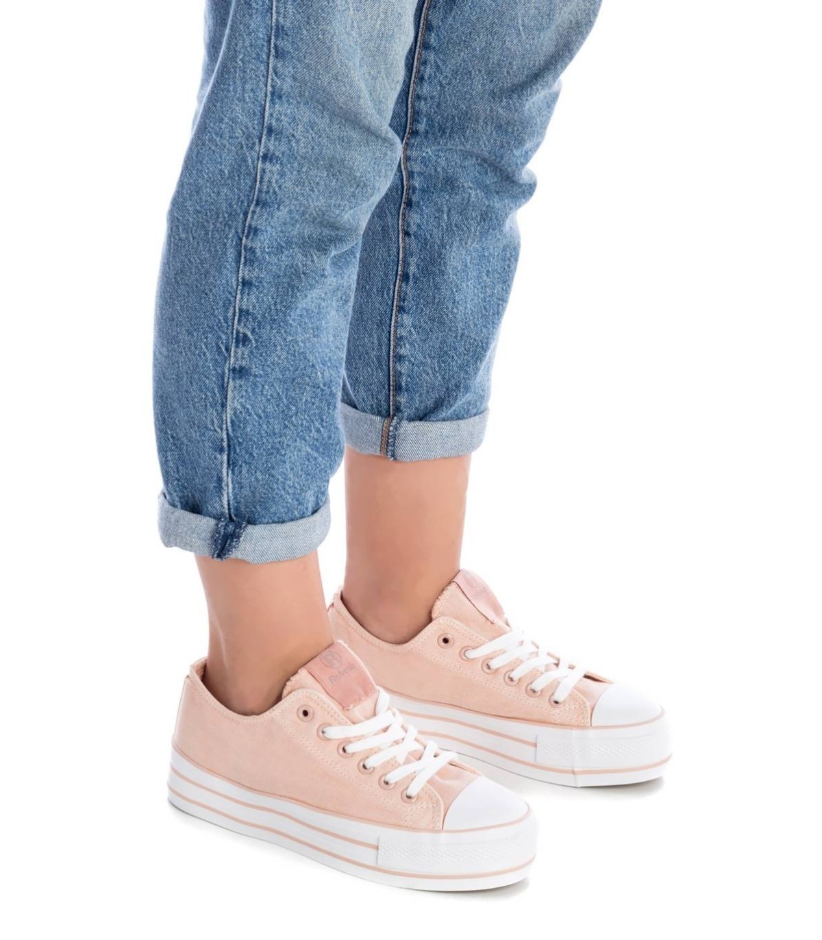 Zapatilla de mujer, de la marca Refresh. Fabricada en lona con acabado desgastado en tendencia esta temporada. Cierre mediante cordones.