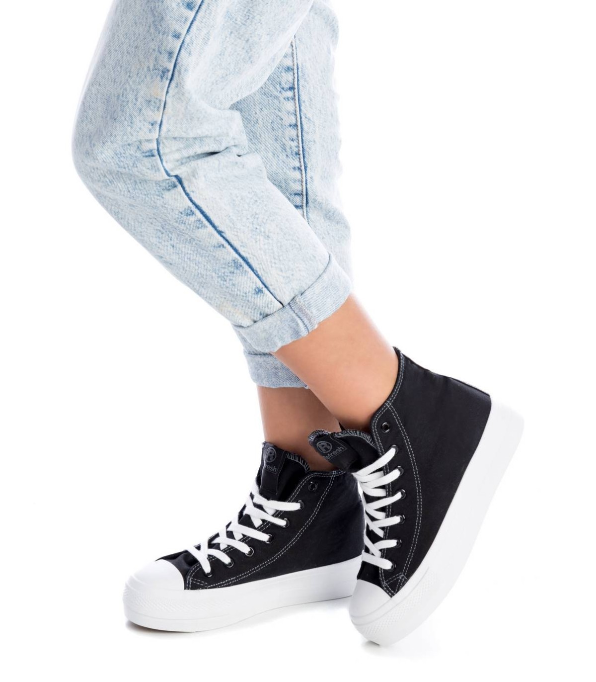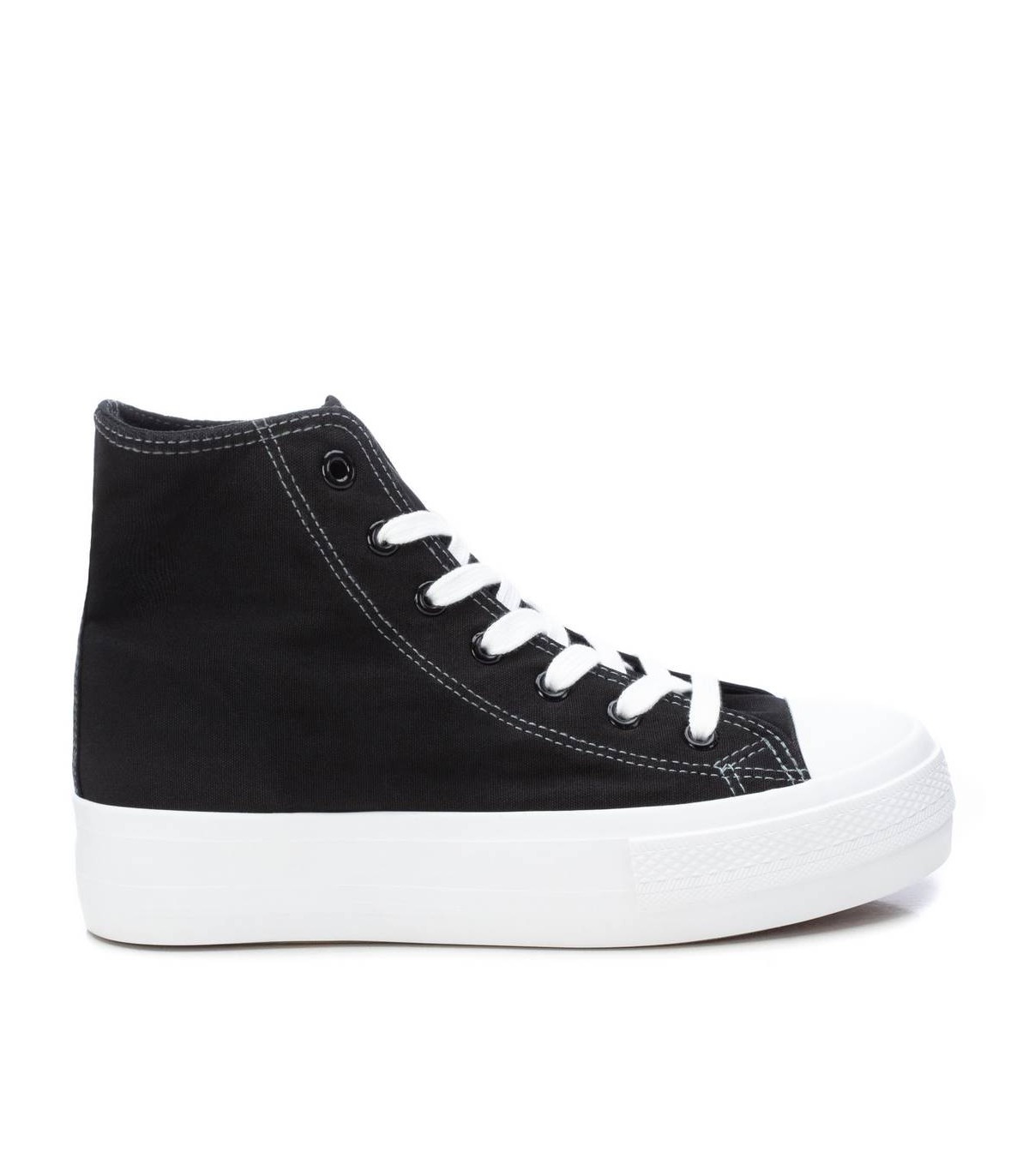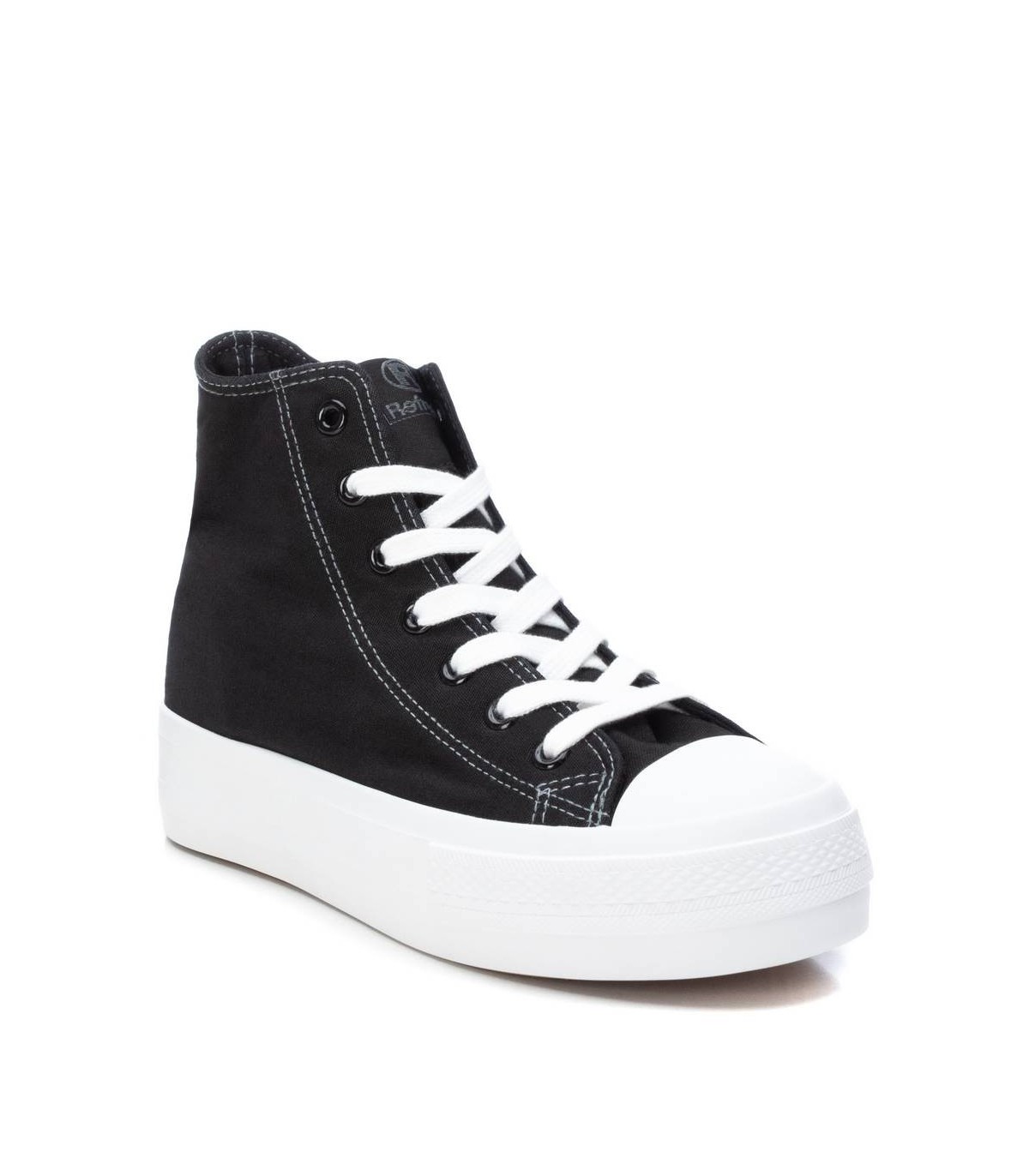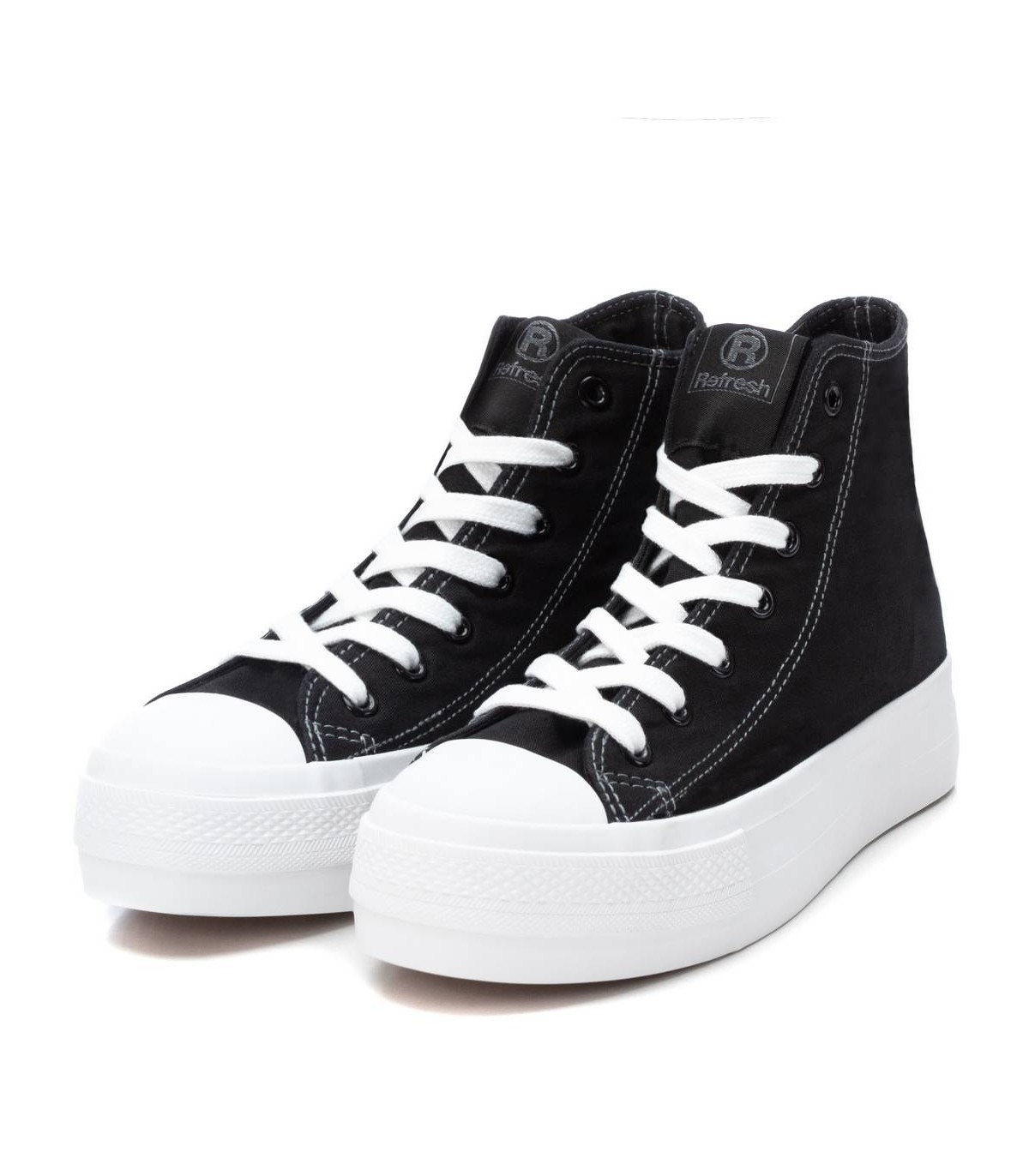 Zapatilla de mujer, de la marca Refresh. Fabricada en lona con acabado desgastado en tendencia esta temporada. Cordones ajustables. Suela gruesa de goma antideslizante. Este modelo ha obtenido el certificado vegano por la organización mundial PETA (Organización de los derechos de los animales).