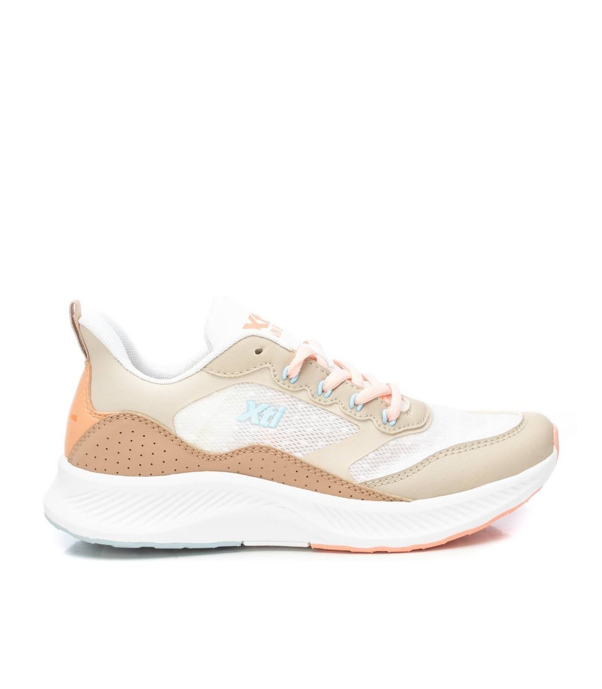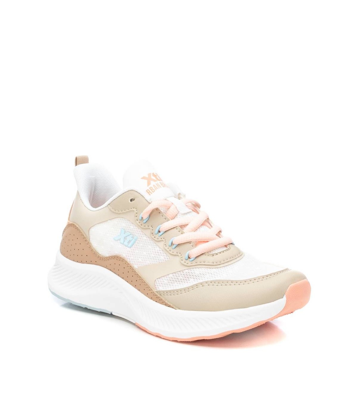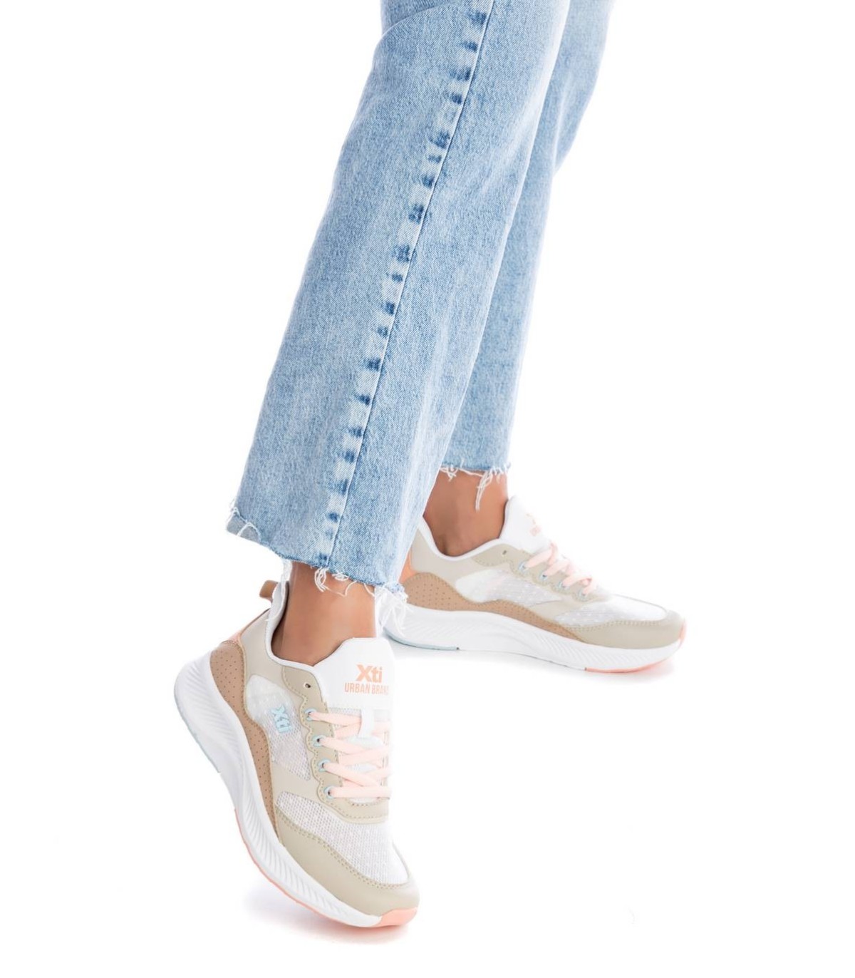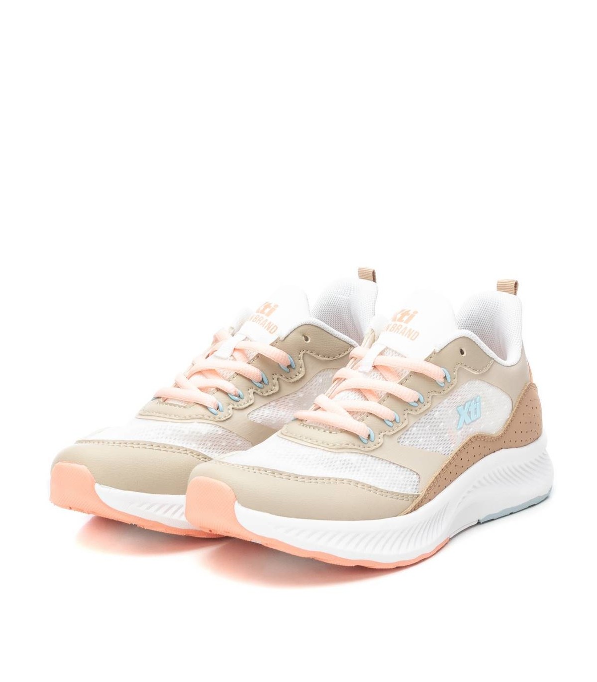 Zapatilla de mujer, de la marca Xti. Fabricada en tejido combinado con material que imita la piel. Detalles impresos para un look más sport. Cierre con cordones. Tira trasera para facilitar la puesta. Suela de goma antideslizante. Este modelo ha obtenido el certificado vegano por la organización mundial PETA (Organización de los derechos de los animales).
