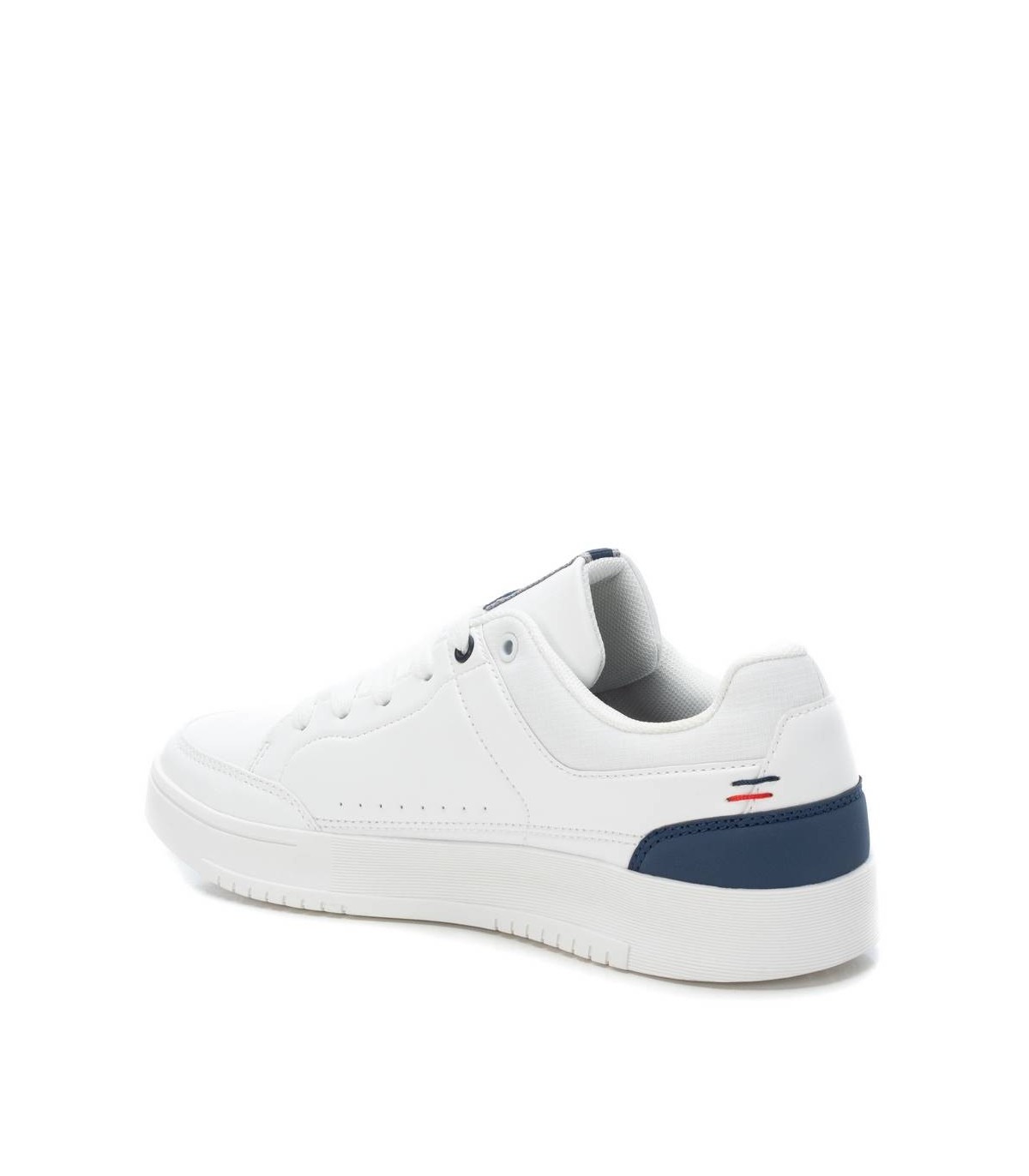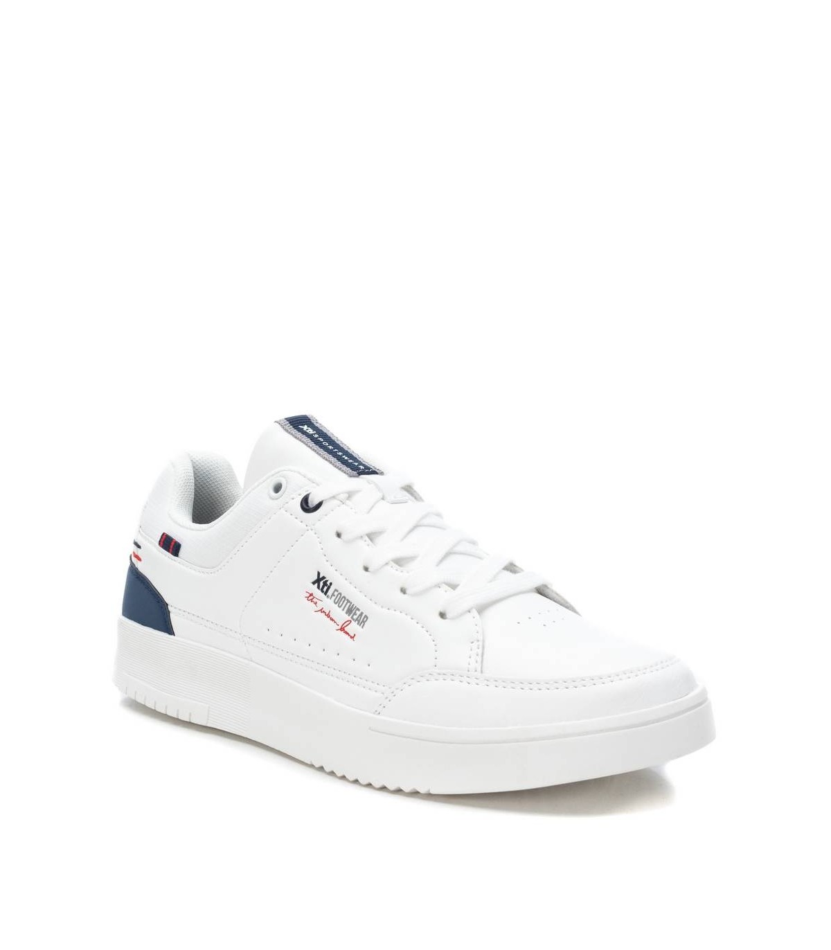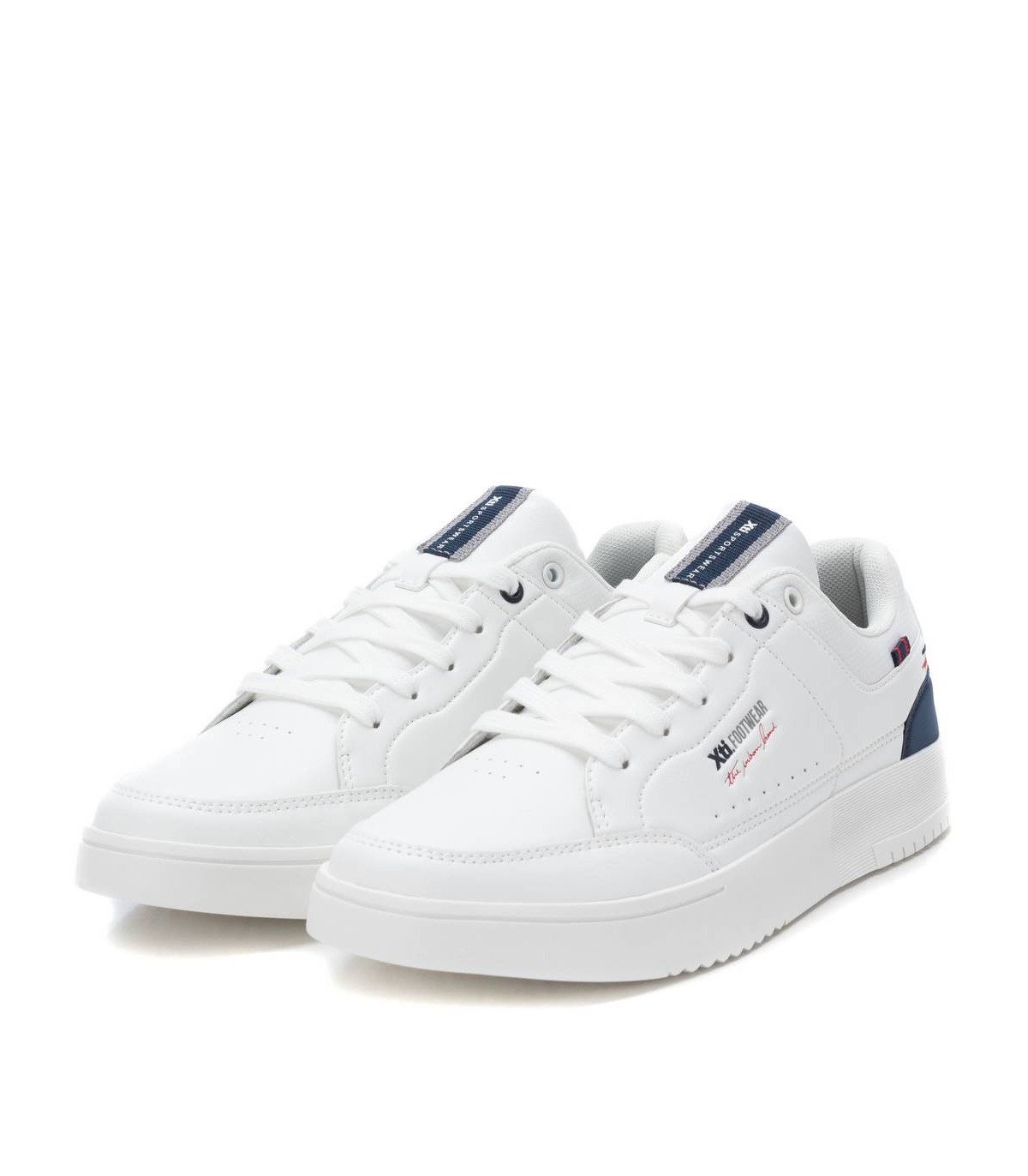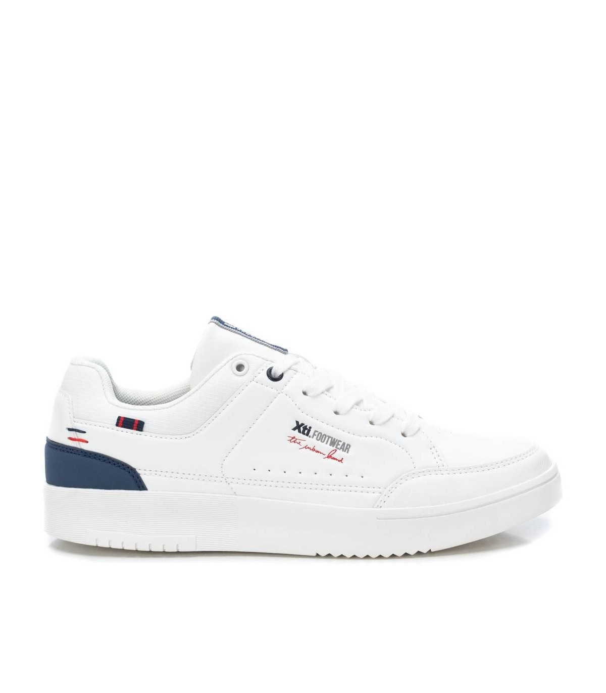Zapatilla de hombre, de la marca Xti. Fabricada en material que imita la piel, con piezas en contraste para un toque de color. Cierre mediante cordones. Suela de goma antideslizante. Este modelo ha obtenido el certificado vegano por la organización mundial PETA (Organización de los derechos de los animales).