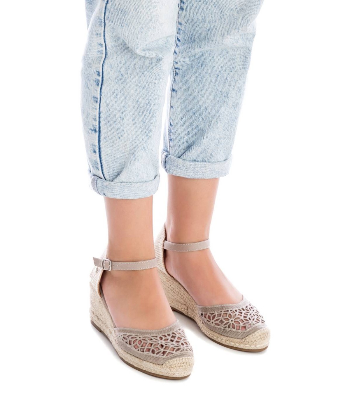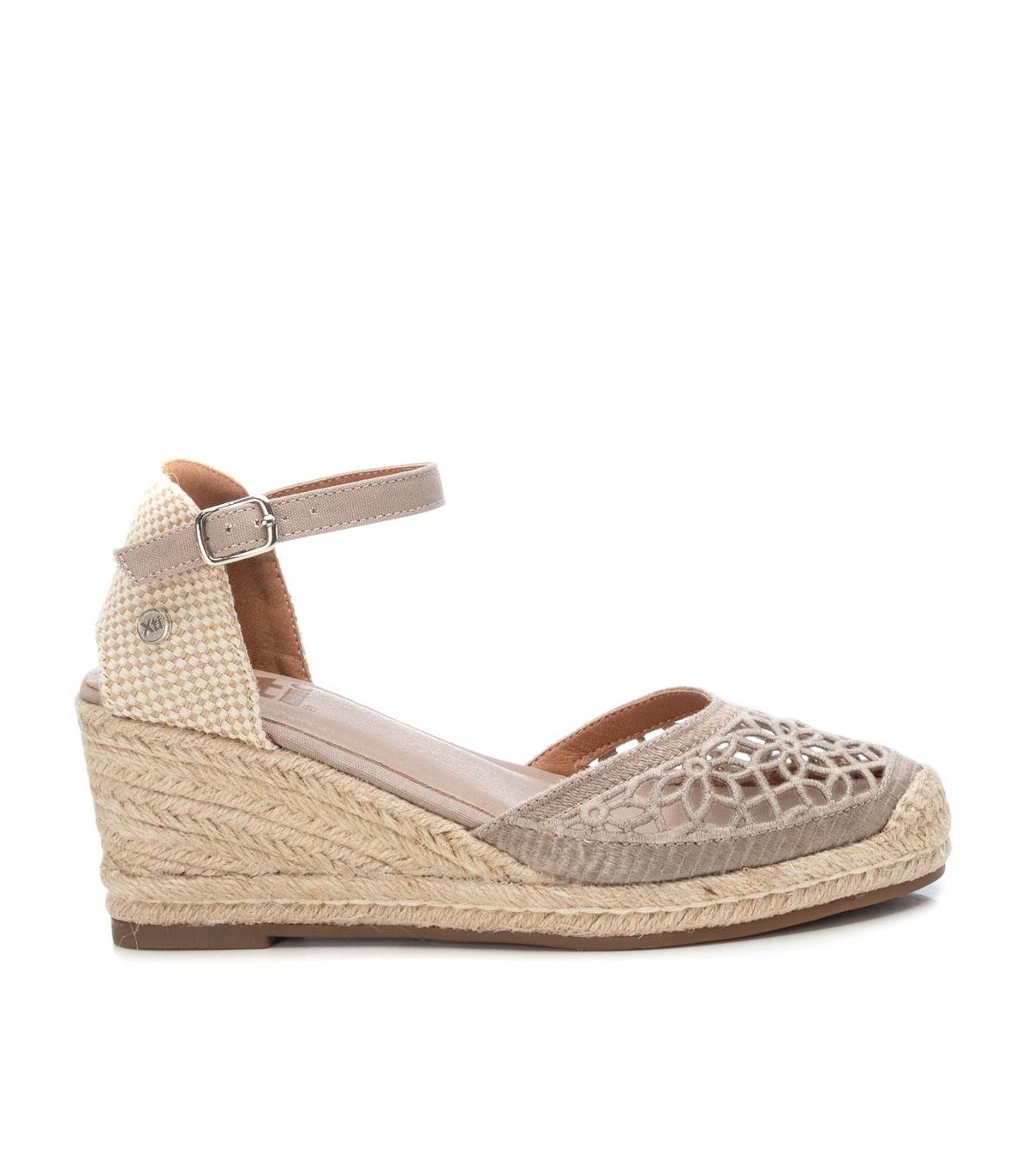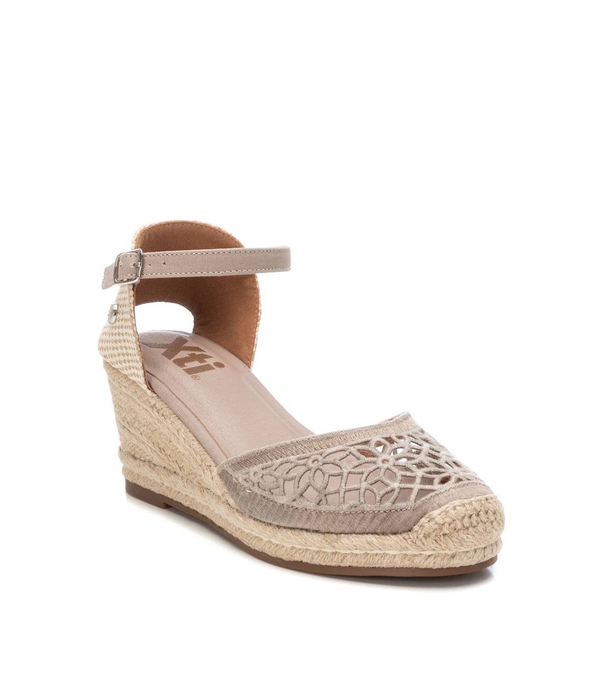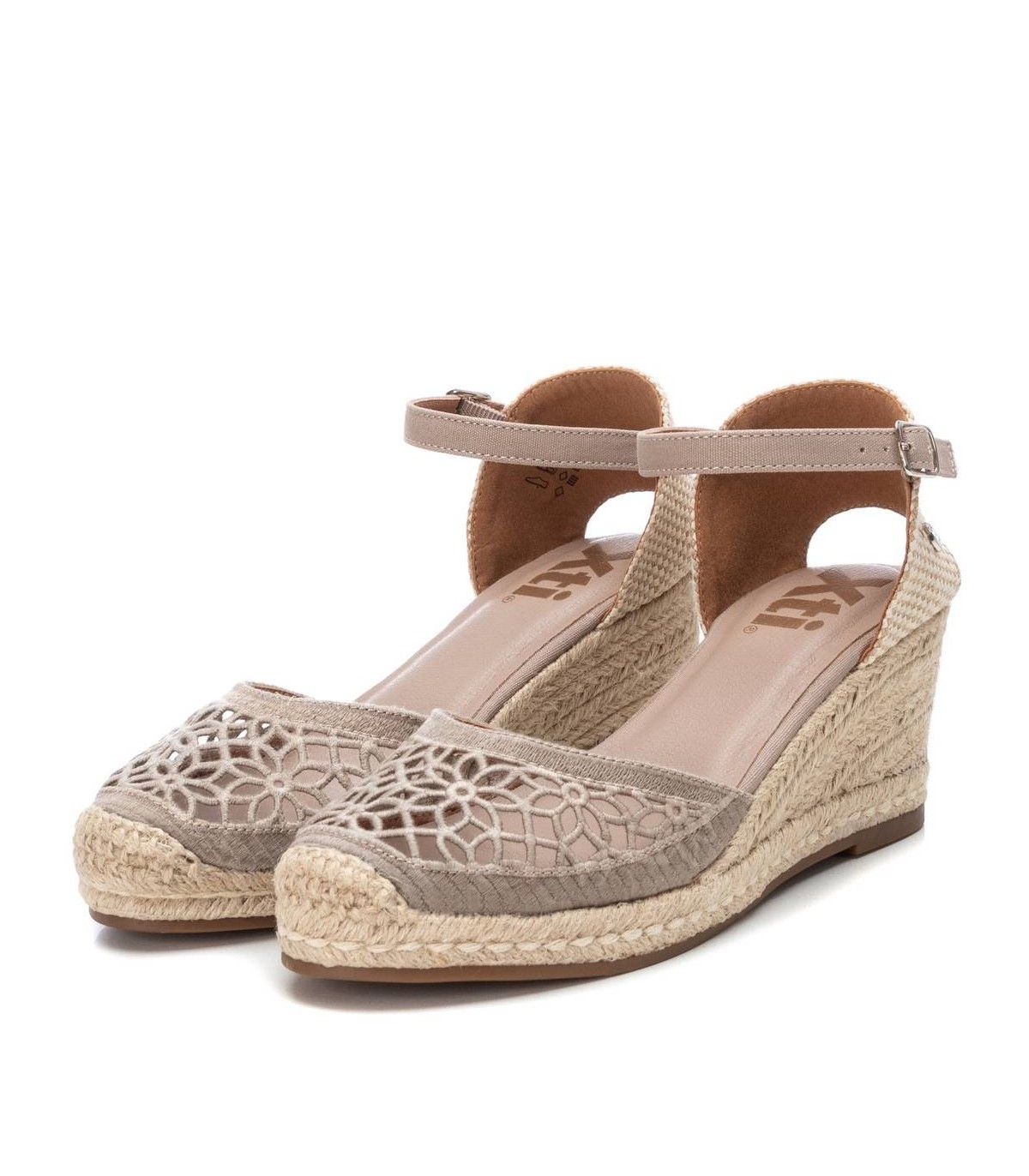 Alpargata de mujer tipo valenciana, de la marca Xti. Fabricado en un precioso motivo de crochet calado, combinado con una trasera de textil para mayor comodidad, será el protagonista de todos tus looks. Cierre con hebilla metálica. Cuña de 7 cm de yute con suela de goma antideslizante. Este modelo ha obtenido el certificado vegano por la organización mundial PETA (Organización de los derechos de los animales).