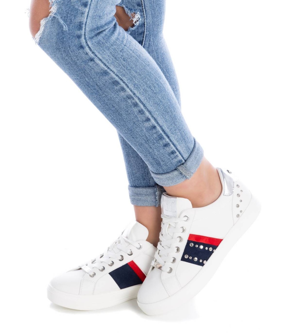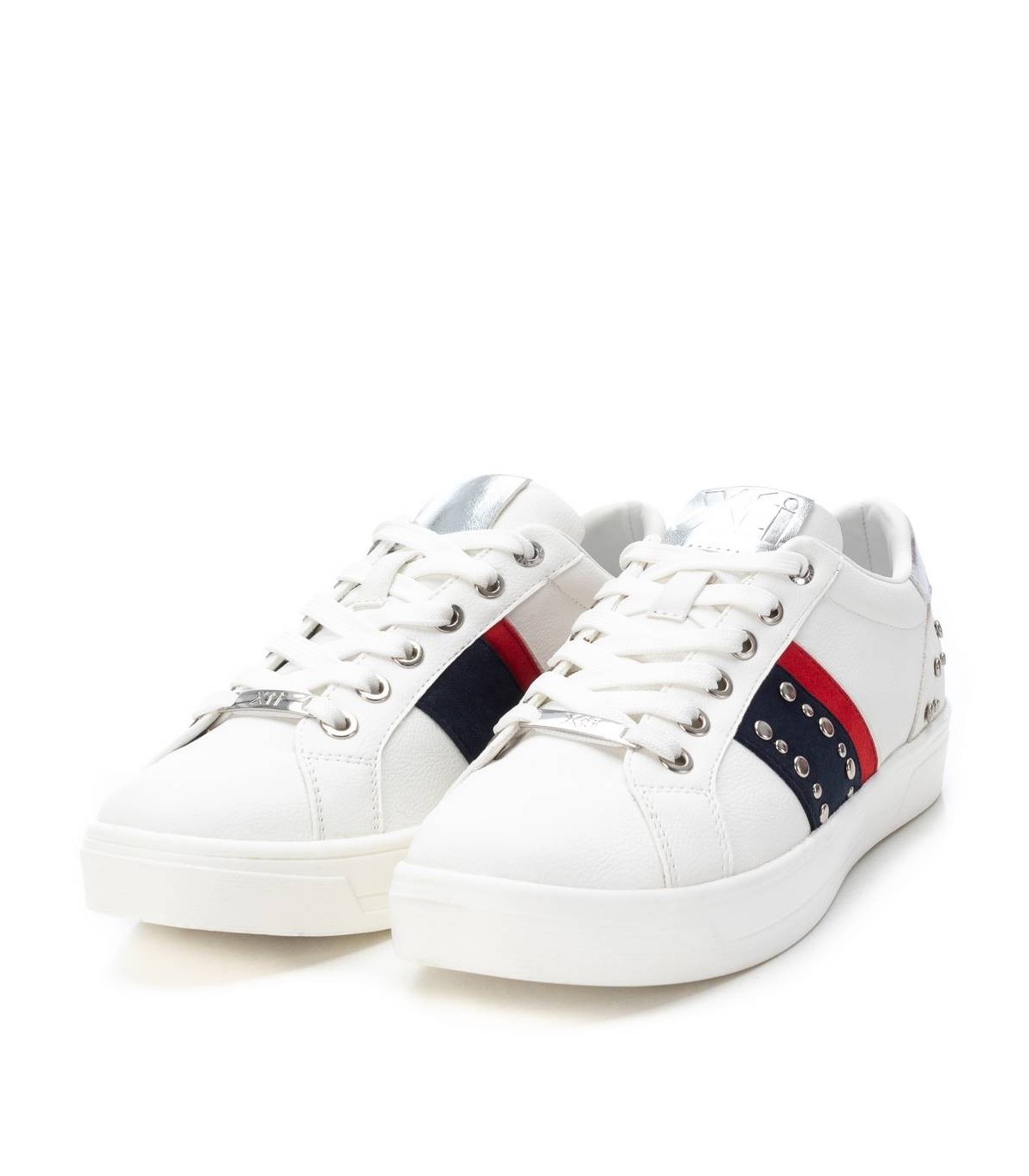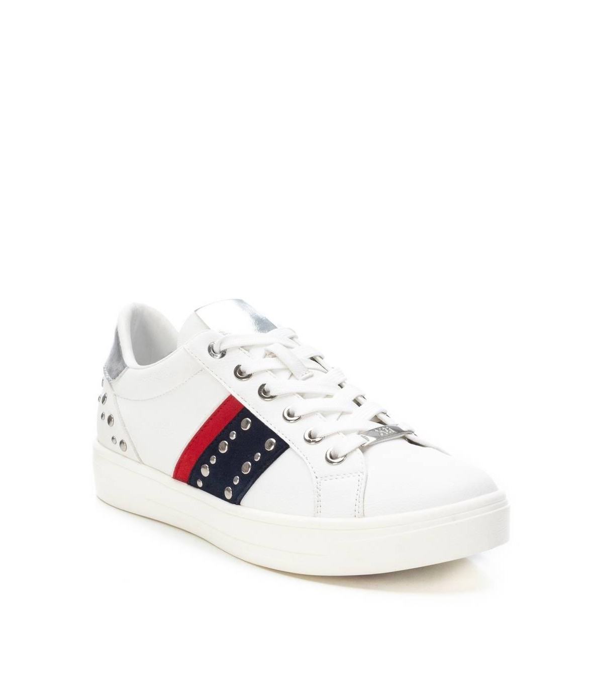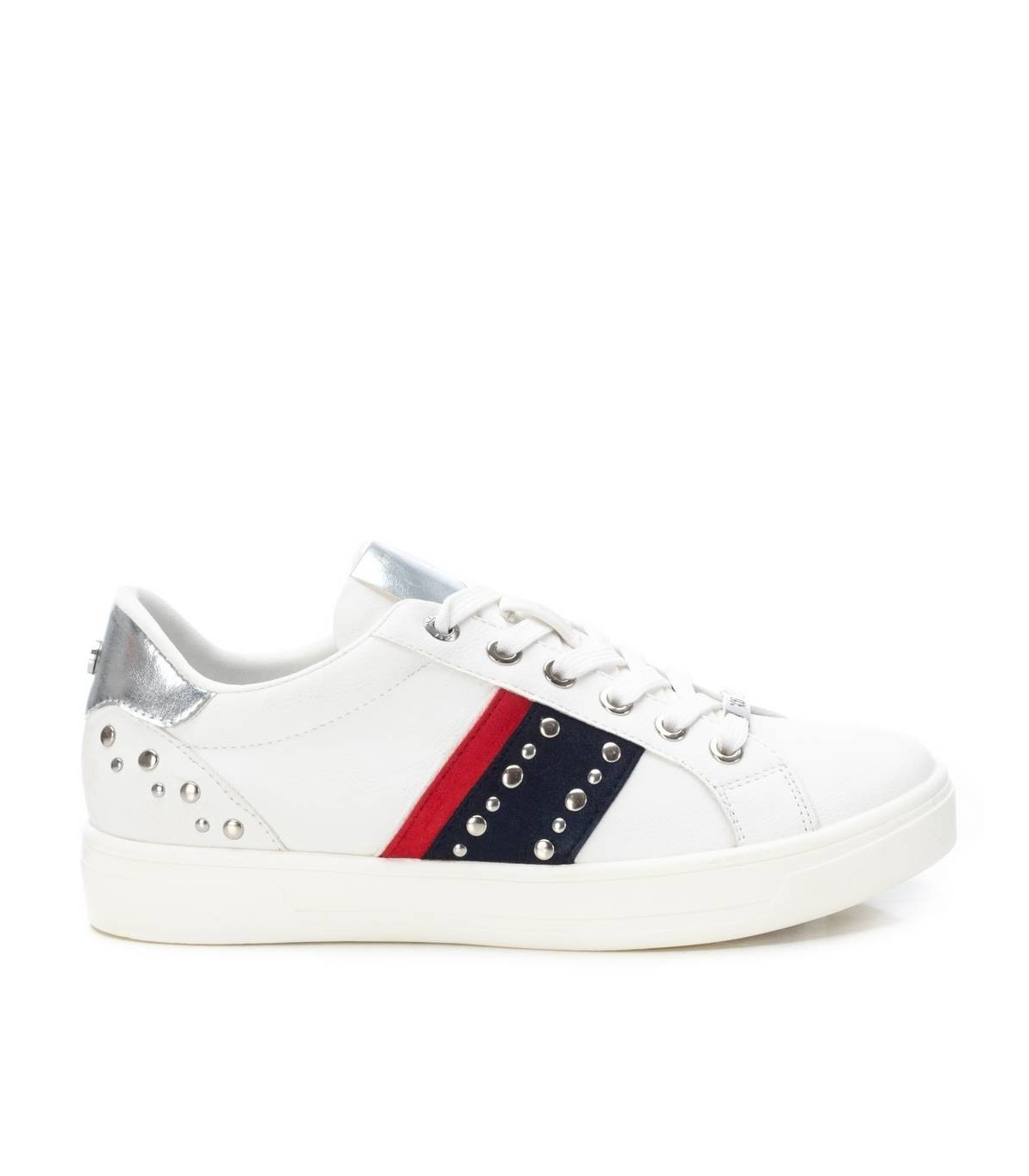Zapatilla de mujer, de la marca Xti. Fabricada en material que imita la piel, con detalles metalizados. Detalle de tachuelas para un look más urbano. Cierre mediante cordones. Suela antideslizante. Este modelo ha obtenido el certificado vegano por la organización mundial PETA (Organización de los derechos de los animales).