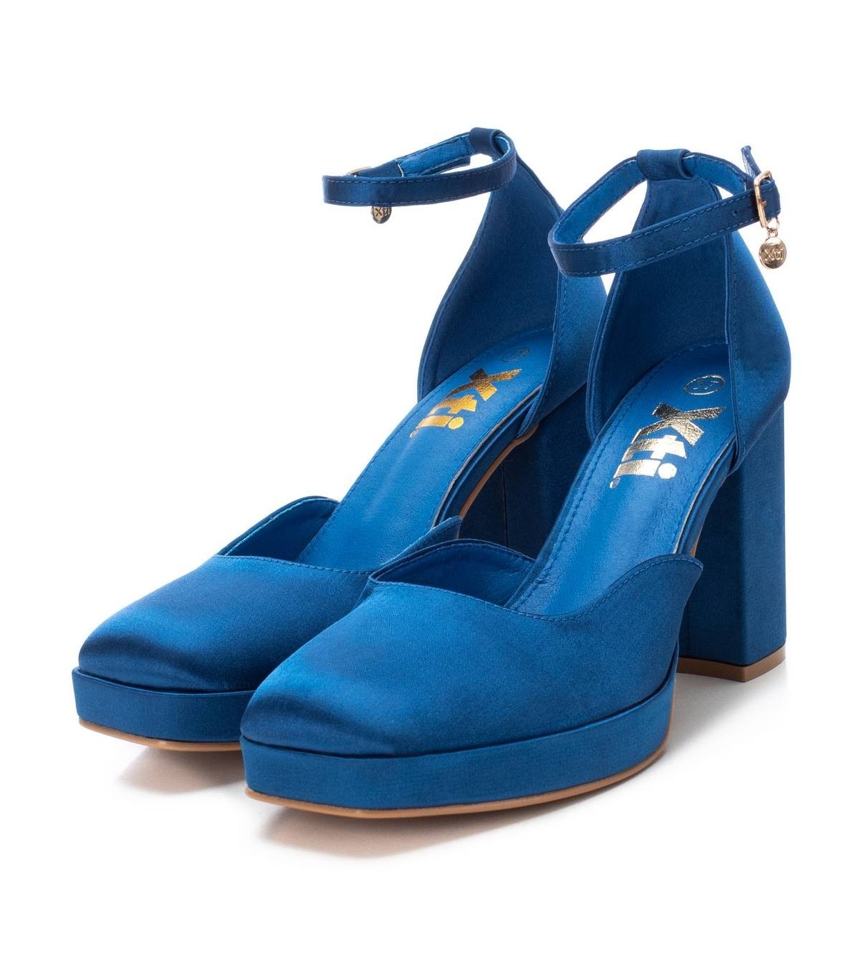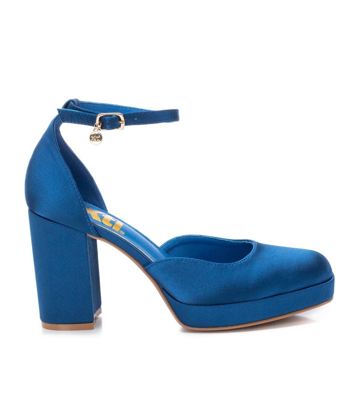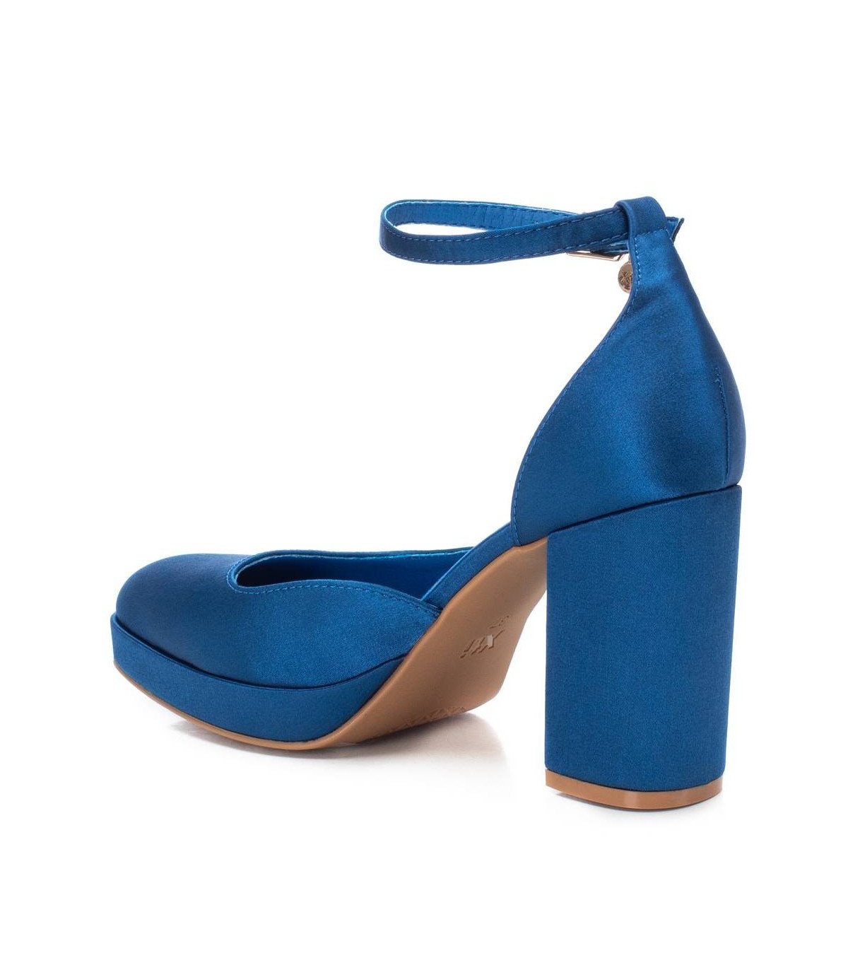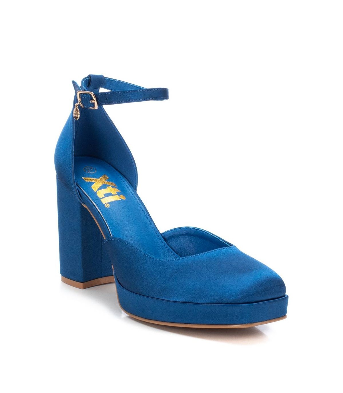 Zapato de tacón de mujer, de la marca Xti. Fabricado en tejido de raso, este espectacular diseño de horma cuadrada te ayudará a poner la guinda de tus looks más en tendencia. Cierre con hebilla metálica con detalle de moneda colgante. Tacón ancho de 9 cm con plataforma delantera y suela de goma antideslizante. Este modelo ha obtenido el certificado vegano por la organización mundial PETA (Organización de los derechos de los animales).