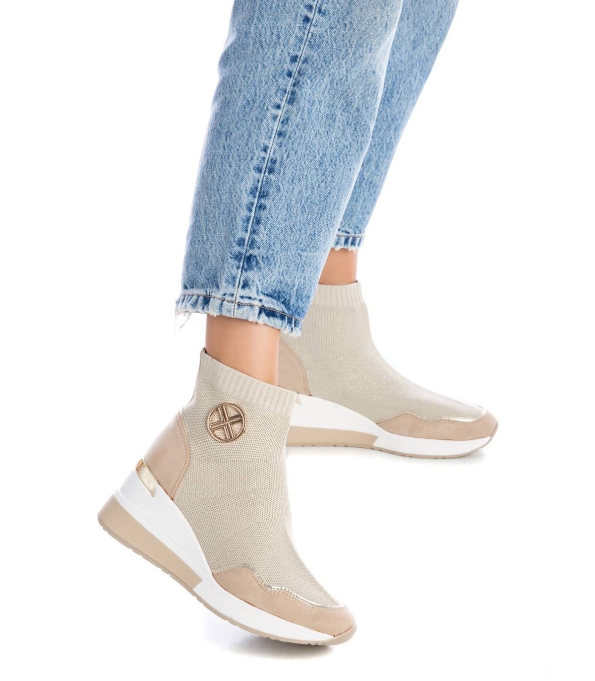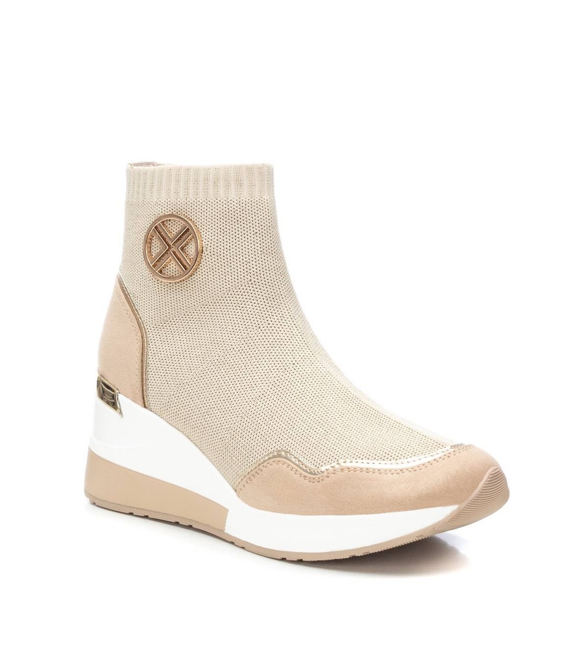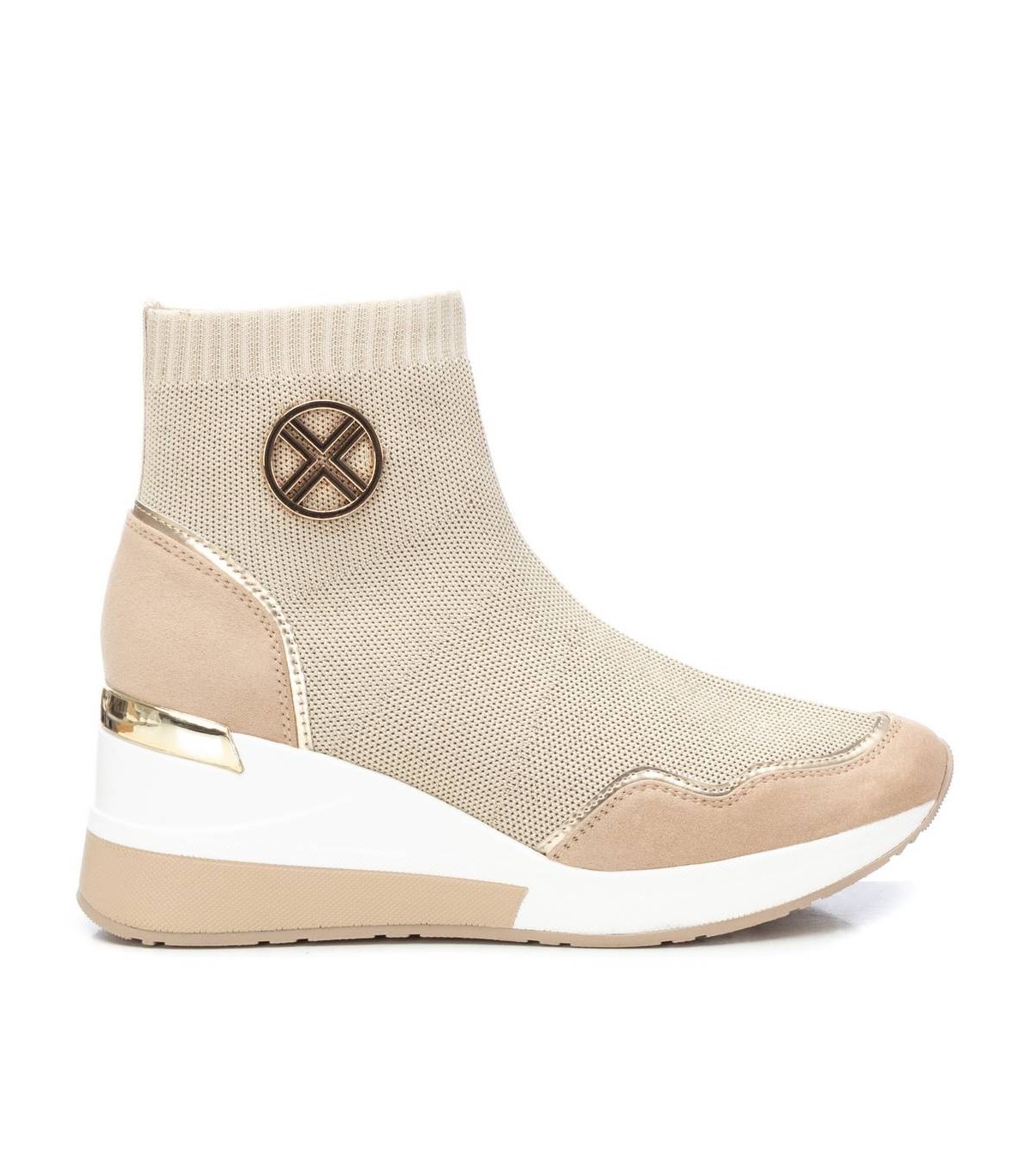 Botín deportivo de mujer, de la marca Xti. Fabricado en tejido elástico tipo calcetin. Cuña de 7 cm con suela antideslizante. Un modelo ideal para deslumbrar con tus looks. Este modelo ha obtenido el certificado vegano por la organización mundial PETA (Organización de los derechos de los animales).