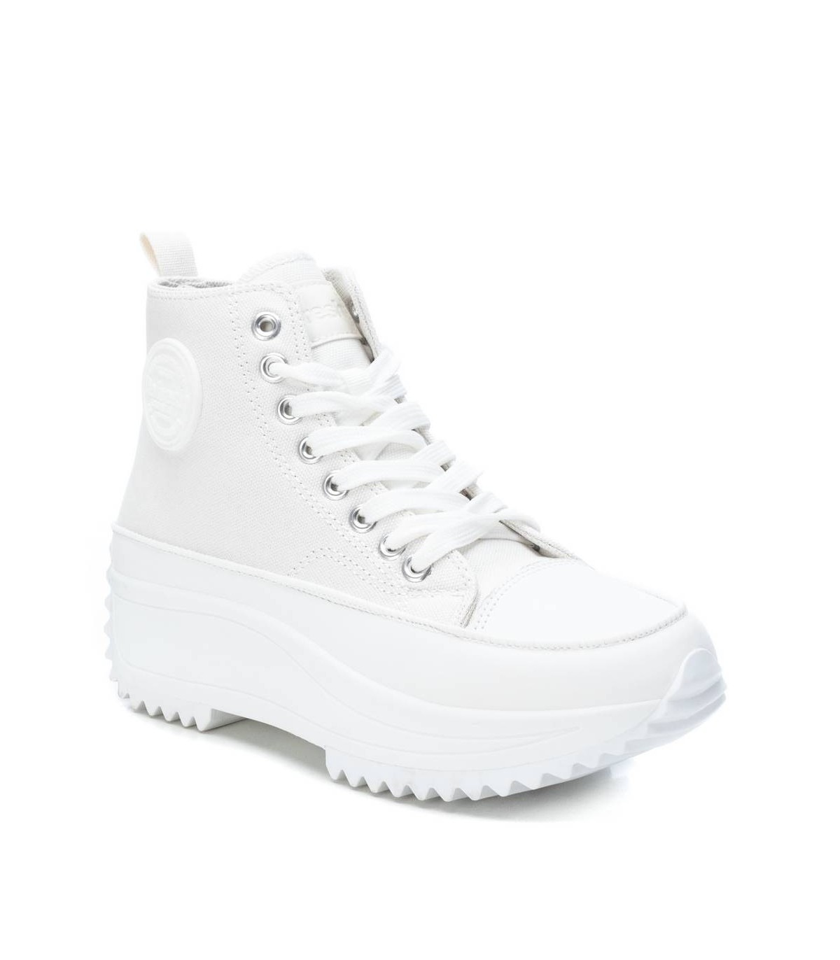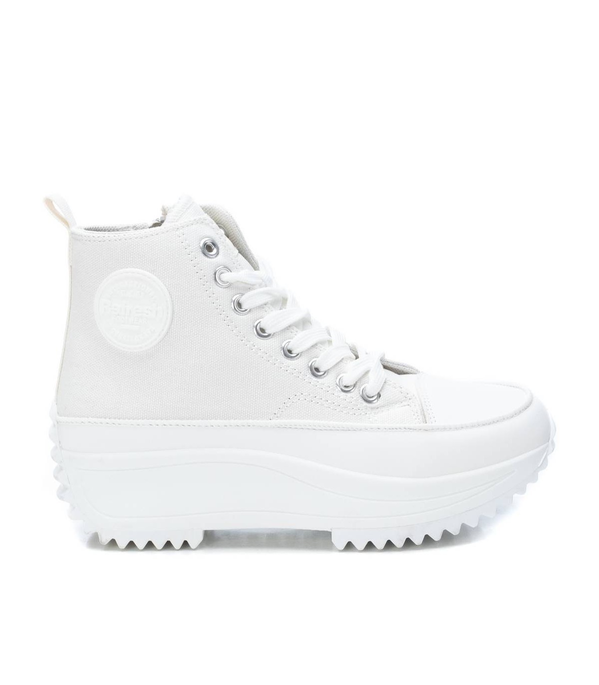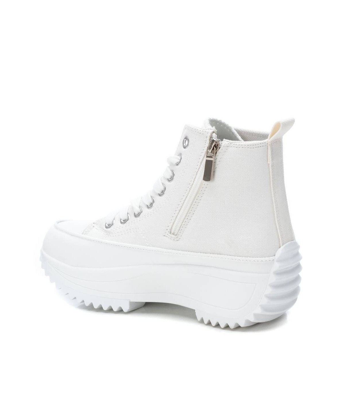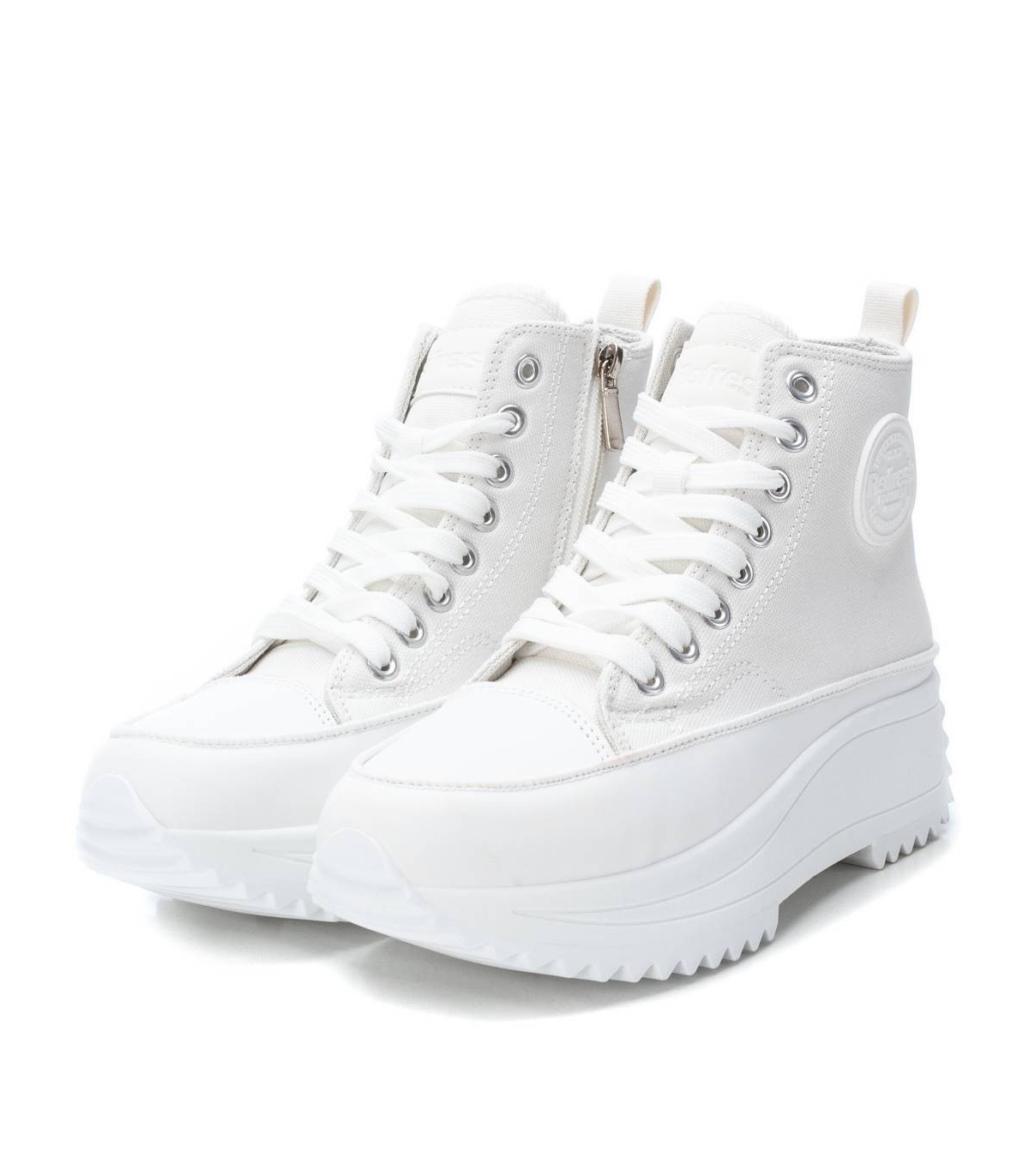 Zapatilla abotinada de mujer de la marca Refresh. Fabricada en lona, ideal para esta temporada. Cierre mediante cremallera lateral y cordones para un mayor ajuste. Tirador trasero para facilitar la puesta. Suela volumen de 5 cm con diseño dentado de goma antideslizante. Este modelo ha obtenido el certificado vegano por la organización mundial PETA (Organización de los derechos de los animales).