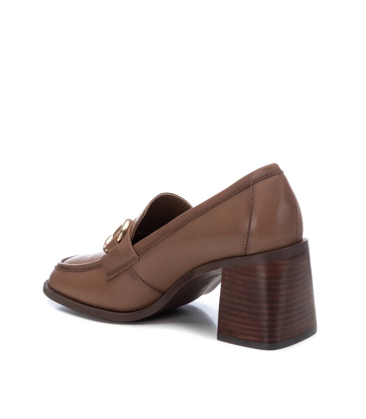 Mocasín de mujer, de la marca Carmela. Fabricado en piel de alta calidad. Detalle metálico en el frente. Tacón ancho de 7 cm y suela antideslizante.