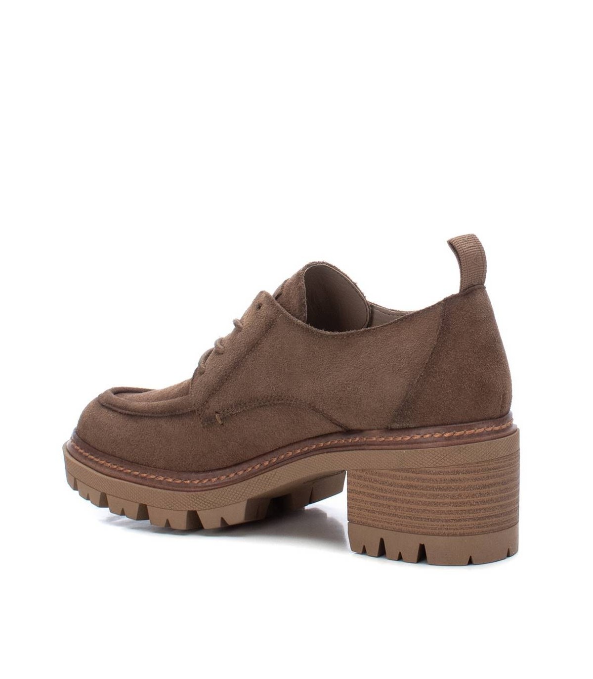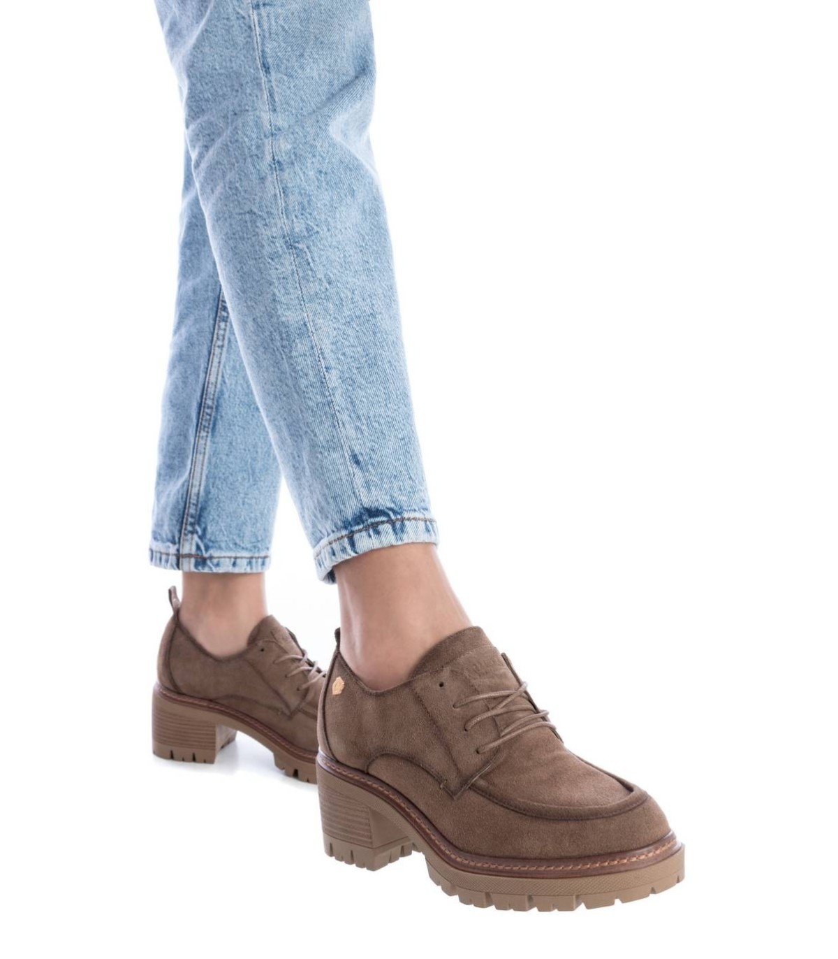 Zapato de mujer, de la marca Carmela. Fabricado en serraje de alta calidad. Cierre mediante cordones ajustables. Tirador trasero para facilitar la puesta. Tacón ancho de 7 cm y suelta track de goma antideslizante. Este modelo se convertirá en un imprescindible de la temporada.