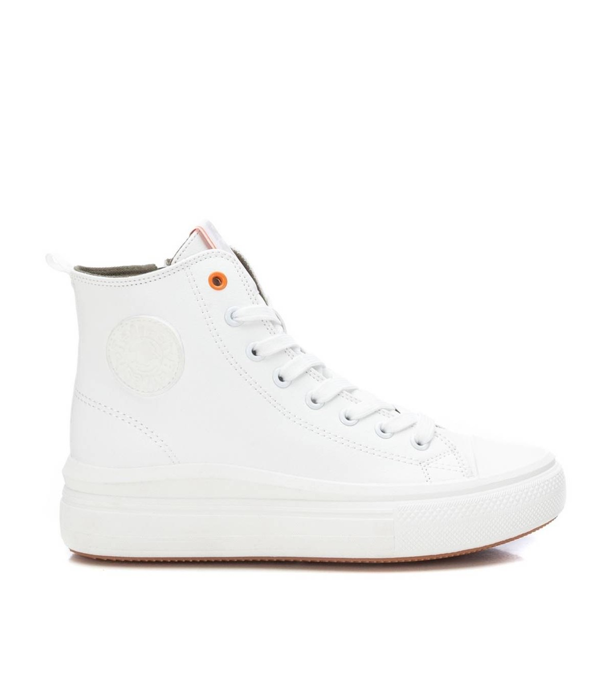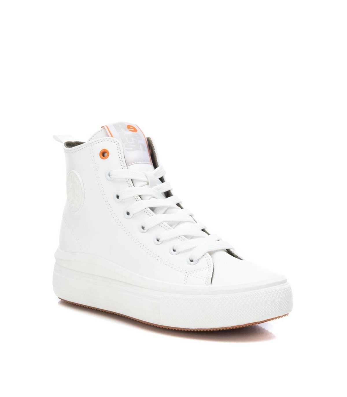 Botín deportivo de mujer, de la marca Refresh. Fabricado en material que imita la piel. Cierre mediante cremallera lateral y cordones ajustables. Tirador trasero para facilitar la puesta. Forro en contraste. Doble piso con suela de goma antideslizante. Este modelo ha obtenido el certificado vegano por la organización mundial PETA (Organización de los derechos de los animales).