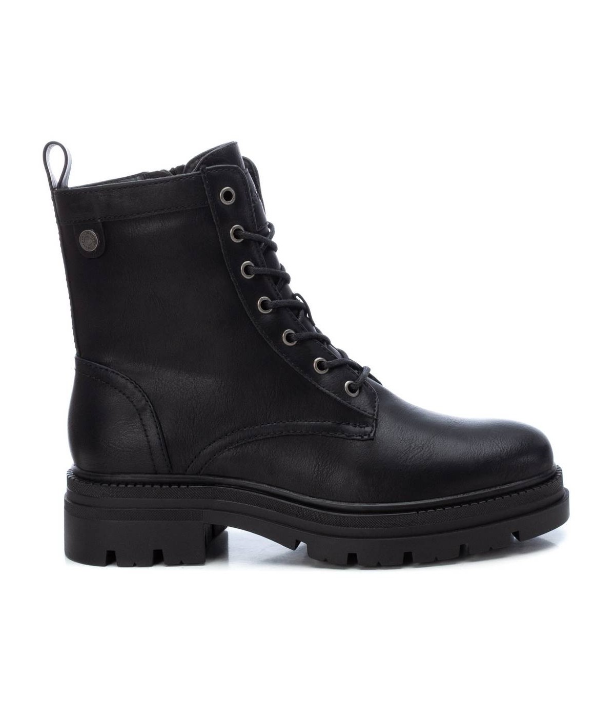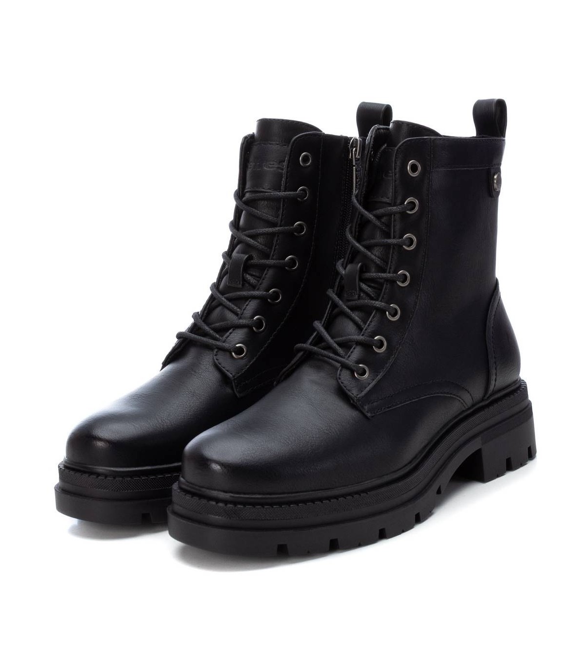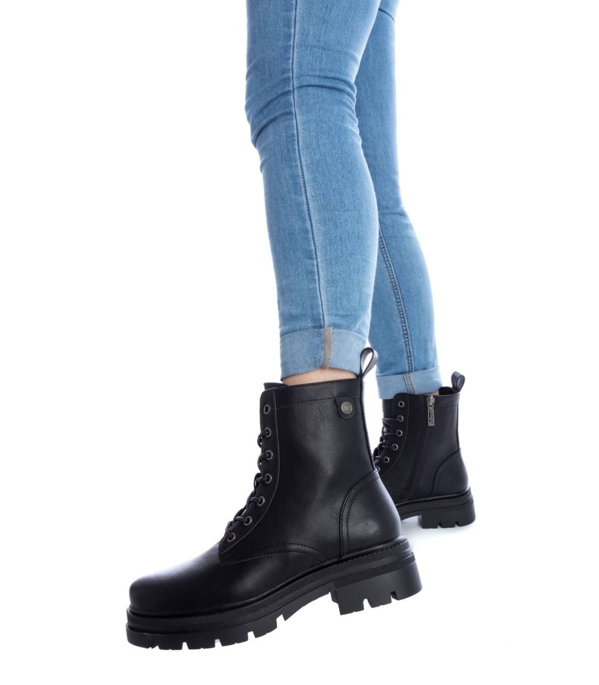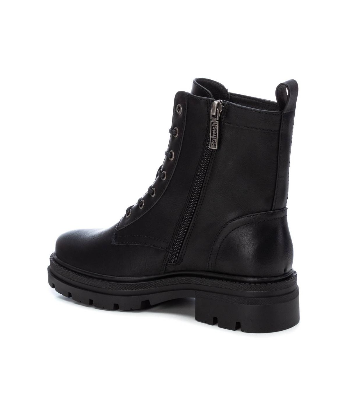 Botín militar de mujer, de la marca Refresh. Fabricado en material que imita la piel. Cierre mediante cremallera lateral y cordones para un buen ajuste. Tirador trasero para facilitar la puesta. Suela track de goma antideslizante. Arrasa esta temporada con este modelo en tendencia. Este modelo ha obtenido el certificado vegano por la organización mundial PETA (Organización de los derechos de los animales).