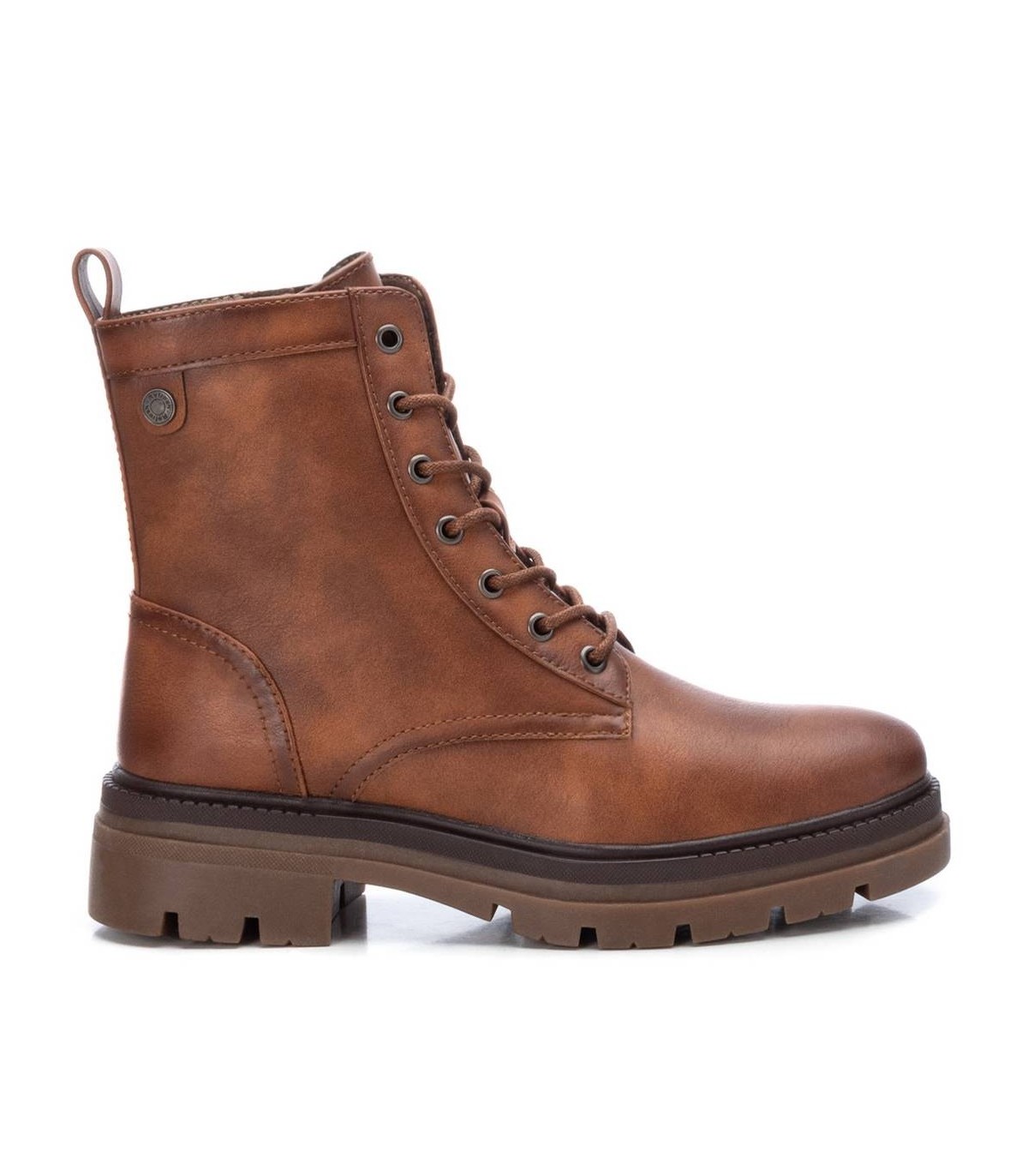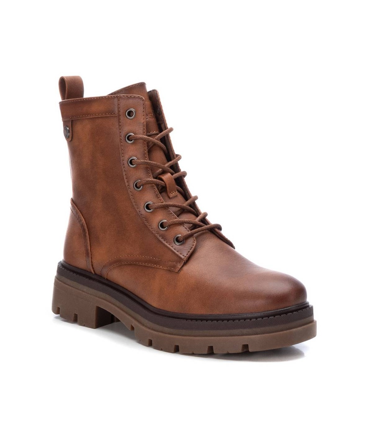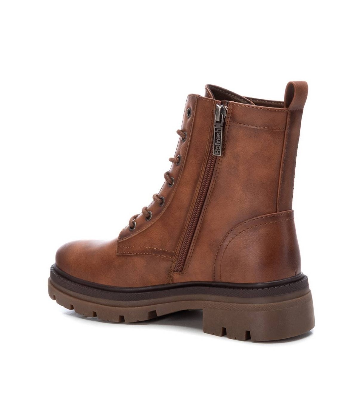 Botín militar de mujer, de la marca Refresh. Fabricado en material que imita la piel. Cierre mediante cremallera lateral y cordones para un buen ajuste. Tirador trasero para facilitar la puesta. Suela track de goma antideslizante. Arrasa esta temporada con este modelo en tendencia. Este modelo ha obtenido el certificado vegano por la organización mundial PETA (Organización de los derechos de los animales).
