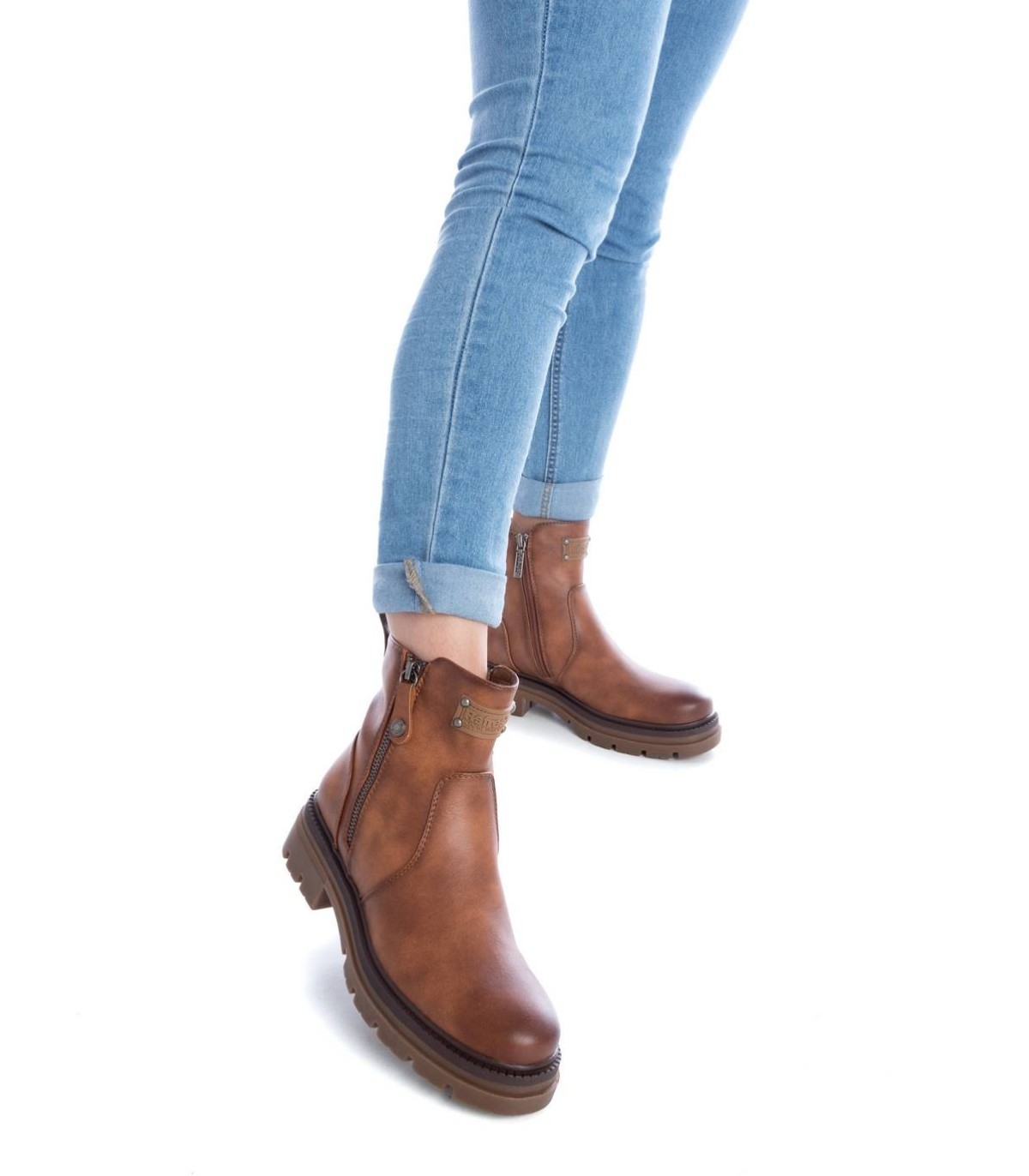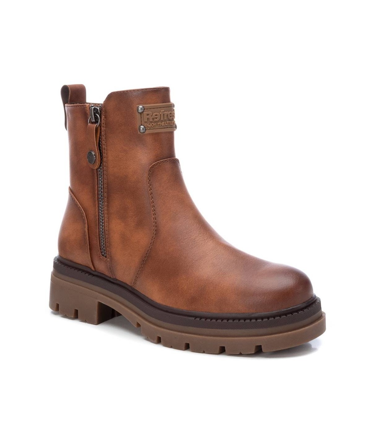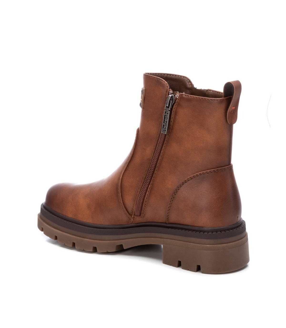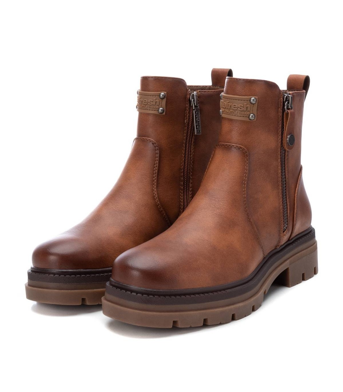 Botín de mujer, de la marca Refresh. Fabricado en material que imita la piel. Cierre mediante cremallera lateral. Tirador trasero para facilitar la puesta. Cremallera lateral decorativa. Piso grueso con suelta dentada de goma antideslizante. Este modelo ha obtenido el certificado vegano por la organización mundial PETA (Organización de los derechos de los animales).