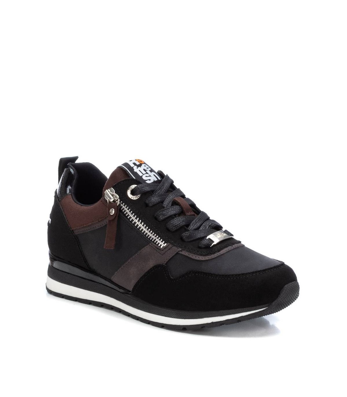 Zapatilla de mujer, de la marca Refresh. Fabricada en antelina. Cierre mediante cremallera lateral y cordones para un buen ajuste. Tirador trasero para facilitar la puesta. Suela antideslizante. Este modelo ha obtenido el certificado vegano por la organización mundial PETA (Organización de los derechos de los animales).