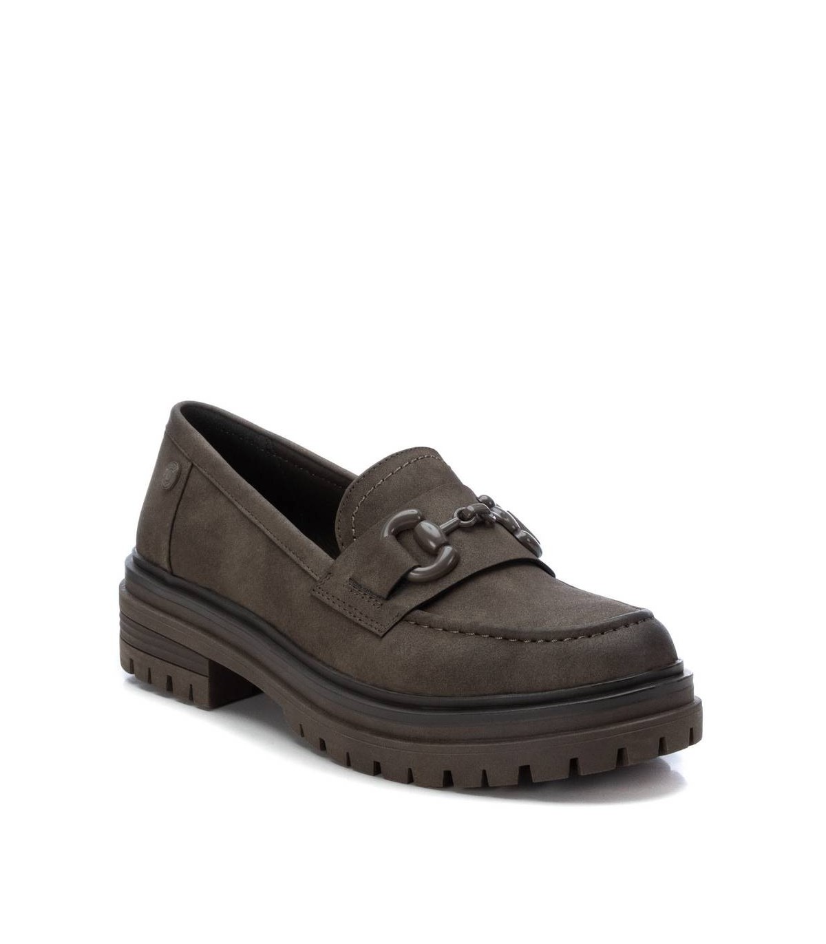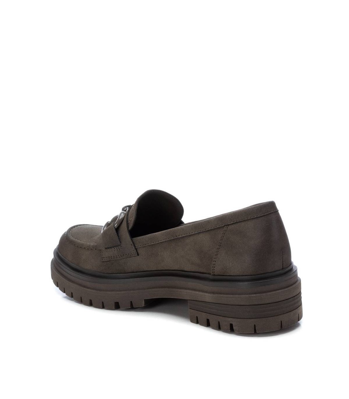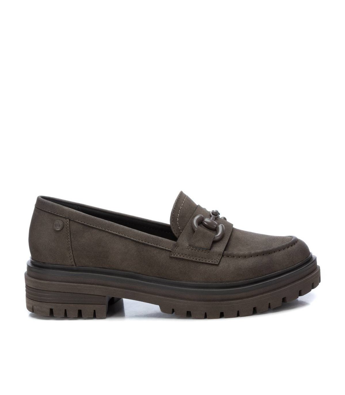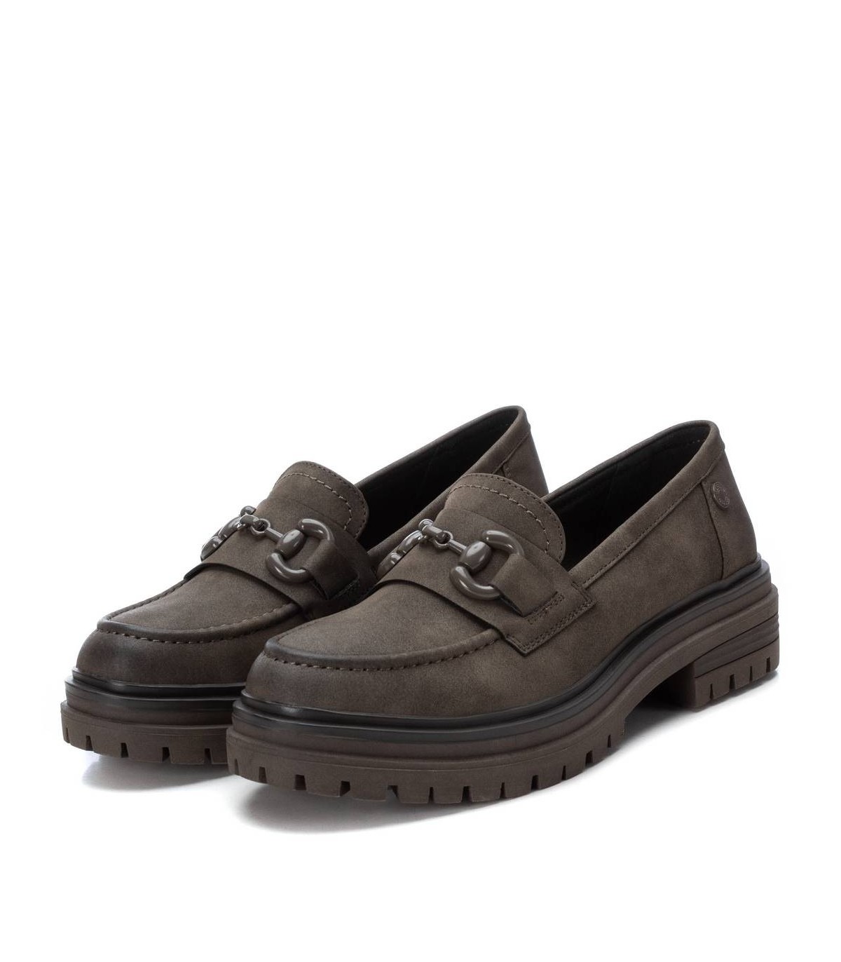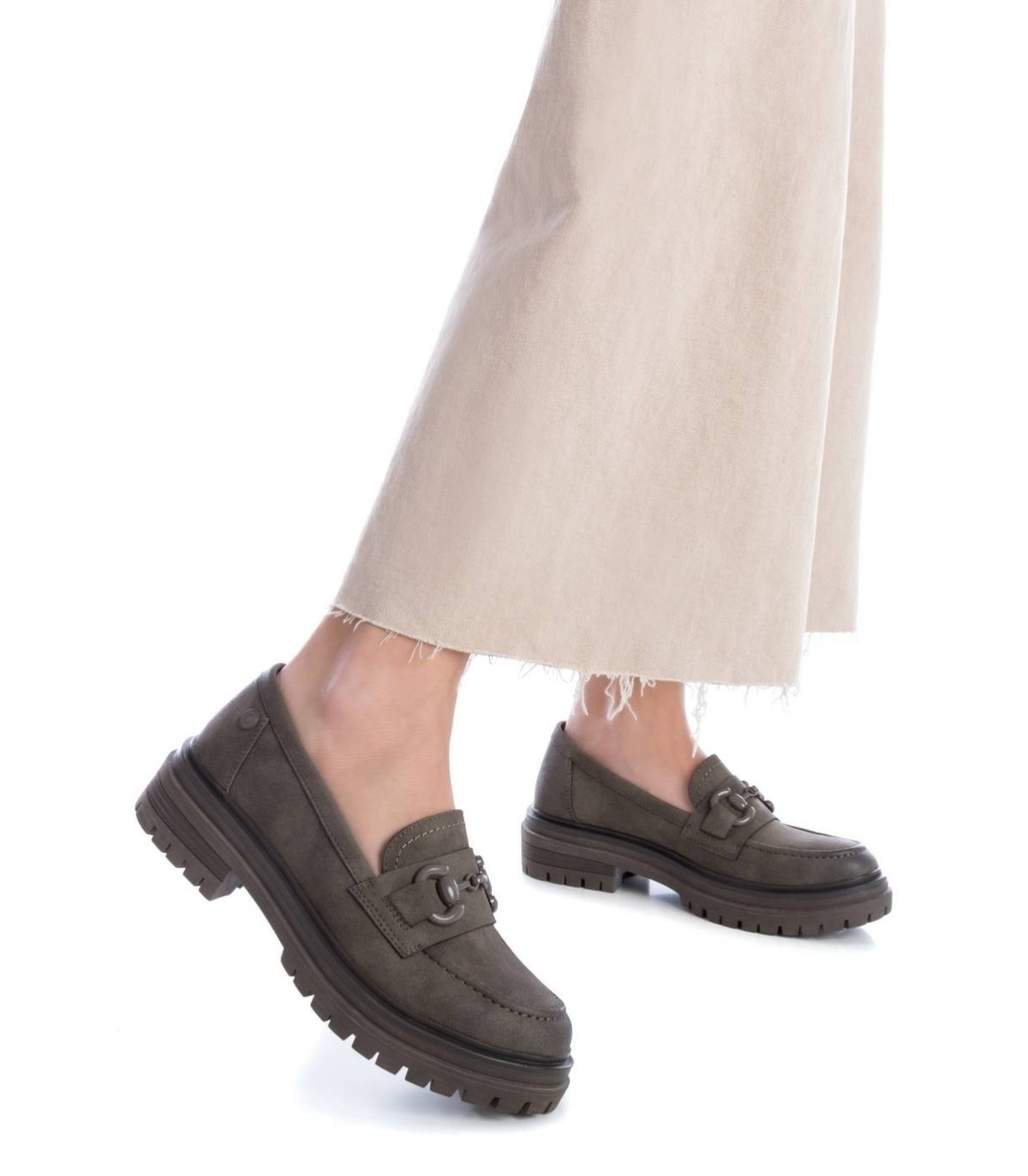 Mocasín de mujer, de la marca Refresh. Fabricado en material que imita la piel. Detalle metálico en el frente. Suela volumen de goma antideslizante. Este modelo ha obtenido el certificado vegano por la organización mundial PETA (Organización de los derechos de los animales).