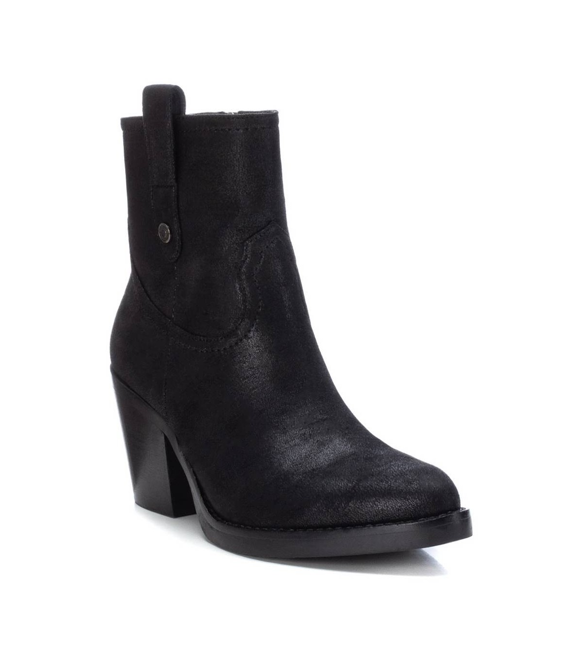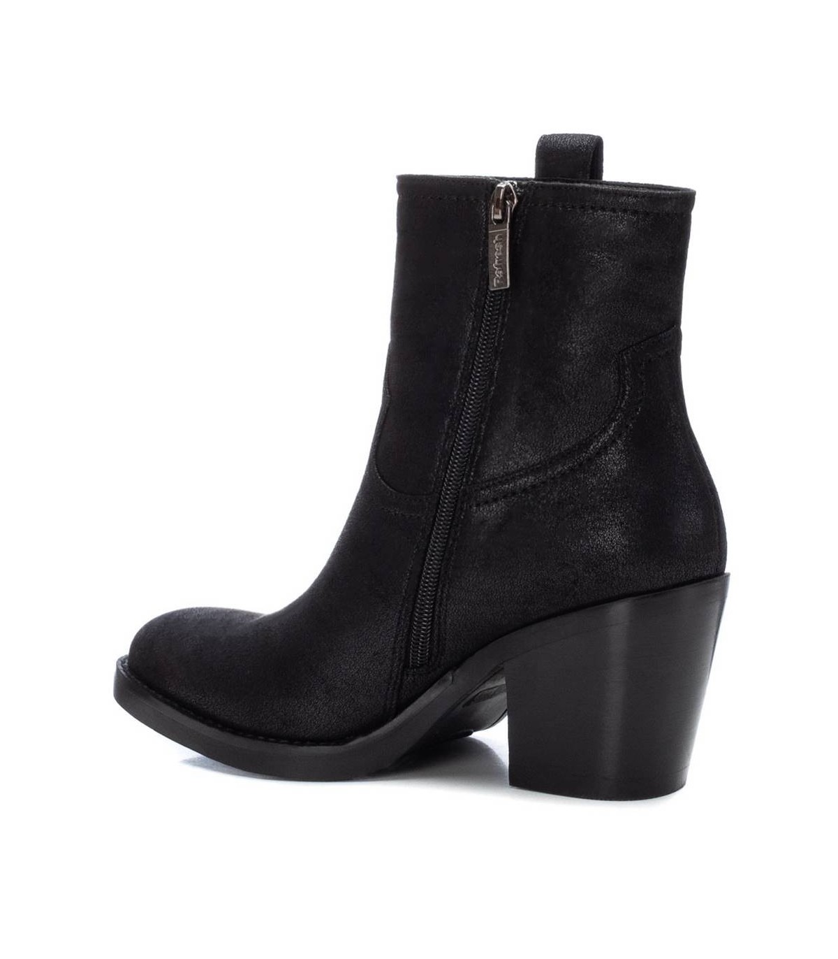 Botín cowboy de mujer, de la marca Refresh. Fabricado en textil. Cierre mediante cremallera lateral. Tacón ancho de 8 cm. Suela de goma antideslizante. Un modelo en tendencia que combinarás con todo esta temparada. Este modelo ha obtenido el certificado vegano por la organización mundial PETA (Organización de los derechos de los animales).