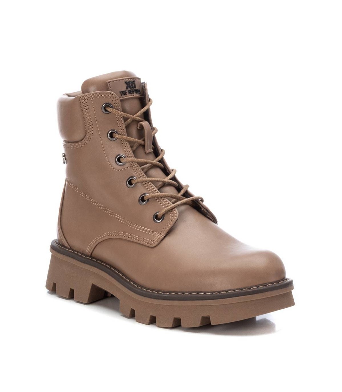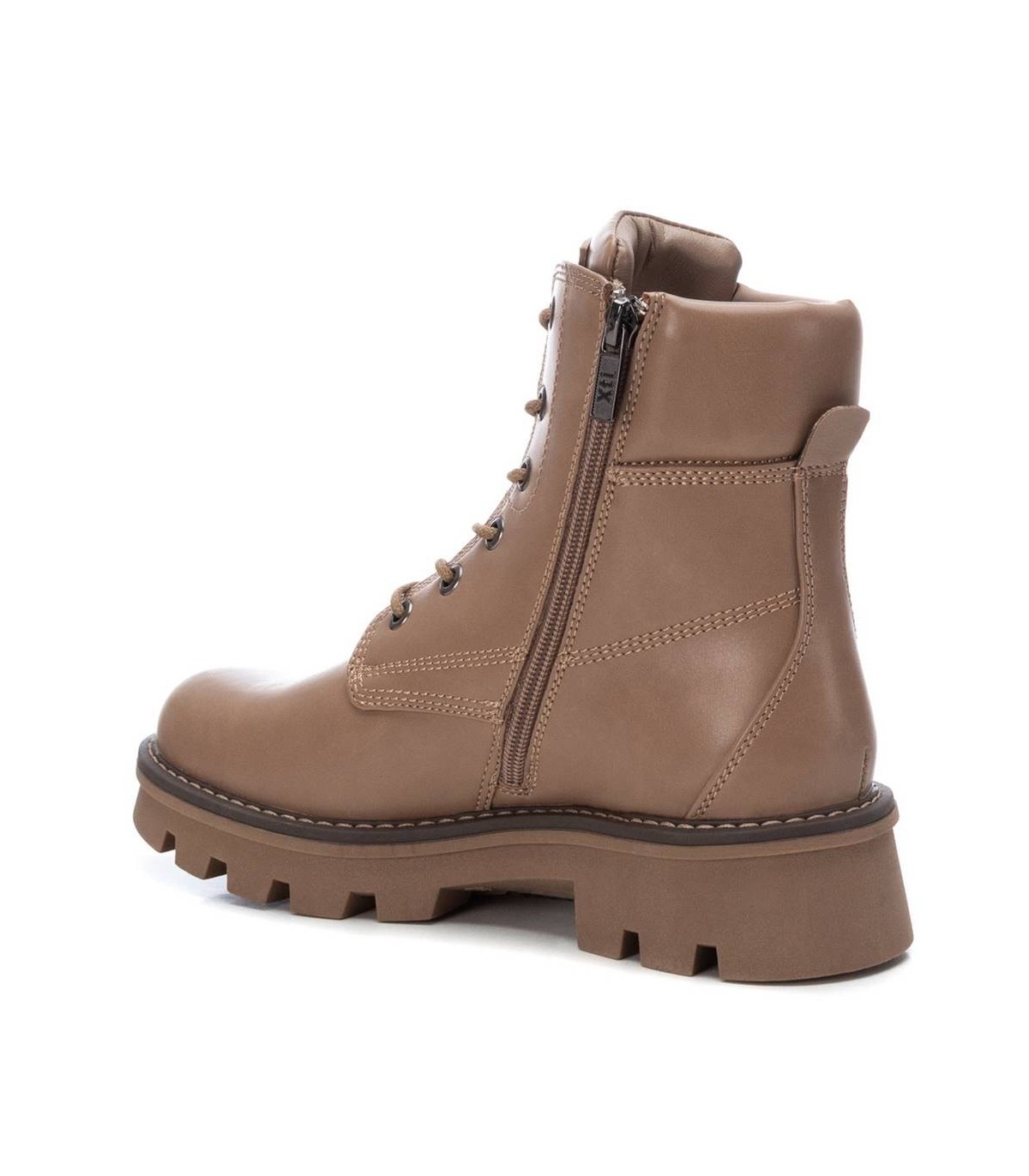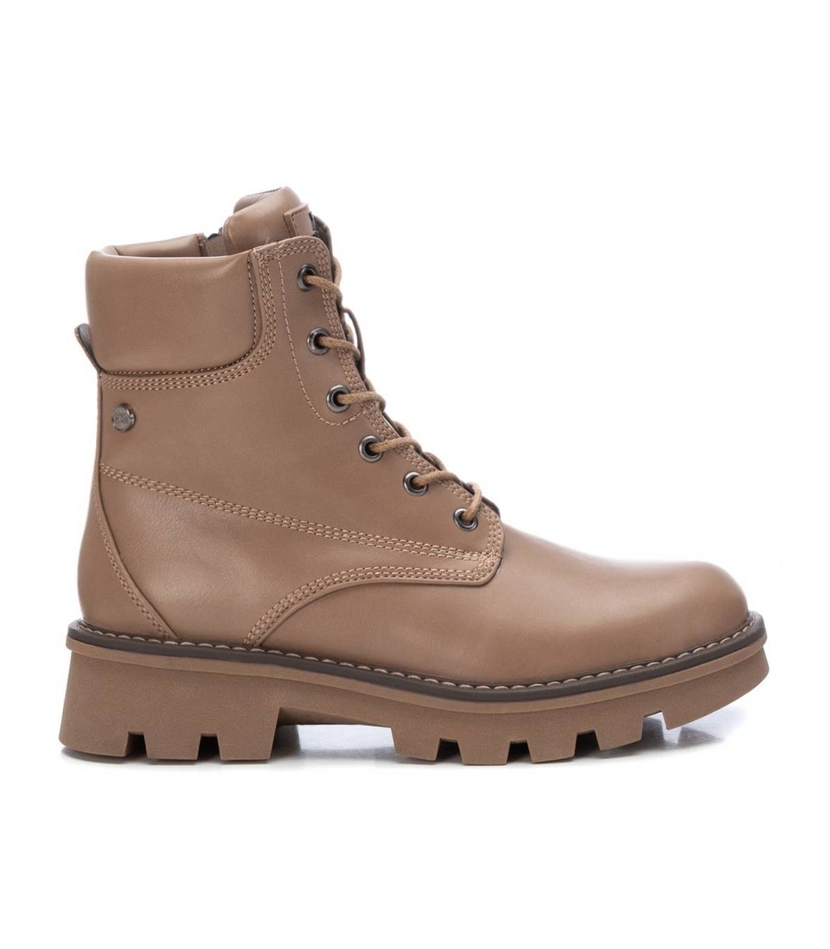 Botin de mujer, de la marca Xti. Fabricado en material que imita la piel. Cierre mediante cremallera lateral y cordones para un buen ajuste. Suela dentada antideslizante. Este modelo ha obtenido el certificado vegano por la organización mundial PETA (Organización de los derechos de los animales).
