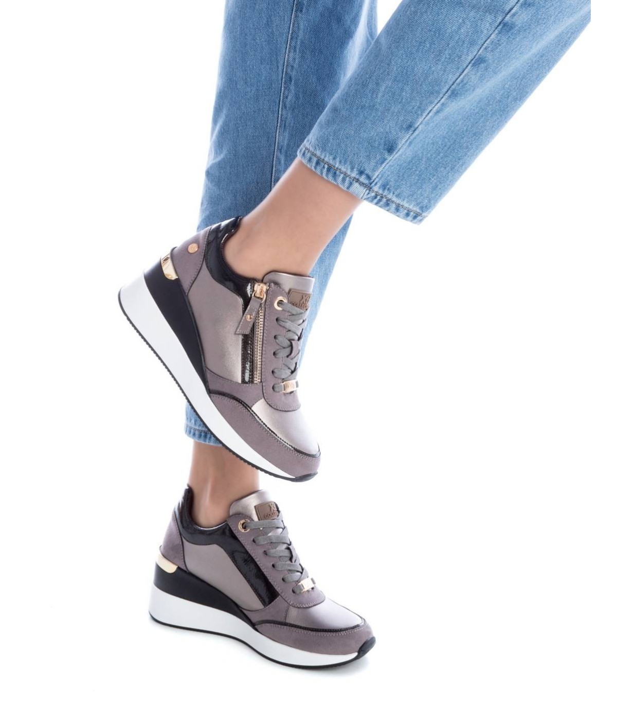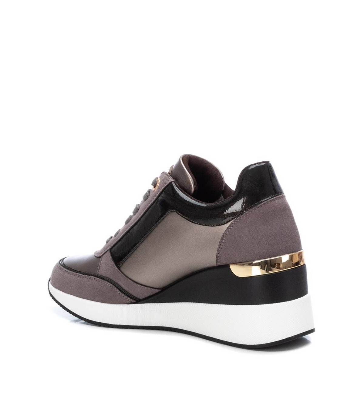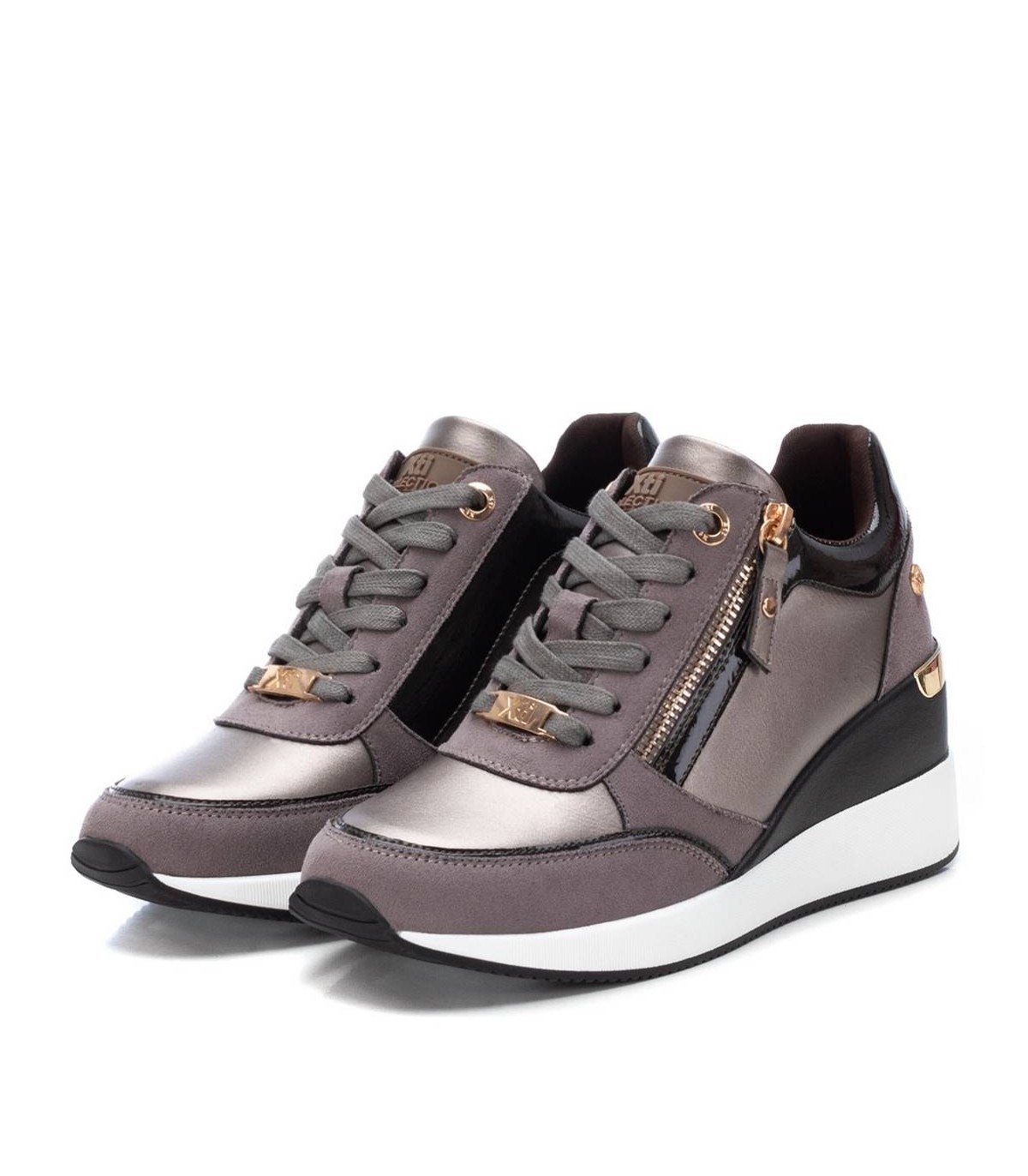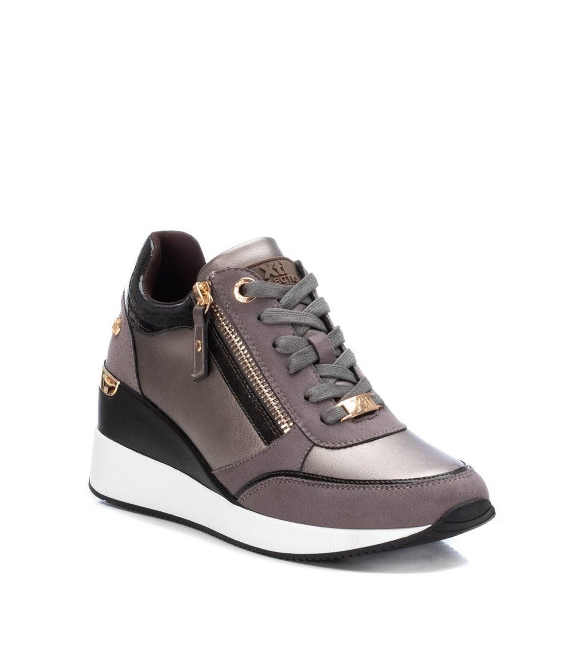 Zapatilla de mujer, de la marca Xti. Fabricada en material que imita la piel combinado con antelina. Cremallera lateral y cordones para un buen ajuste. Cómoda cuña de 6 cm con suela antideslizante. Este modelo ha obtenido el certificado vegano por la organización mundial PETA (Organización de los derechos de los animales).