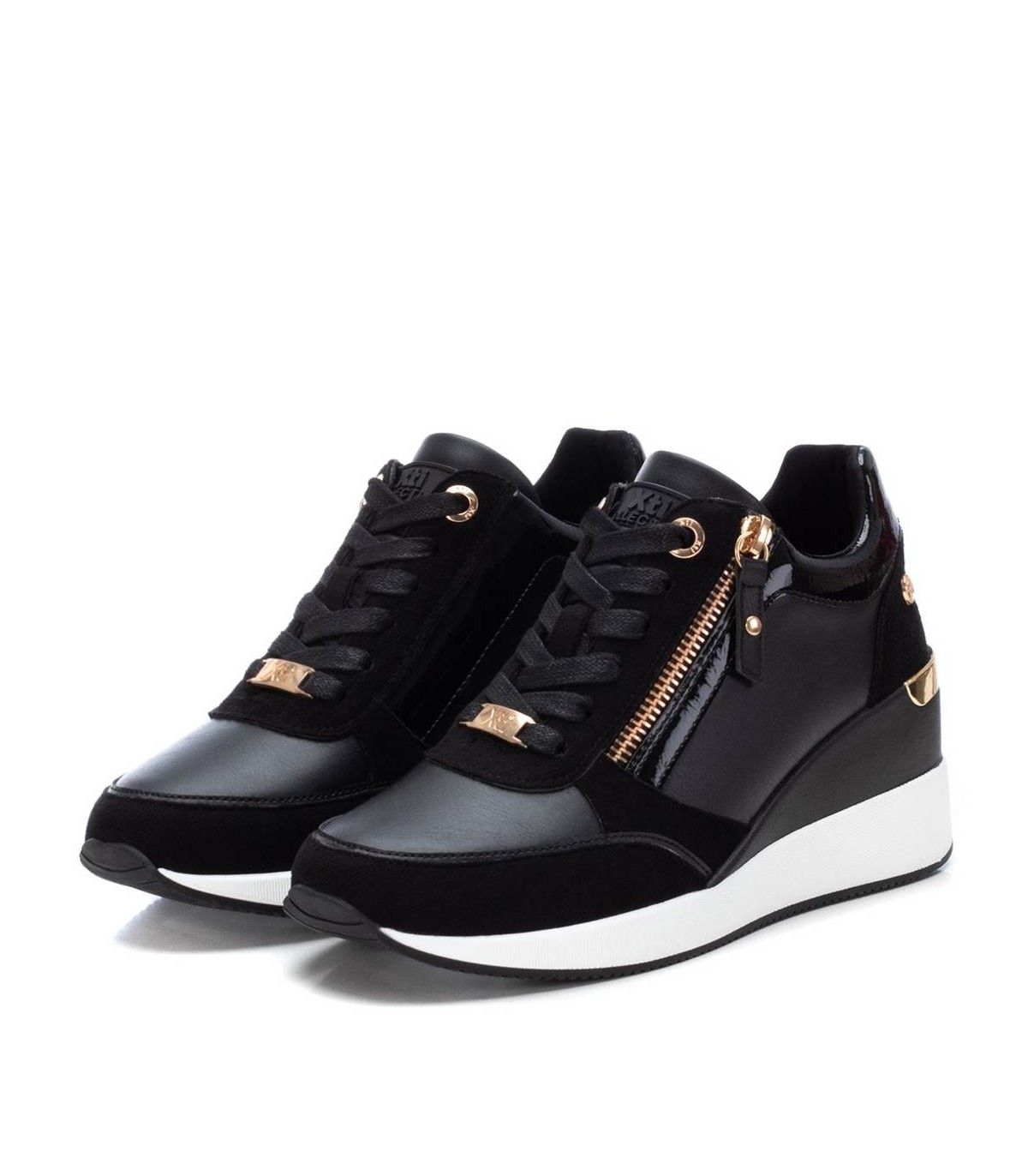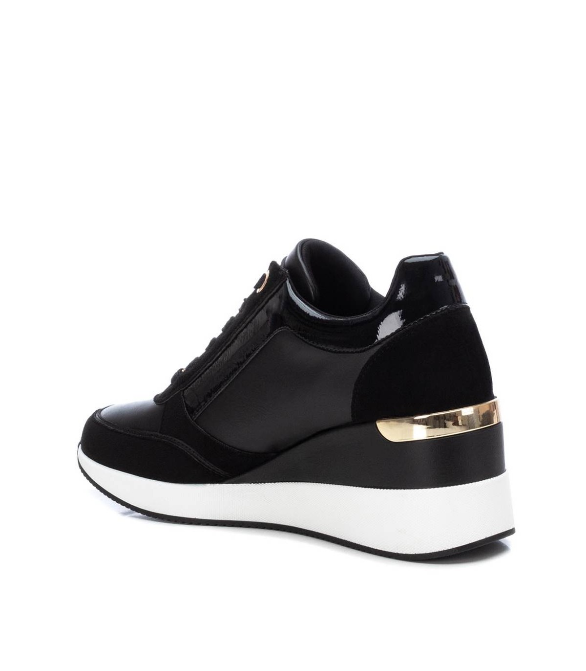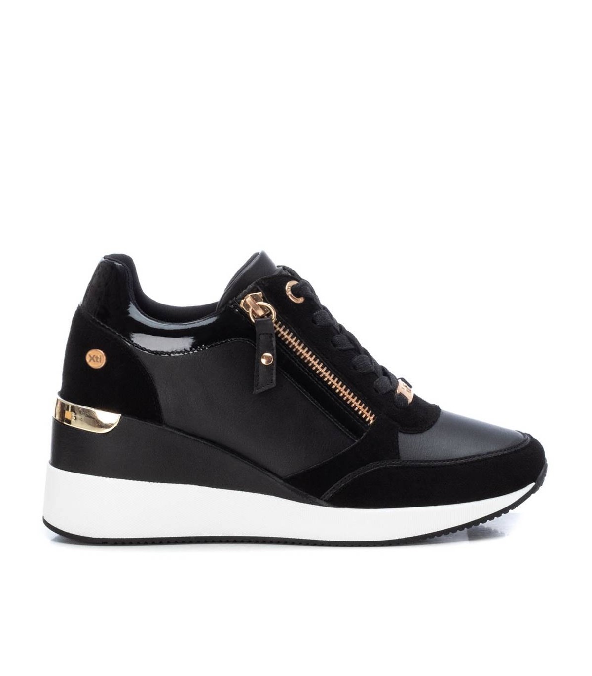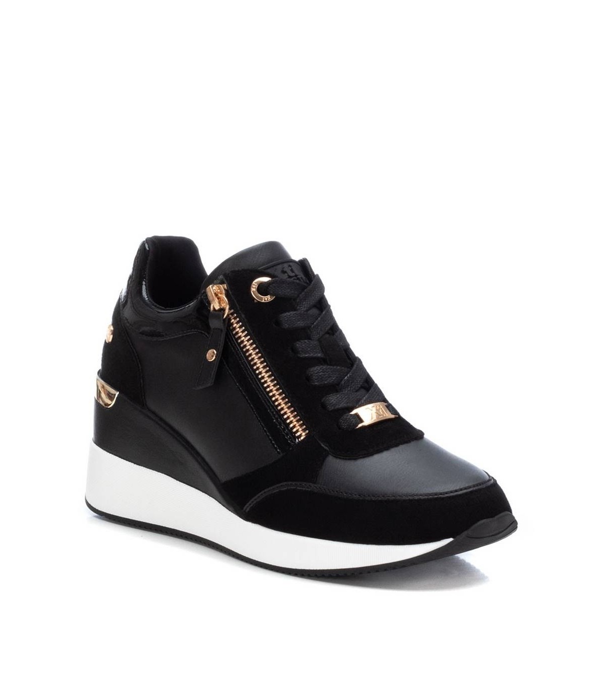 Zapatilla de mujer, de la marca Xti. Fabricada en material que imita la piel combinado con antelina. Cremallera lateral y cordones para un buen ajuste. Cómoda cuña de 6 cm con suela antideslizante. Este modelo ha obtenido el certificado vegano por la organización mundial PETA (Organización de los derechos de los animales).