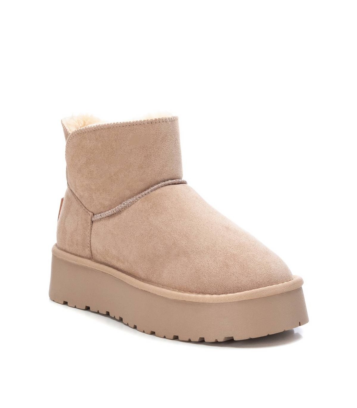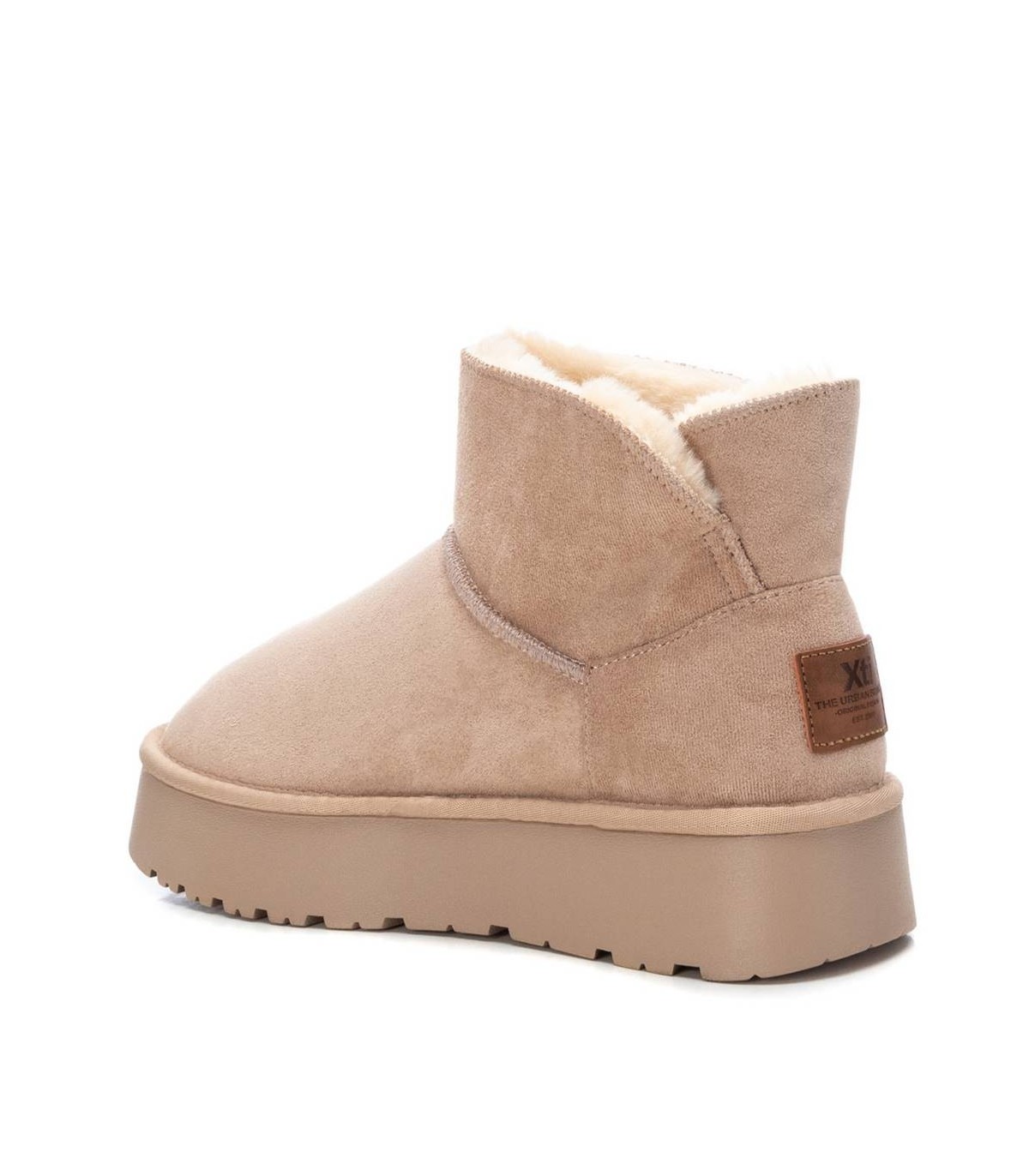 Botín de mujer, de la marca Xti. Fabricado en suave antelina con forro de pelito ideal para el frío. Lleva este modelo en casa o en la calle. Doble piso con suela antideslizante. Este modelo ha obtenido el certificado vegano por la organización mundial PETA (Organización de los derechos de los animales).