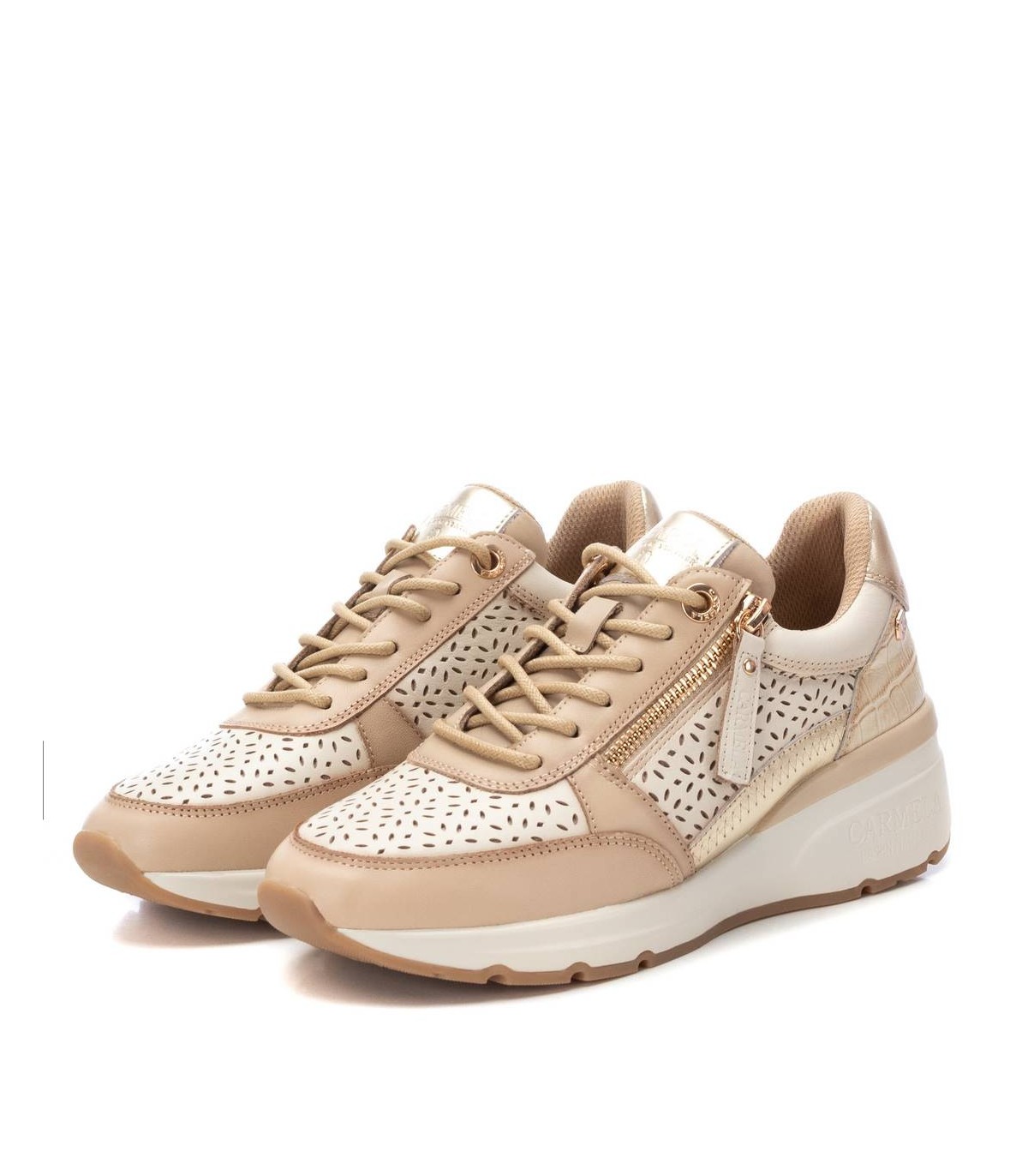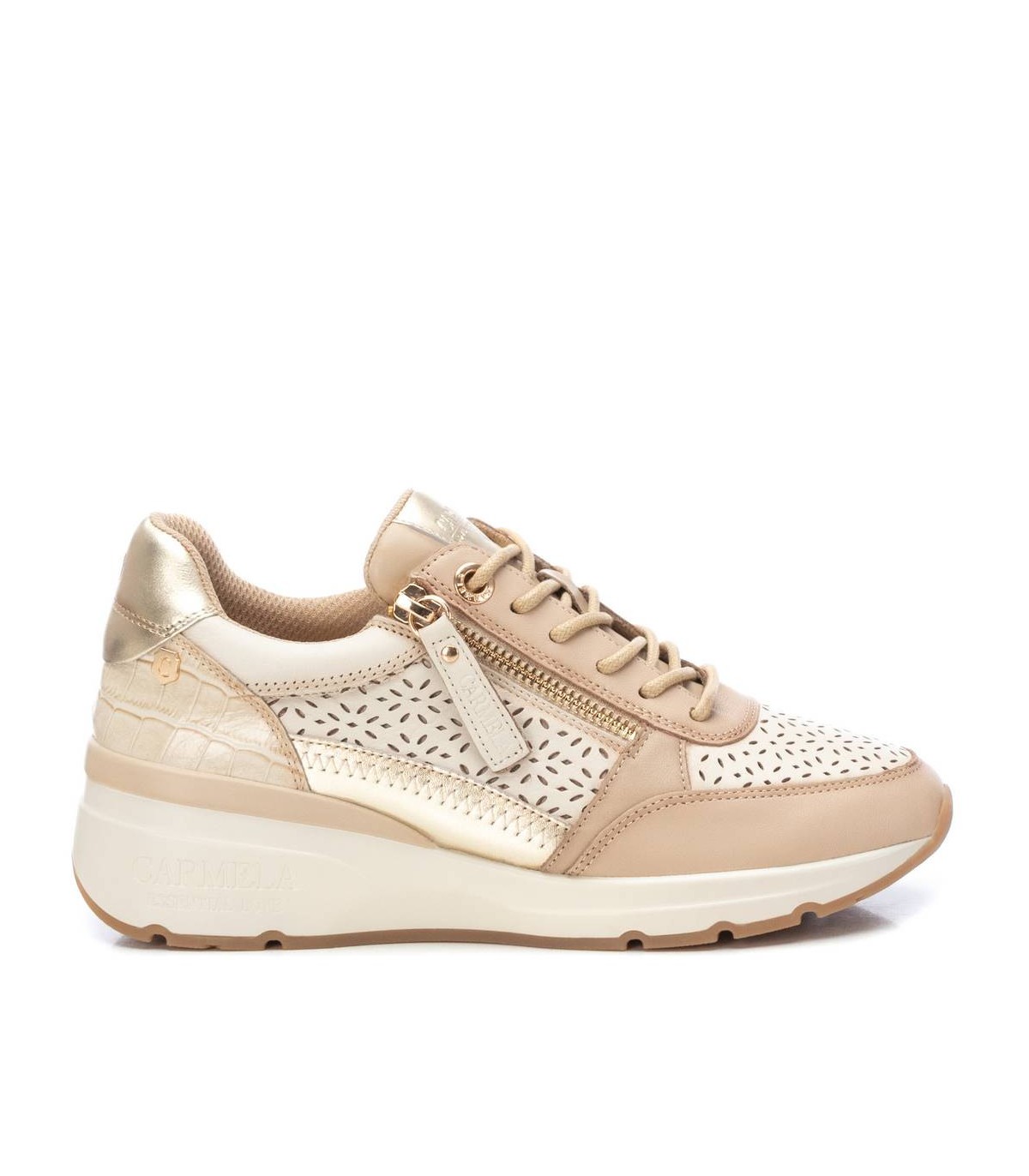 Zapatilla de mujer, de la marca Carmela. Fabricada en piel de alta calidad. Diseño calado ideal para esta temporada. Cierre mediante cremallera. Suela de goma antideslizante.
