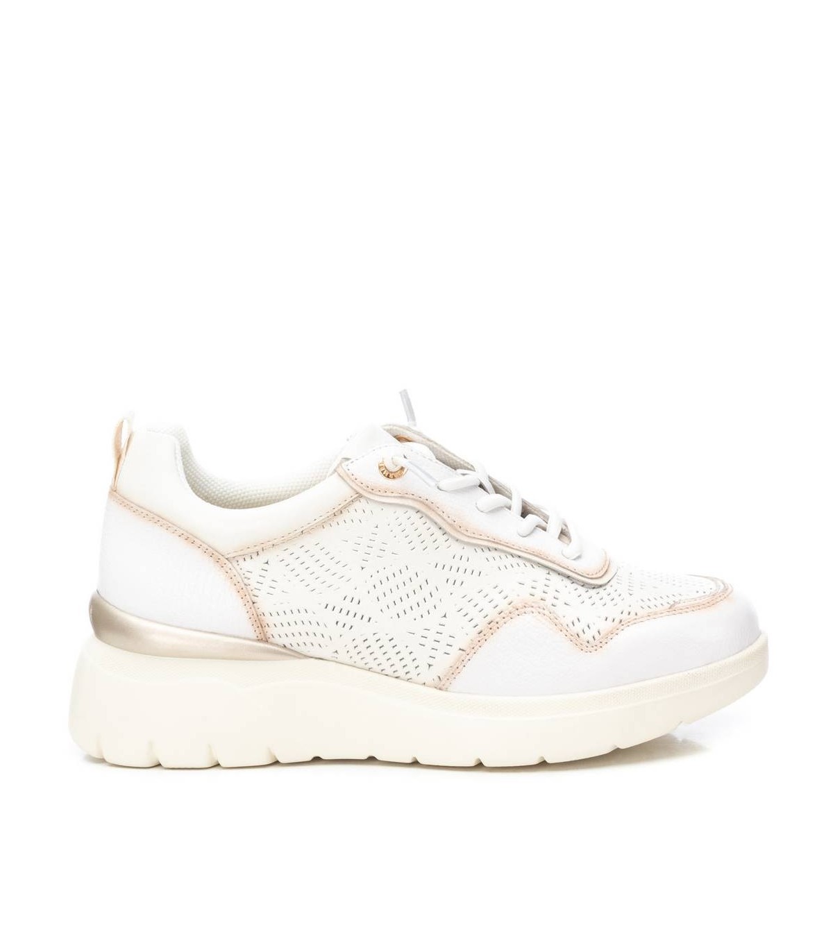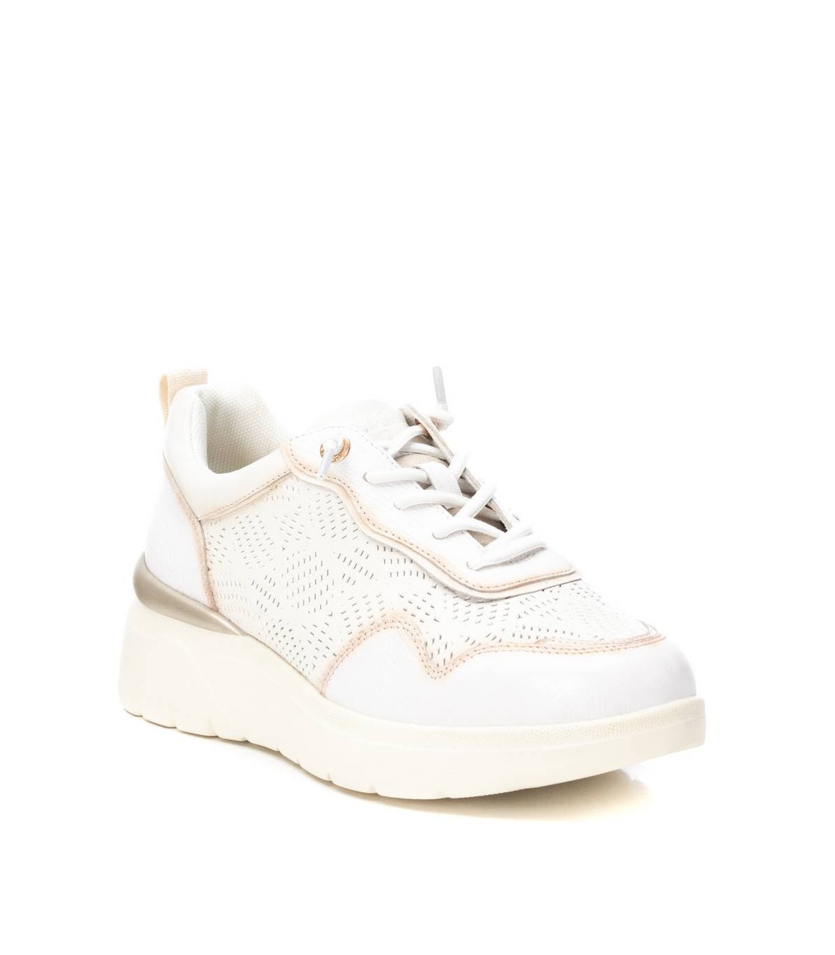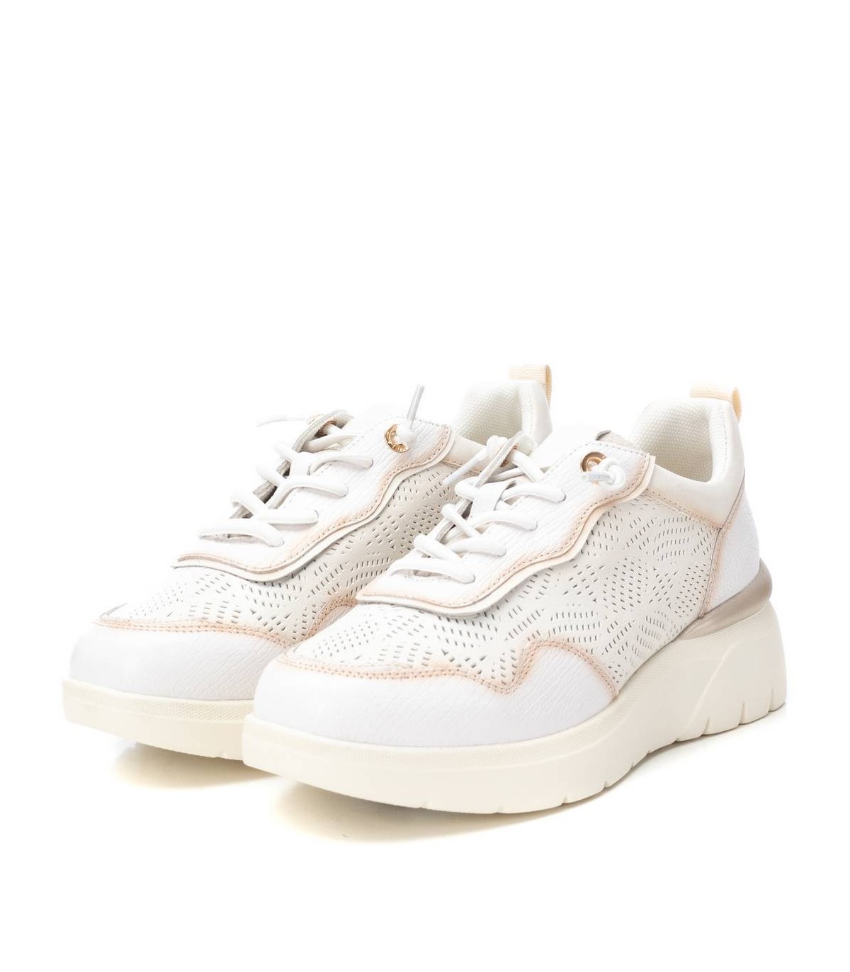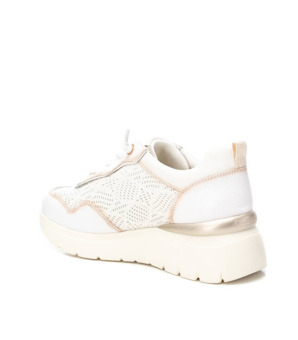 Zapatilla de mujer, de la marca Carmela. Fabricada en piel de alta calidad. Diseño calado ideal para esta temporada. Cierre mediante cordones ajustables. Suela de goma antideslizante.