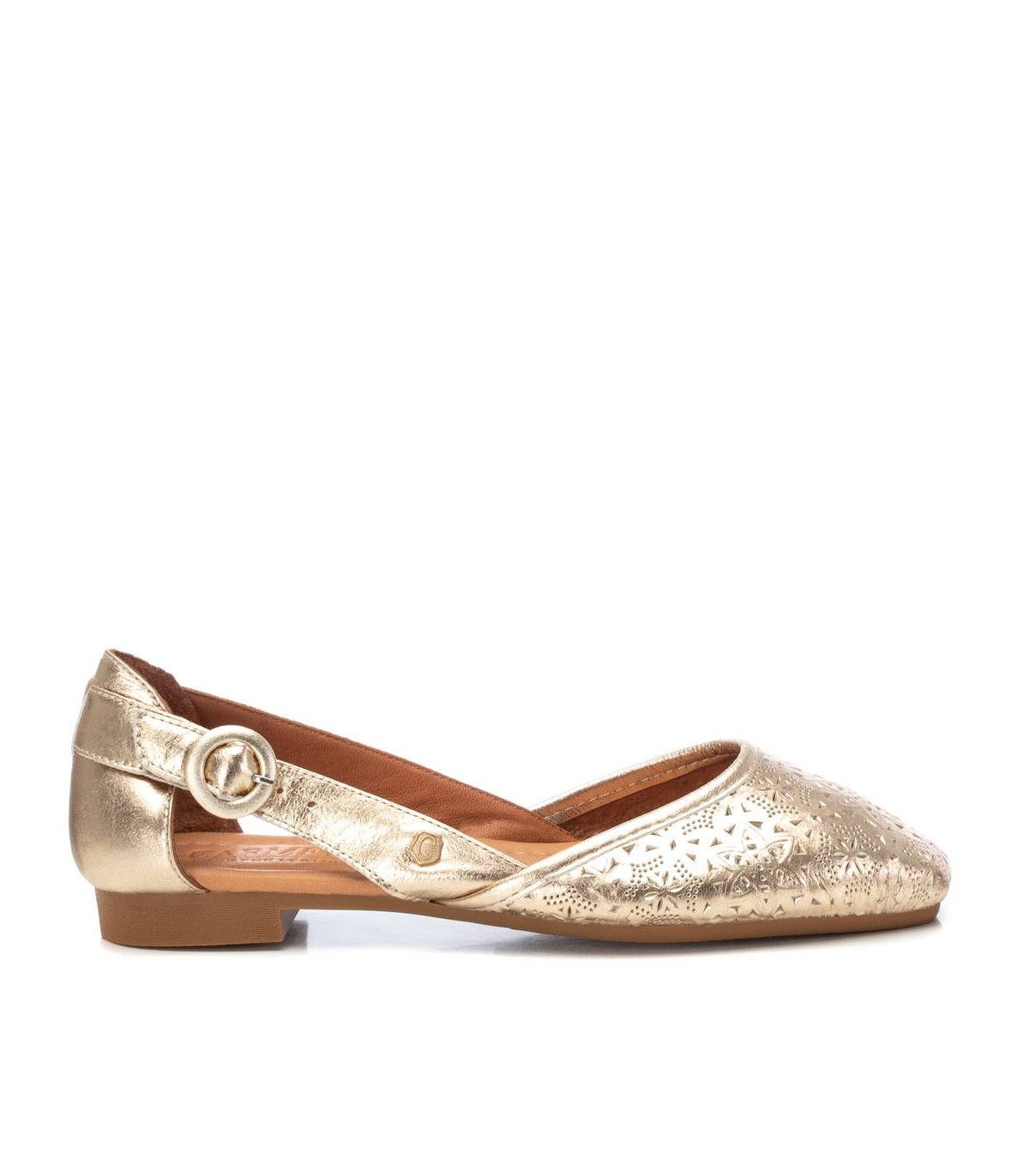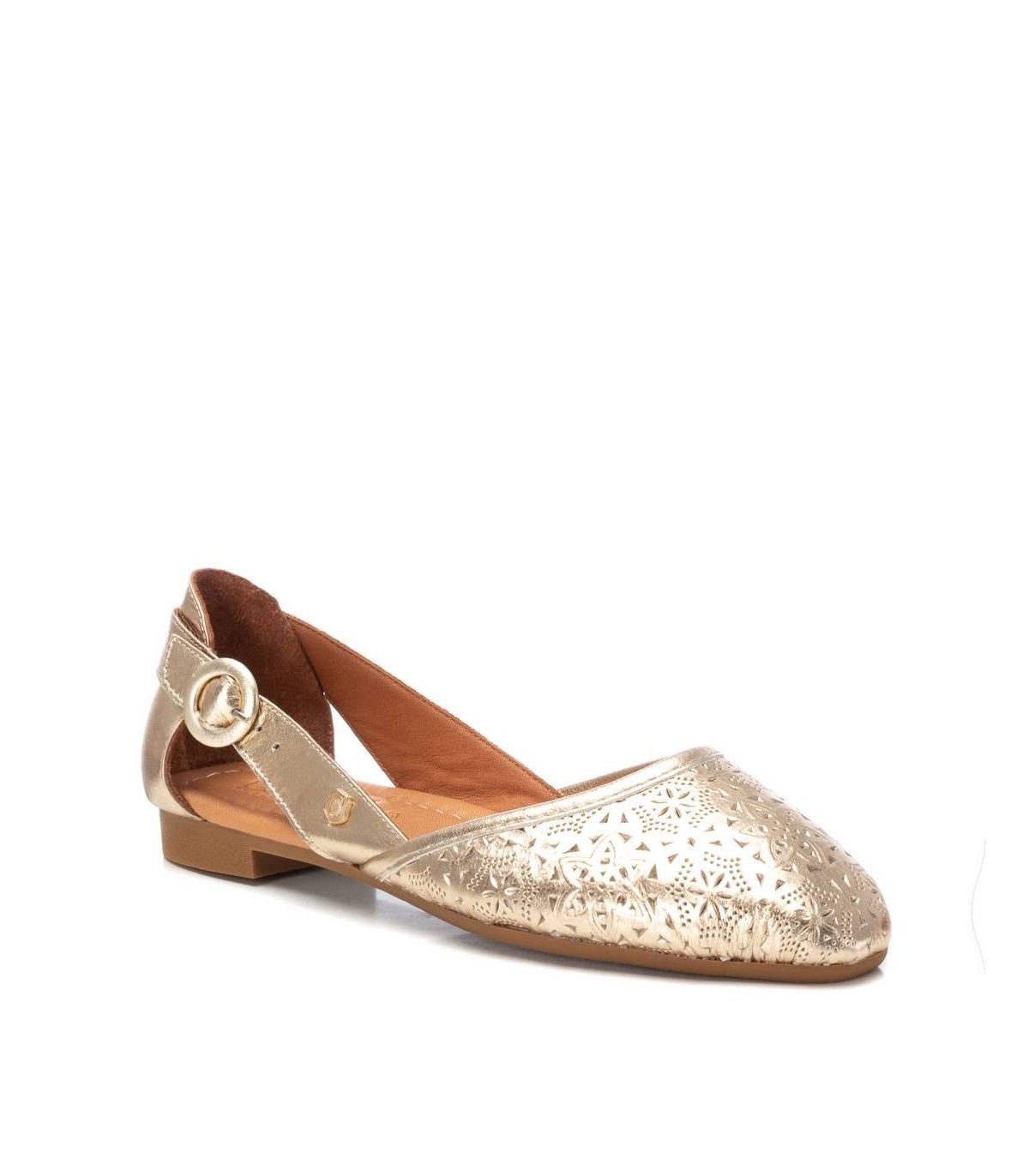Bailarina de mujer de la marca Carmela. Fabricada en piel de alta calidad con picados decorativos. Modelo con correas laterales con hebilla para un buen ajuste. Suela de goma antideslizante.