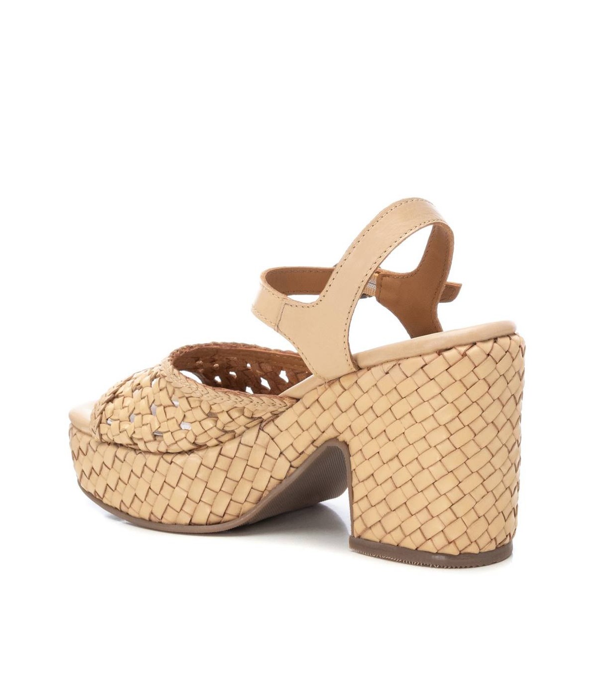 Sandalia de mujer, de la marca Carmela. Fabricada en piel de alta calidad. Modelo de pala con piel entrelazada. Pulsera con hebilla para perfecta sujección al tobillo. Tacón de 10 cm de altura con plataforma para mayor comodidad sin pasar desapercibida. Ideal para tus looks de este verano. Suela antideslizante.