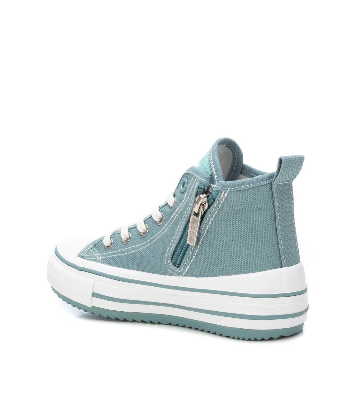 Botín de niña, de la marca Xti kids. Fabricada en resistente lona. Cierre mediante cremallera interior. Tirador trasero para facilitar la puesta. Caña de 7 cm. Suela de goma antideslizante. Este modelo ha obtenido el certificado vegano por la organización mundial PETA (Organización de los derechos de los animales).