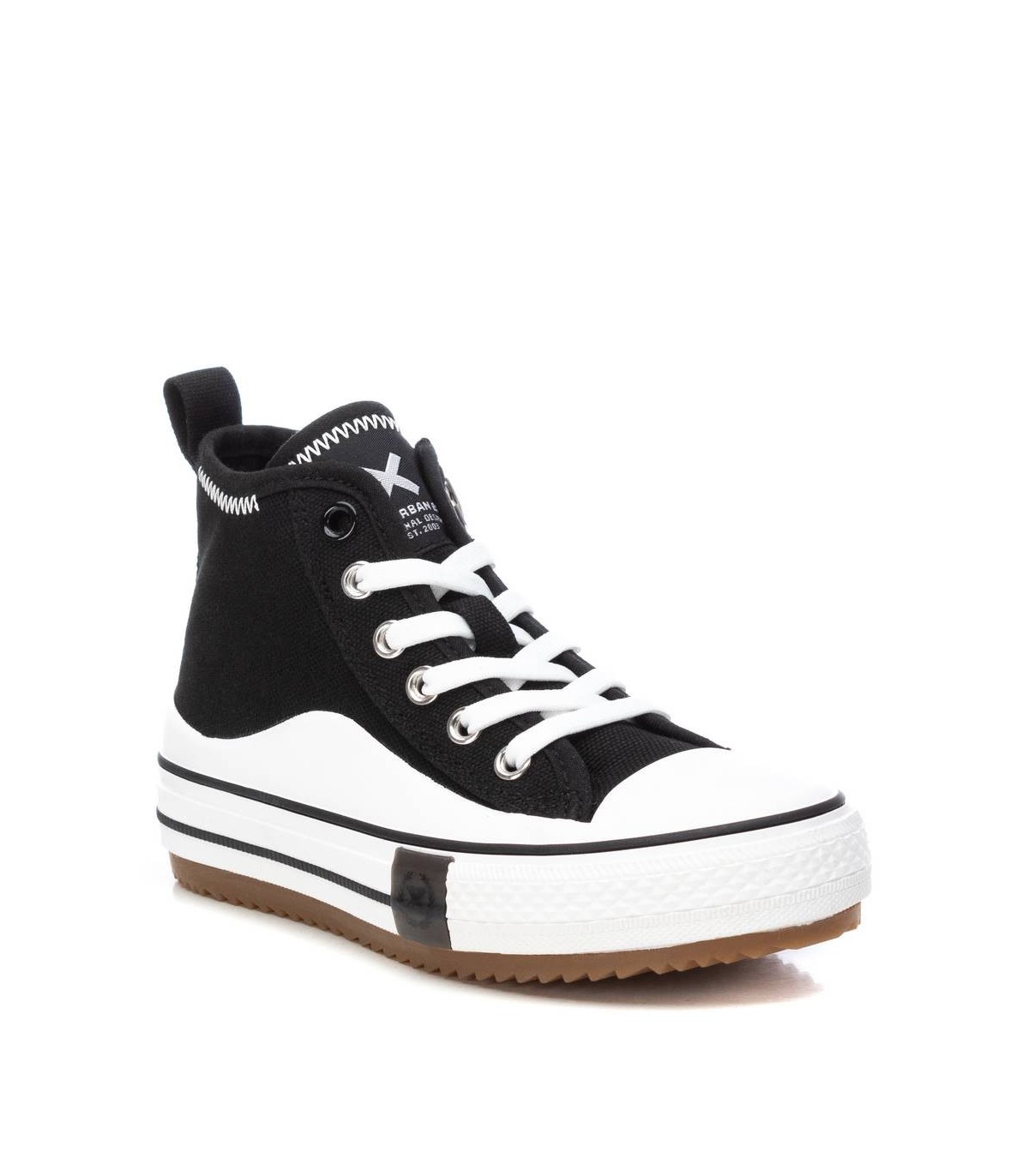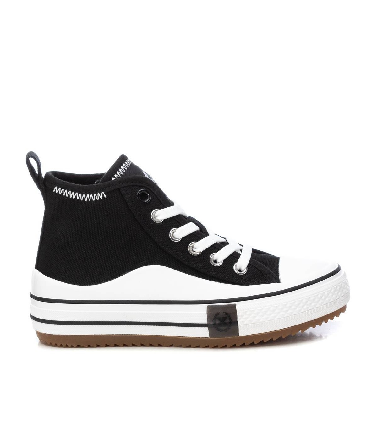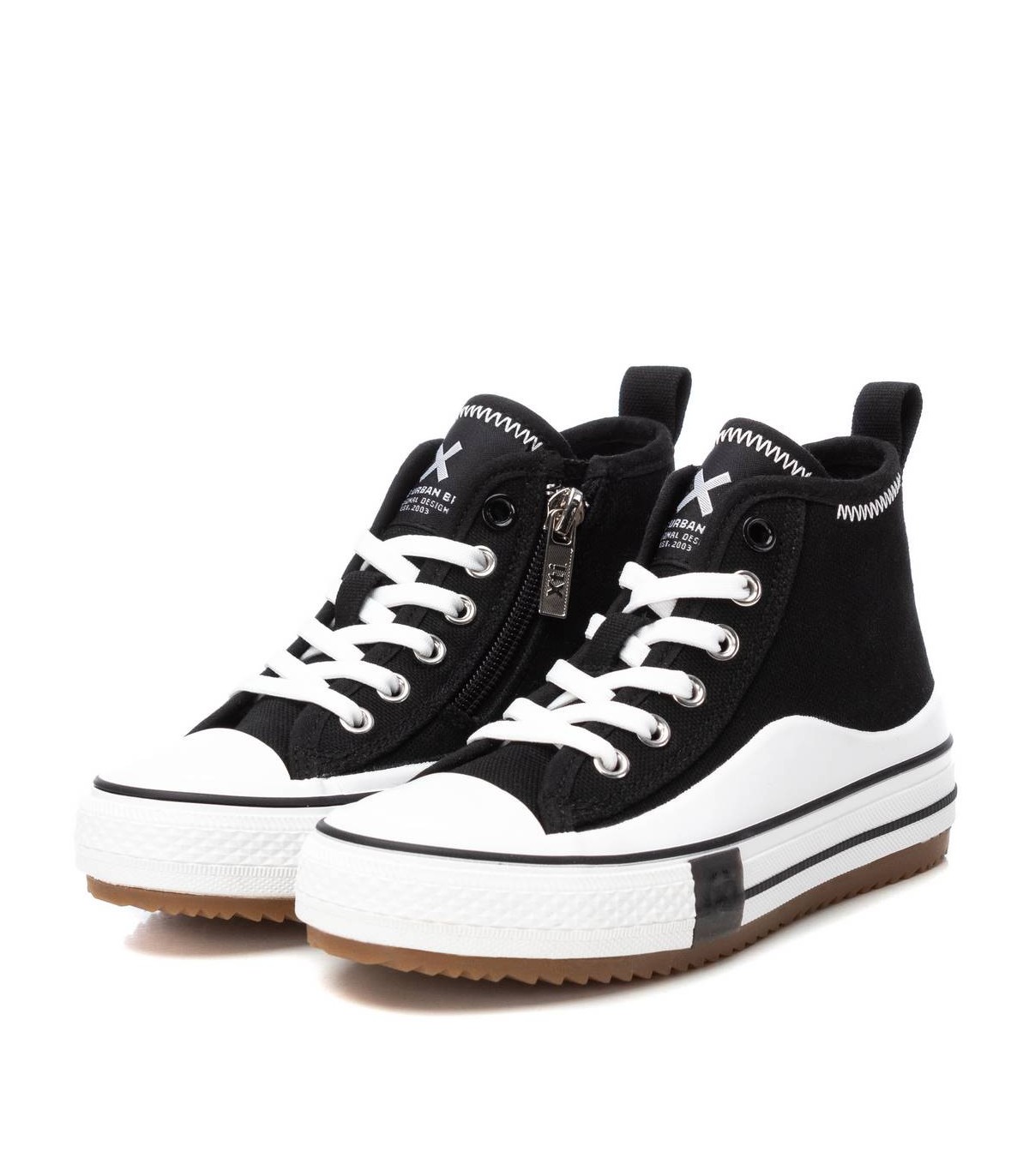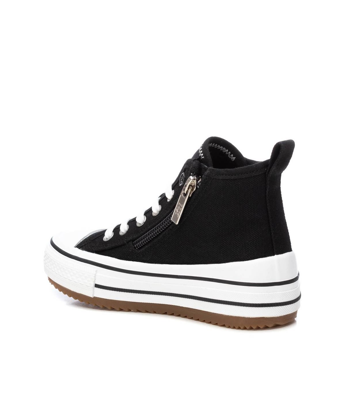 Botín de niña, de la marca Xti kids. Fabricada en resistente lona. Cierre mediante cremallera interior. Tirador trasero para facilitar la puesta. Caña de 7 cm. Suela de goma antideslizante. Este modelo ha obtenido el certificado vegano por la organización mundial PETA (Organización de los derechos de los animales).
