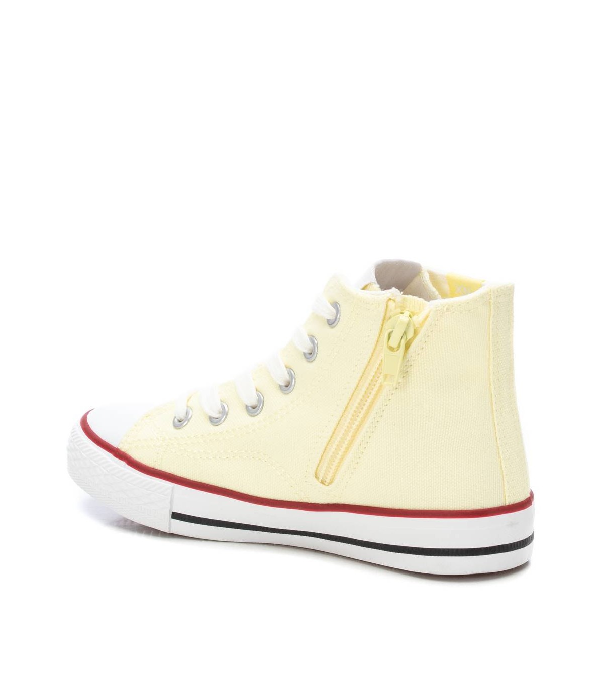 Botín unisex, marca Xti kids. Fabricado en resistente lona. Cierre mediante cremallera para facilitar la puesta. Suela de 3 cm de goma antideslizante. Este modelo ha obtenido el certificado vegano por la organización mundial PETA (Organización de los derechos de los animales).