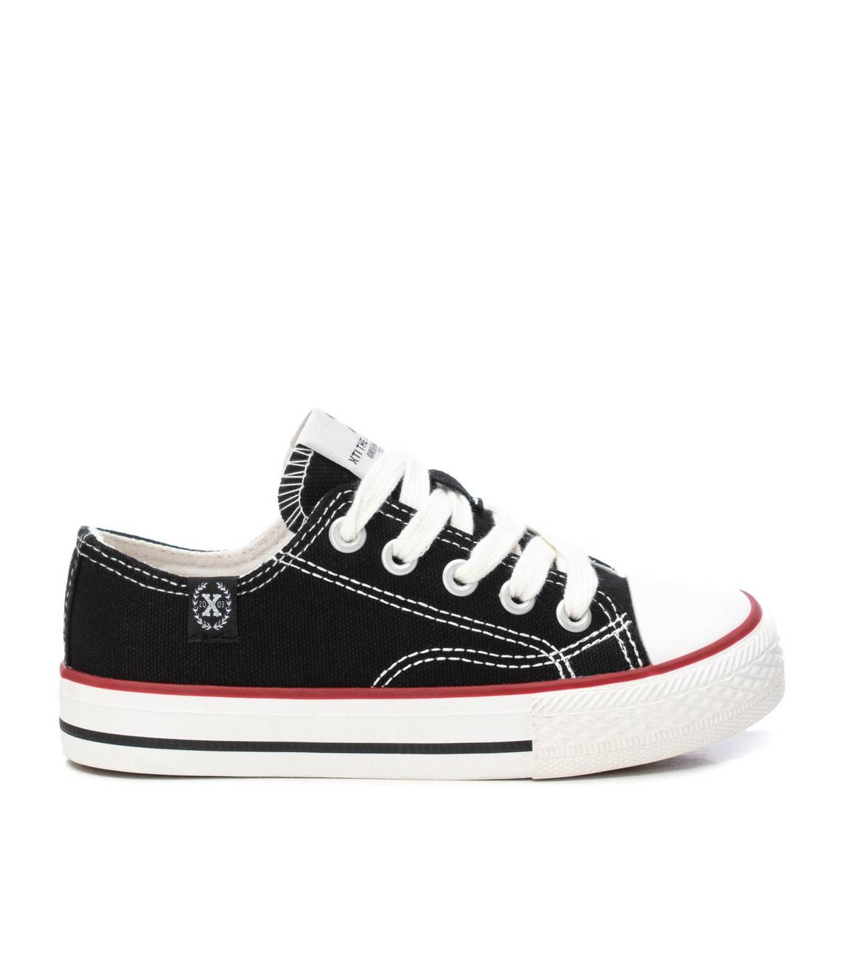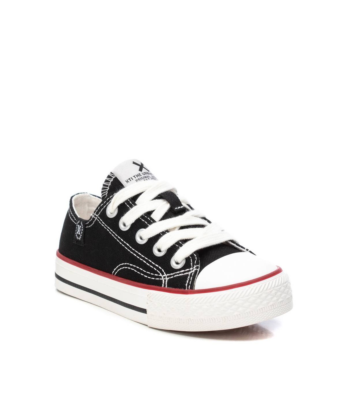 Zapatilla unisex, de la marca Xti kids. Fabricada en resistente lona. Cierre mediante cordones. Gruesa suela de goma antideslizante. Este modelo ha obtenido el certificado vegano por la organización mundial PETA (Organización de los derechos de los animales).