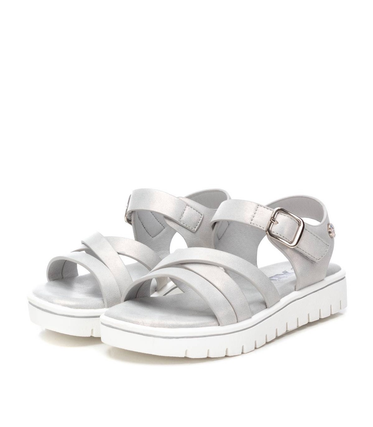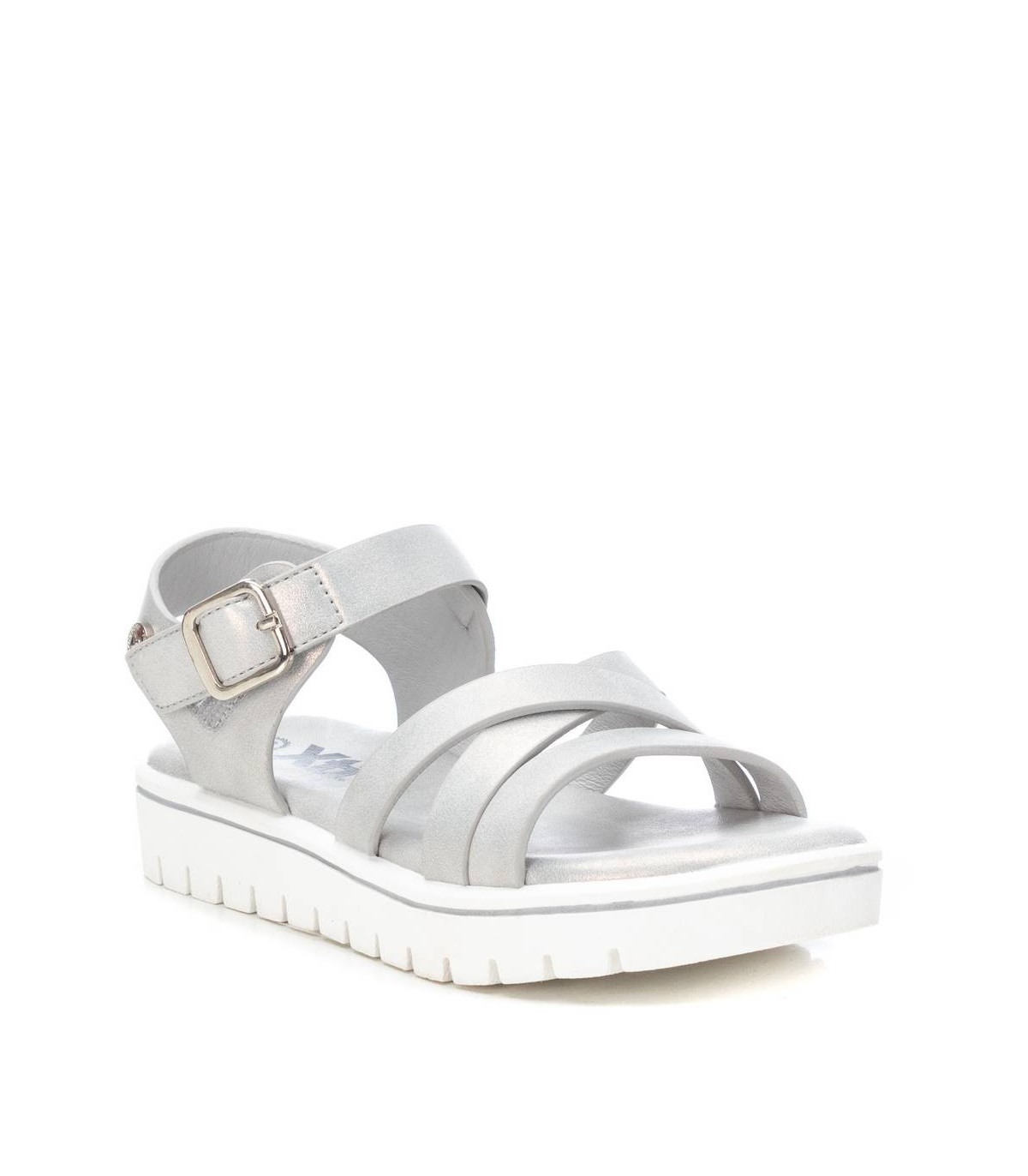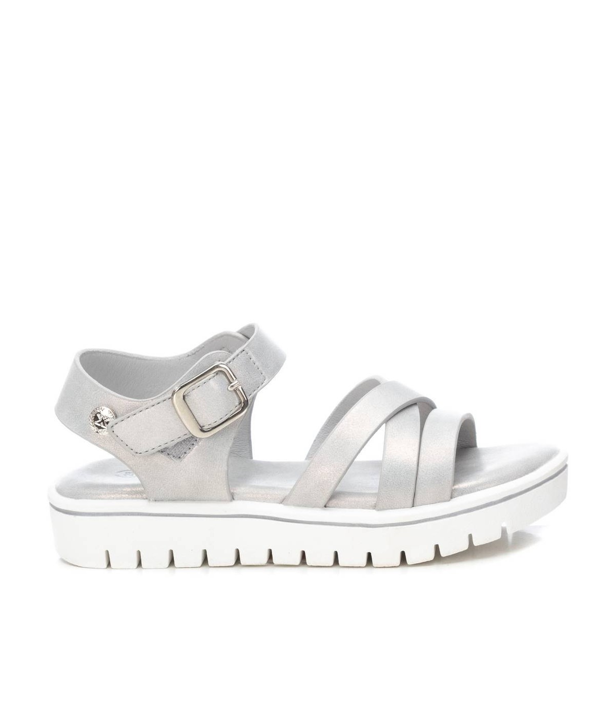 Sandalia de niña, de la marca Xti Kids. Fabricada en material que imita la piel. Cierre mediante tira con hebilla metalizada. Cómoda planta y suela de goma antideslizante. Este modelo ha obtenido el certificado vegano por la organización mundial PETA (Organización de los derechos de los animales).