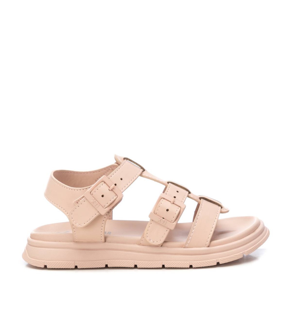 Sandalias de niña. Marca Xti Kids. Fabricada en material que imita la piel. Tiras que ajustan el tobillo mediante hebilla. Gruesa suela de goma antideslizante para las mejores aventuras de esta nueva temporada. Este modelo a obtenido el certificado vegano por la organización mundial PETA (Organización de los derechos de los animales).