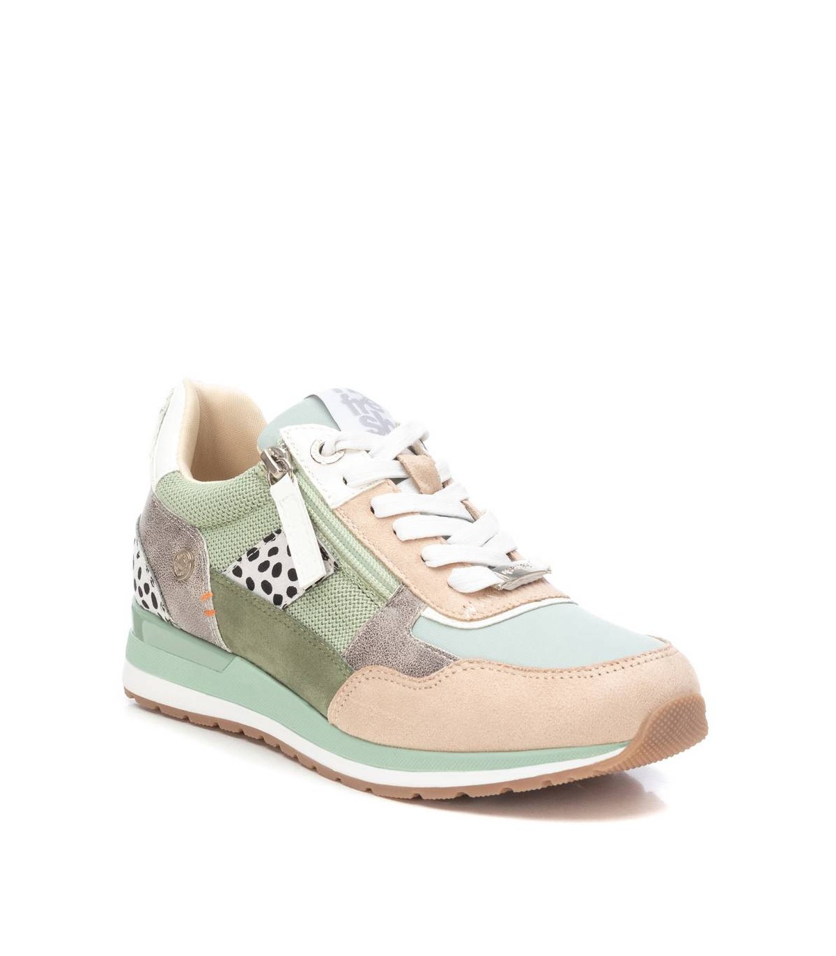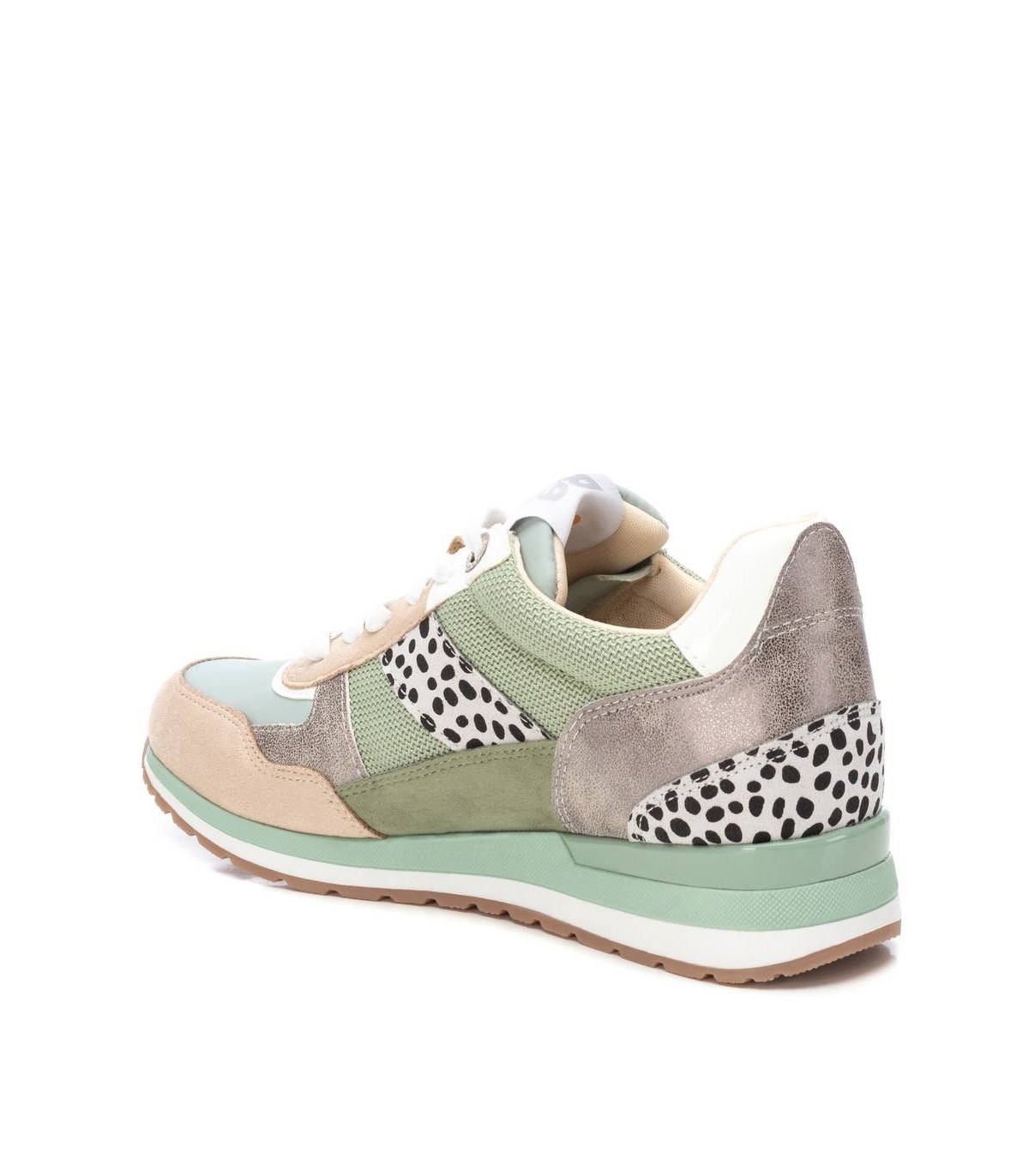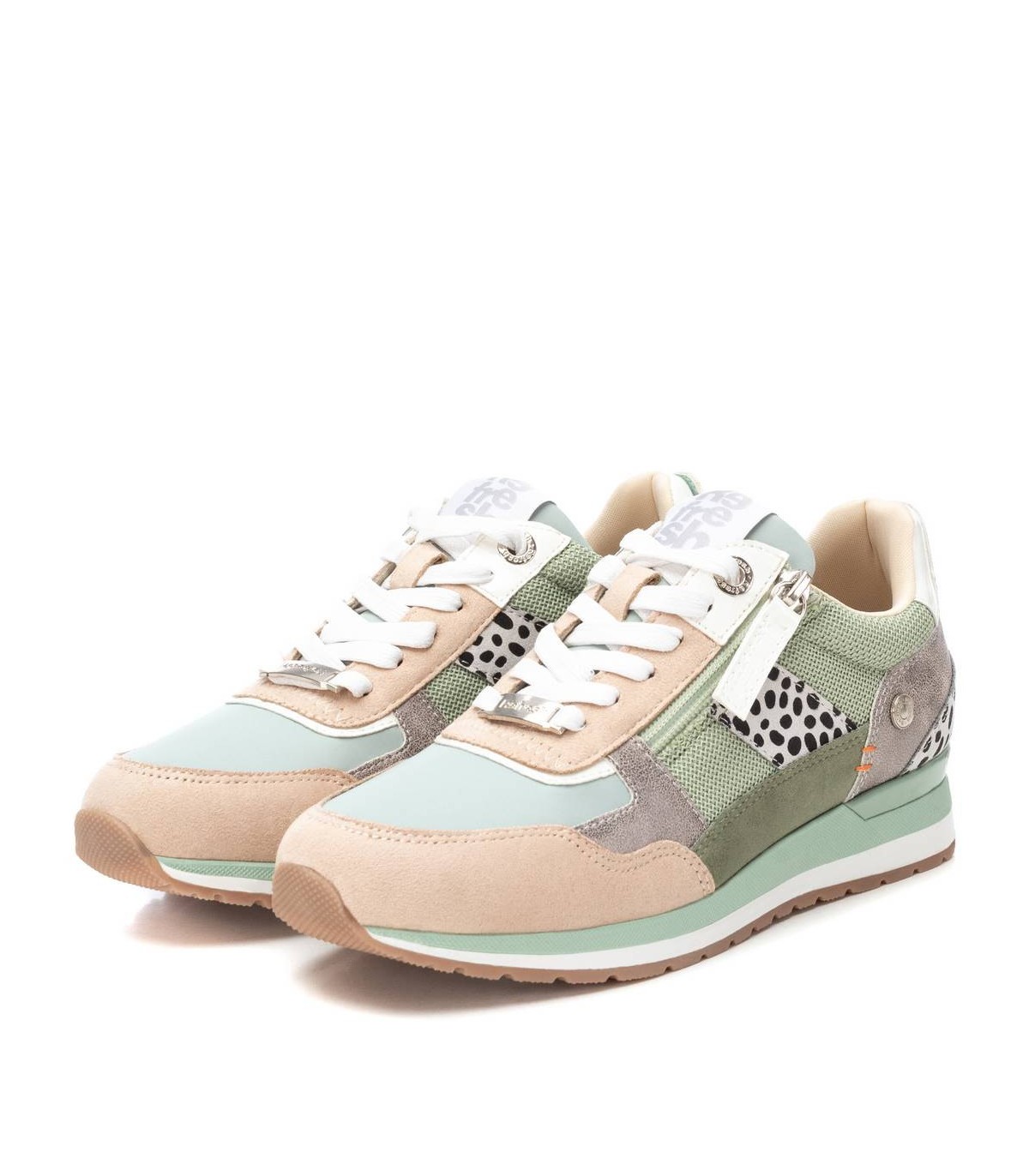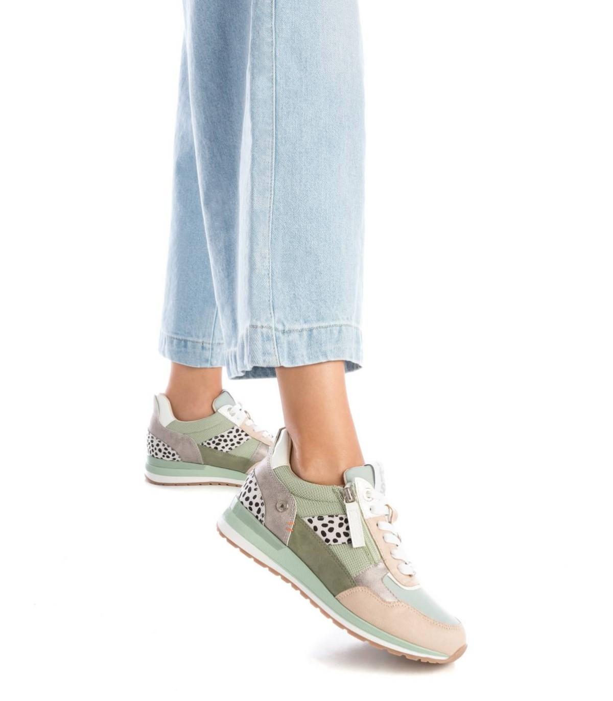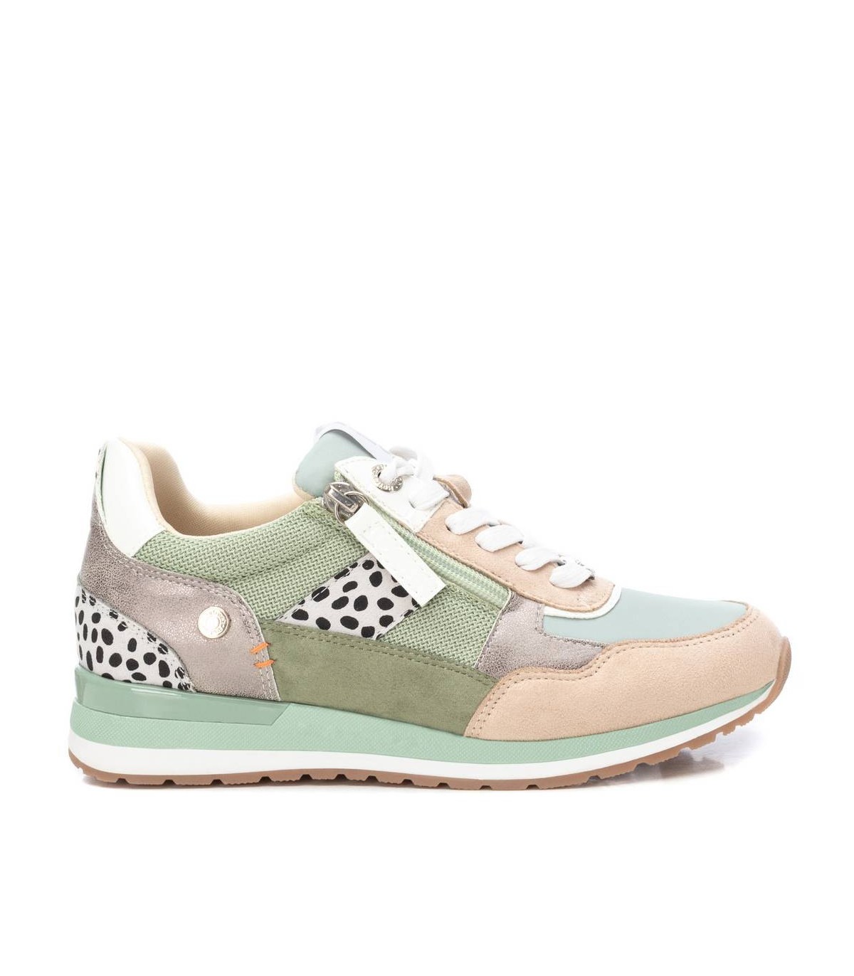 Zapatilla de mujer, de la marca Refresh. Fabricada en material que imita la piel combinado con tejido. Cierre mediante cremallera lateral y cordones ajustables. Diseño animal print en tendencia esta temporada. Cómoda suela de goma antideslizante. Este modelo ha obtenido el certificado vegano por la organización mundial PETA (Organización de los derechos de los animales).