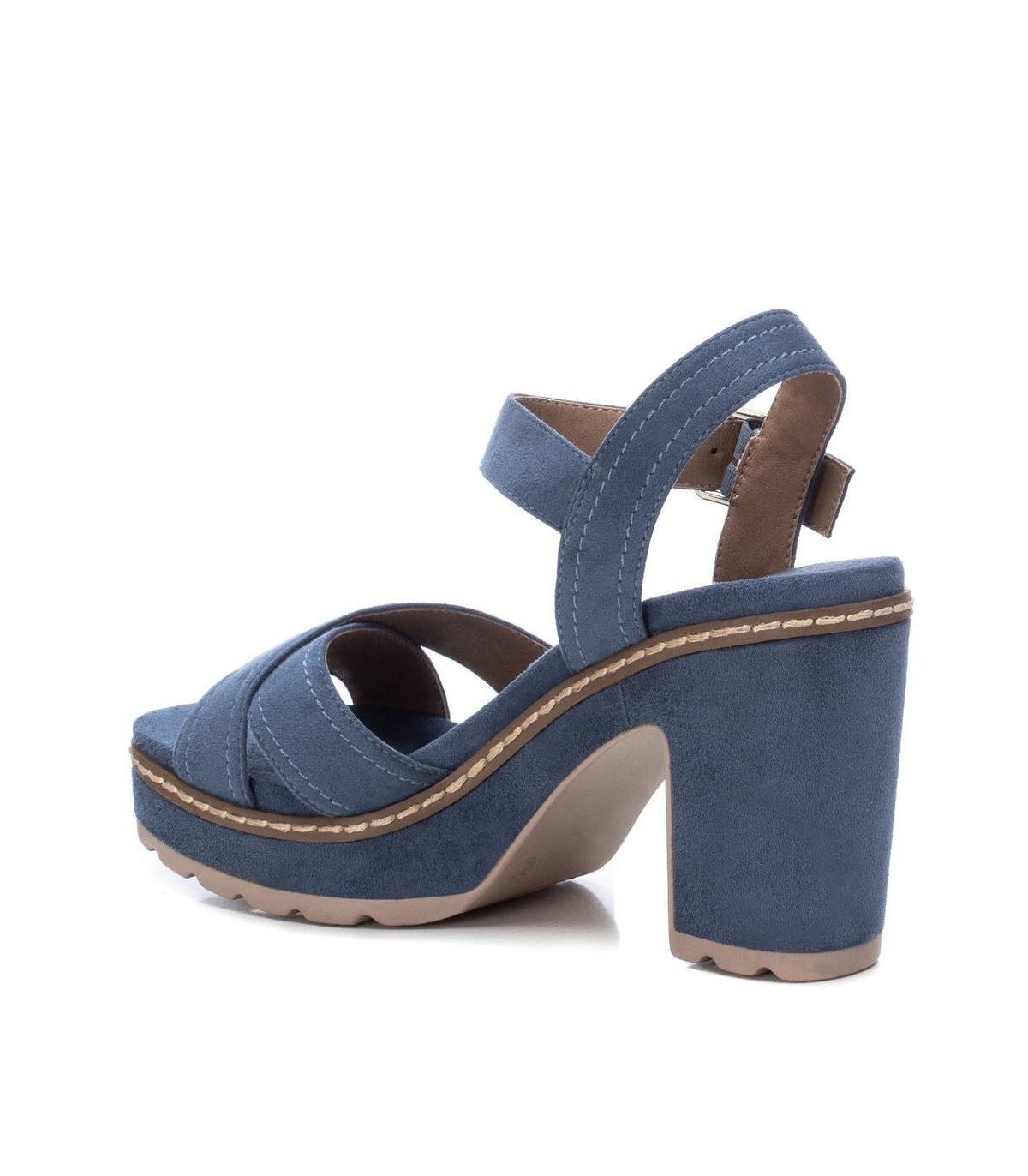 Sandalia de mujer, de la marca Refresh. Fabricada en suave antelina. Modelo de pala cruzada y pulsera al tobillo con hebilla ajustable. Cómoda planta acolchada. Tacón ancho de 8 cm y plataforma delantera forrado en el mismo material. Suela antideslizante. Este modelo ha obtenido el certificado vegano por la organización mundial PETA (Organización de los derechos de los animales).
