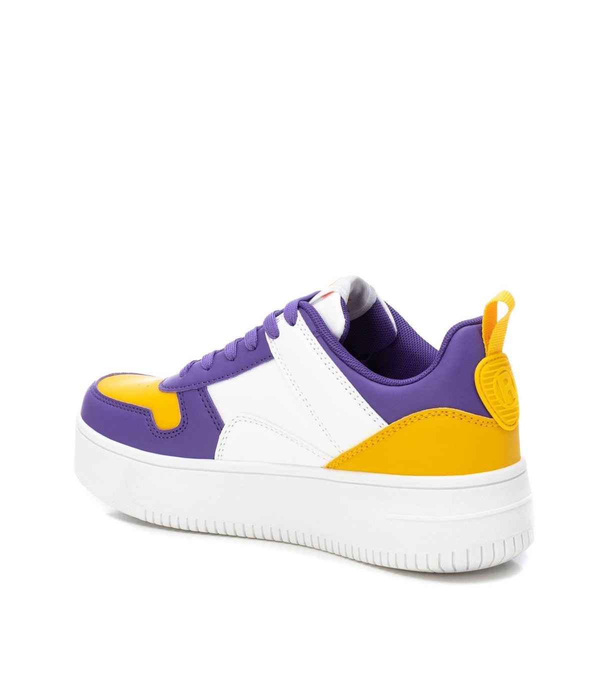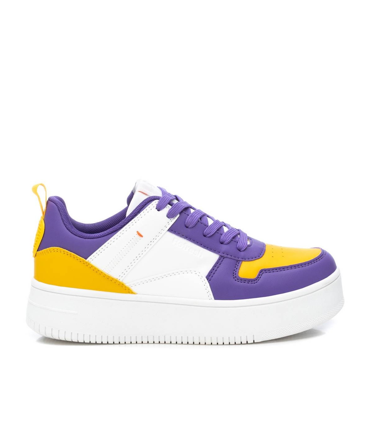 Zapatilla de mujer, de la marca Refresh. Fabricado en material que imita la piel. Cierre mediante cordones ajustables. Tirador trasero para facilitar la puesta. Modelo multicolor estilo basket en tendencia esta temporada. Cómoda suela volumen de goma antideslizante. Este modelo ha obtenido el certificado vegano por la organización mundial PETA (Organización de los derechos de los animales).