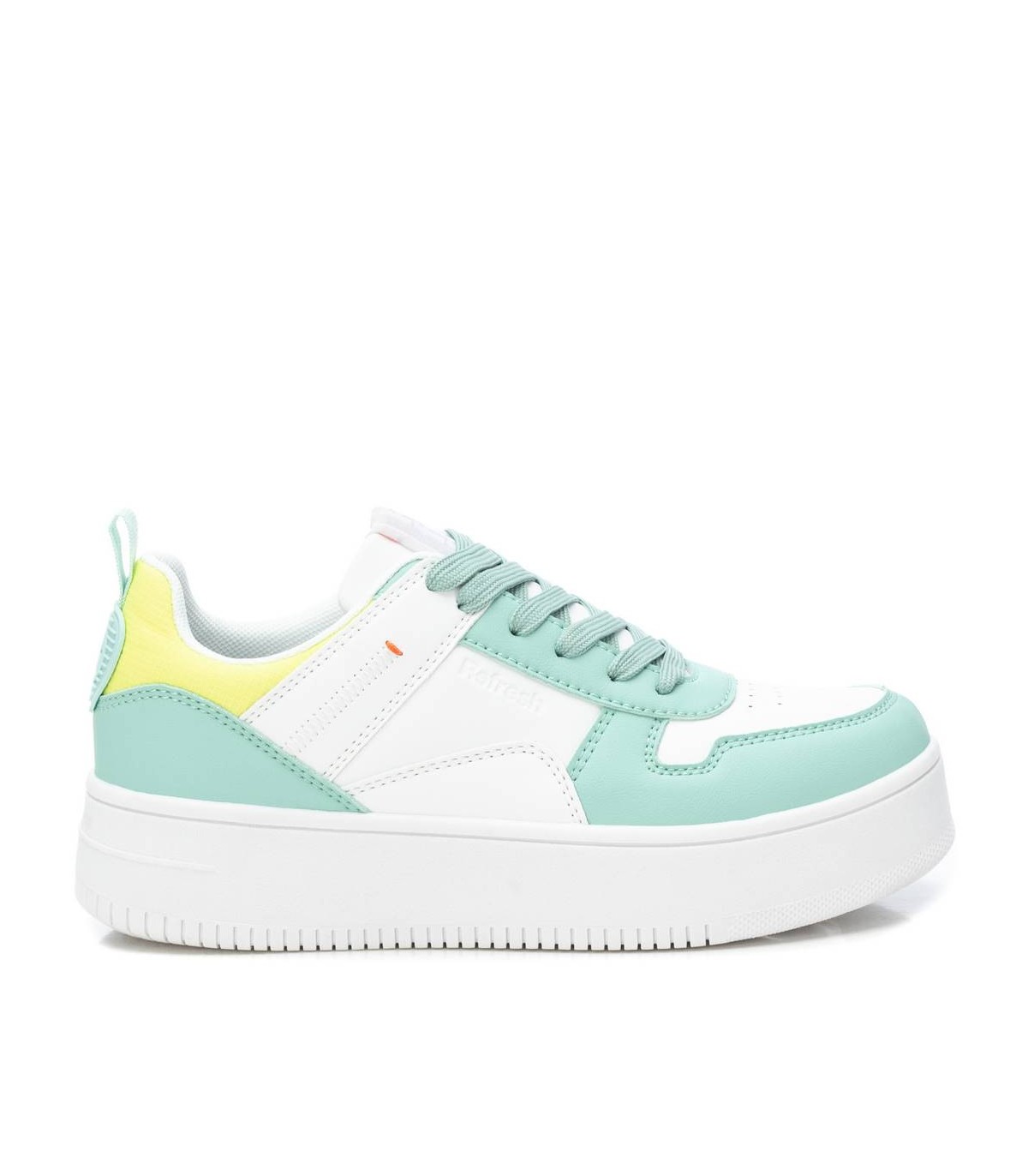 Zapatilla de mujer, de la marca Refresh. Fabricado en material que imita la piel. Cierre mediante cordones ajustables. Tirador trasero para facilitar la puesta. Modelo multicolor estilo basket en tendencia esta temporada. Cómoda suela volumen de goma antideslizante. Este modelo ha obtenido el certificado vegano por la organización mundial PETA (Organización de los derechos de los animales).