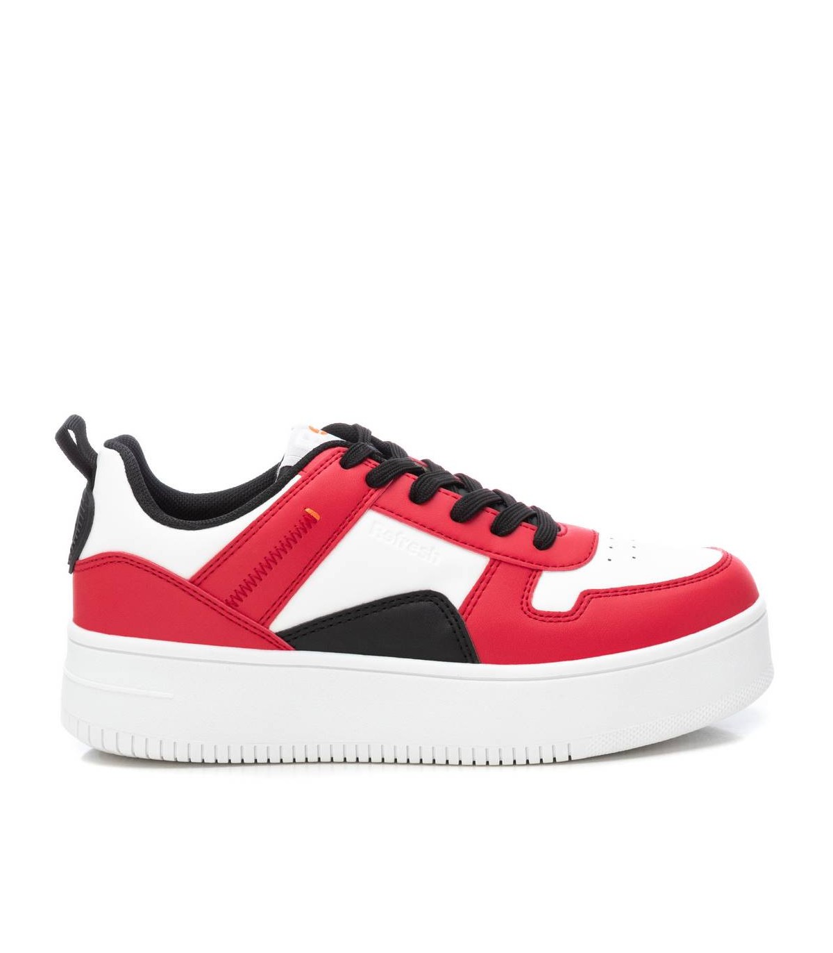 Zapatilla de mujer, de la marca Refresh. Fabricado en material que imita la piel. Cierre mediante cordones ajustables. Tirador trasero para facilitar la puesta. Modelo multicolor estilo basket en tendencia esta temporada. Cómoda suela volumen de goma antideslizante. Este modelo ha obtenido el certificado vegano por la organización mundial PETA (Organización de los derechos de los animales).